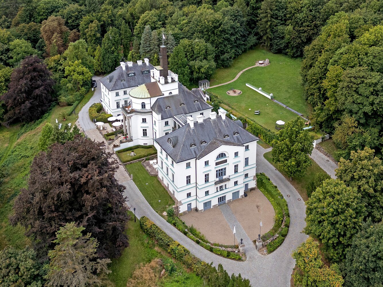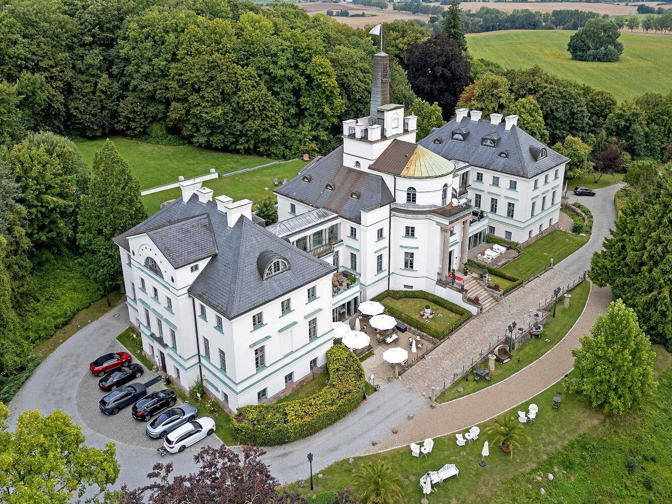 Drohnenaufnahmen des Schlosshotels Burg Schlitz und des Marstalls