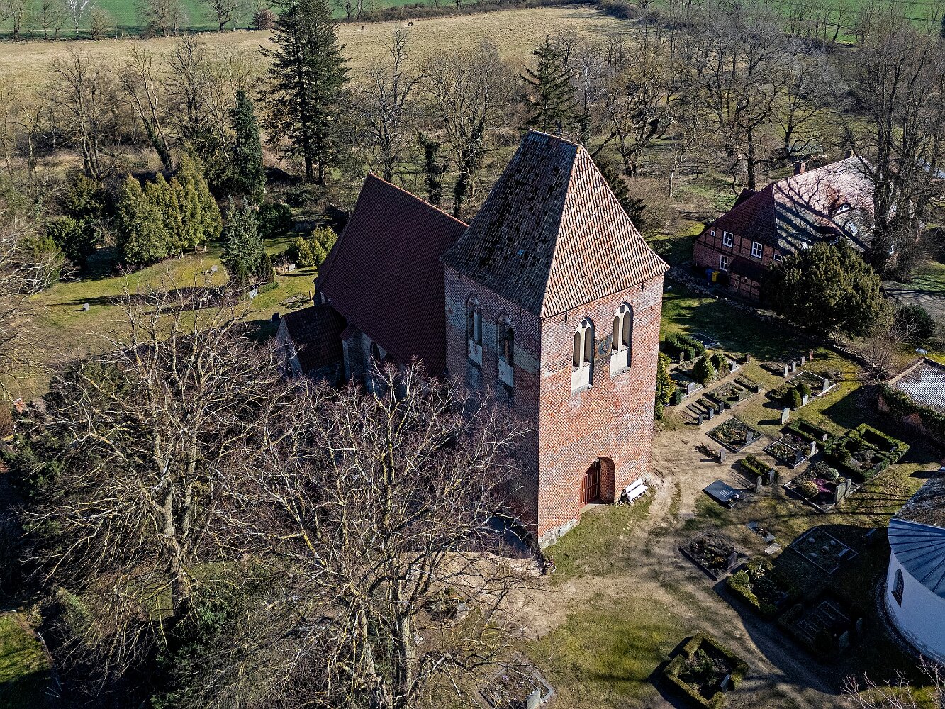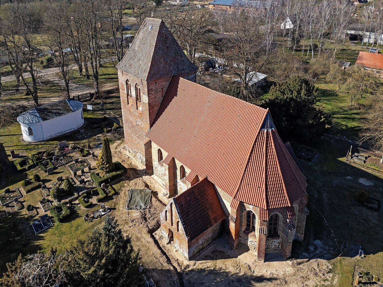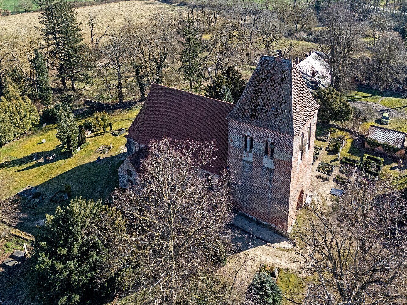 Drohnenaufnahmen der Feldsteinkirche in Alt Karin