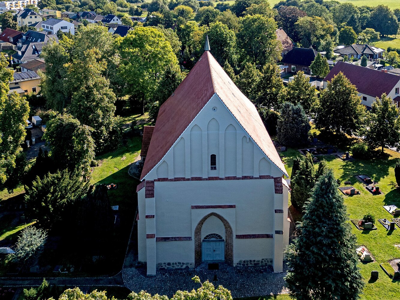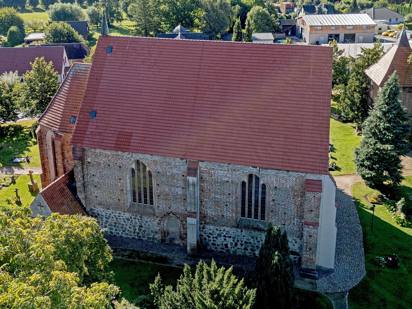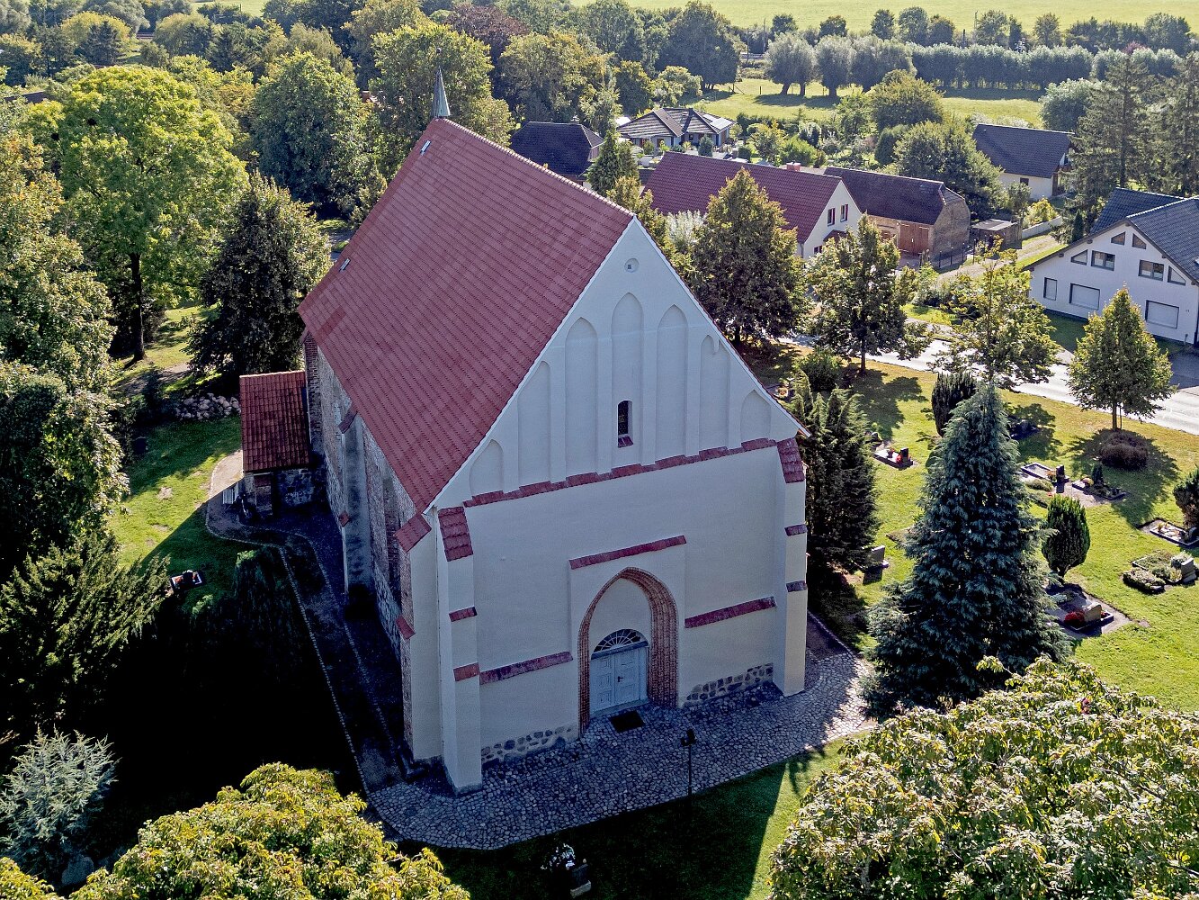 Drohnenaufnahmen der Feldsteinkirche in Bentwisch