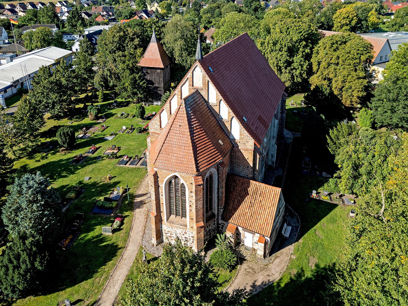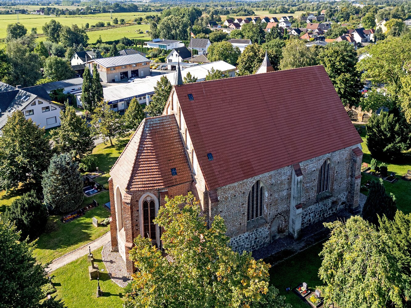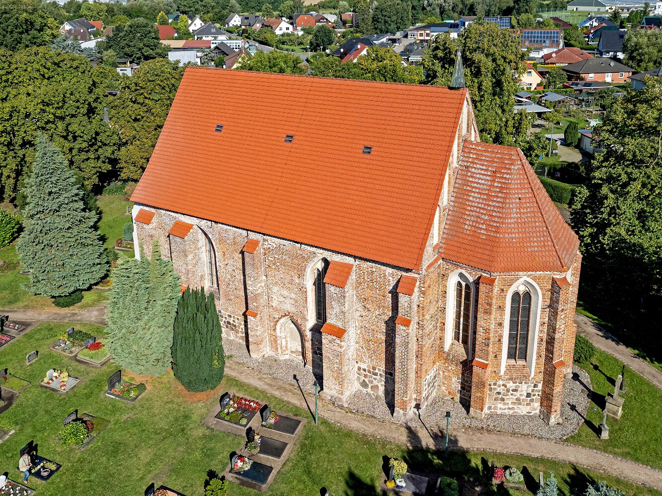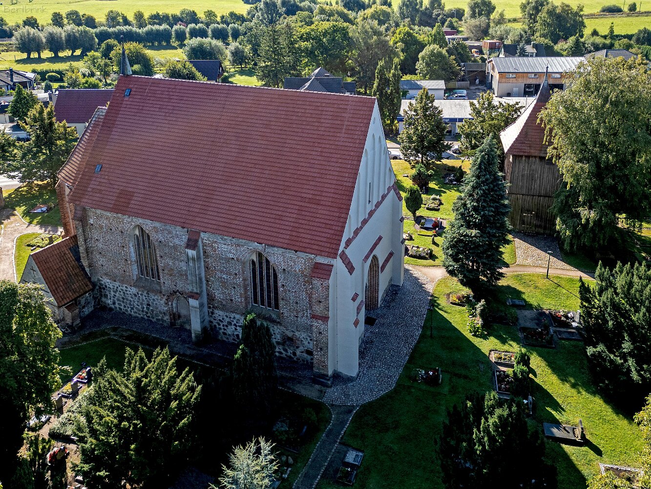Drohnenaufnahmen der Feldsteinkirche in Bentwisch