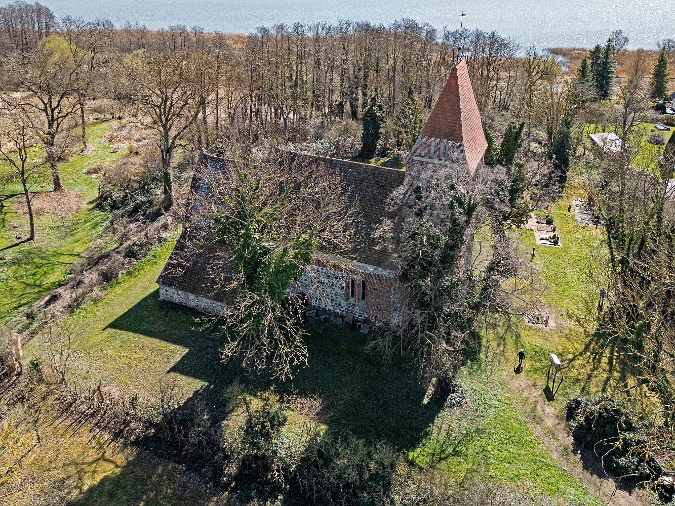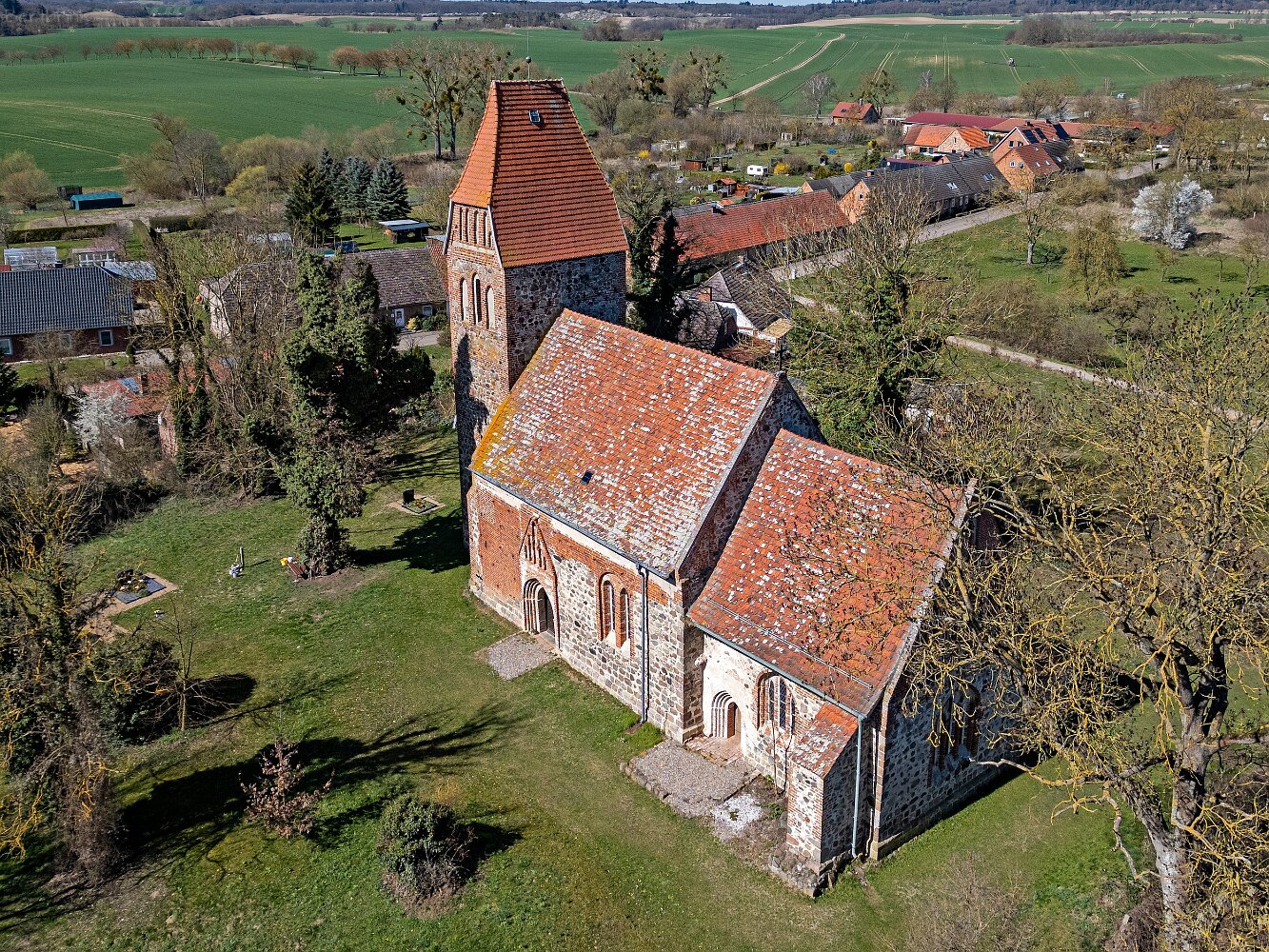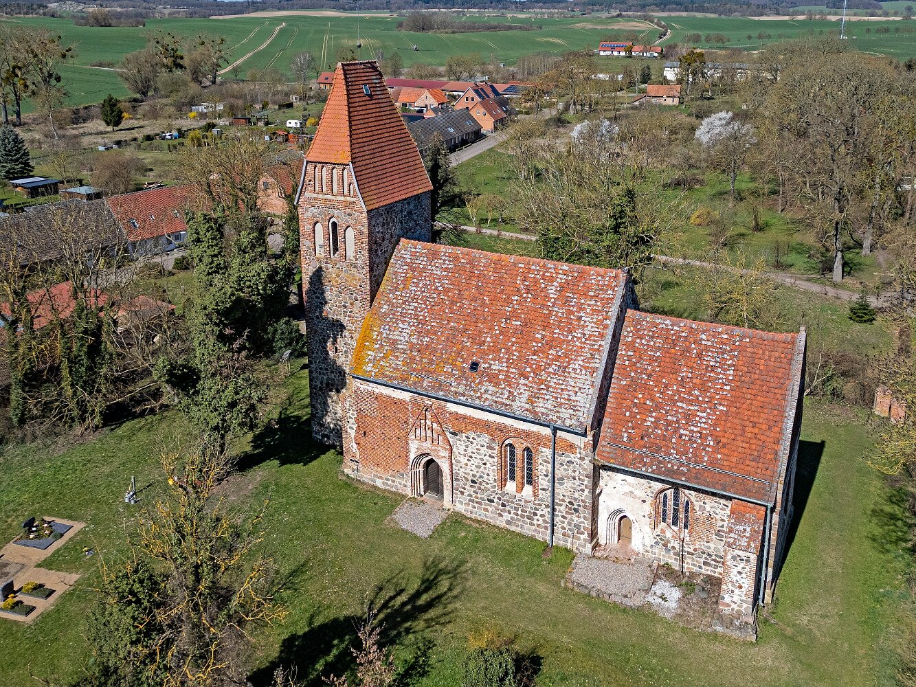 Drohenaufnahmen der Feldsteinkirche in Bülow