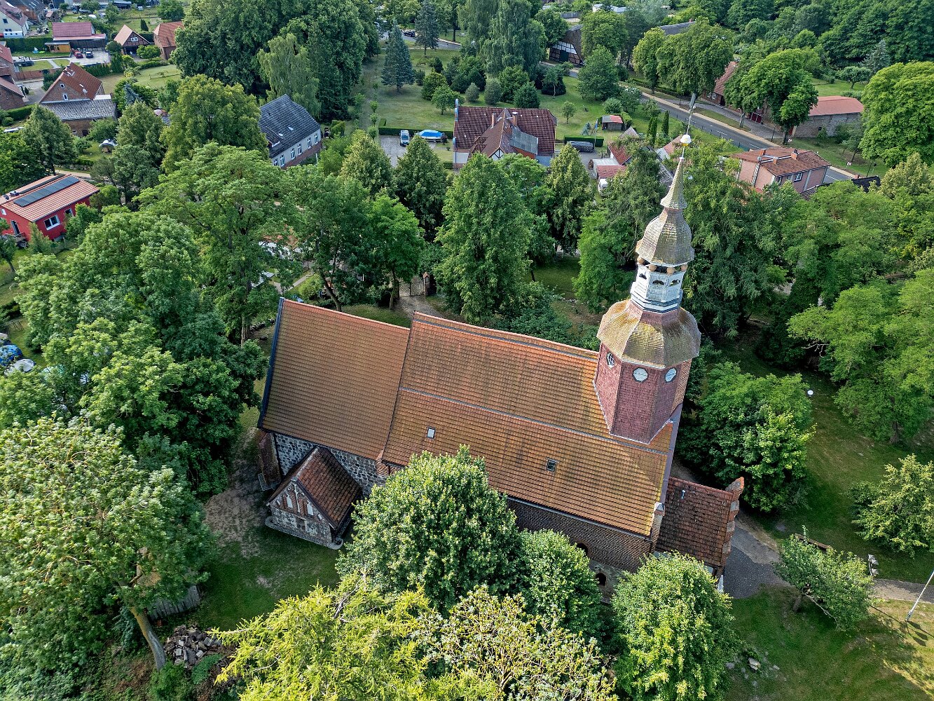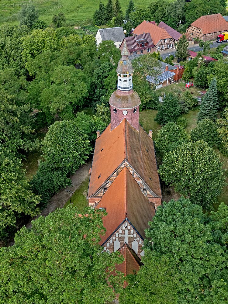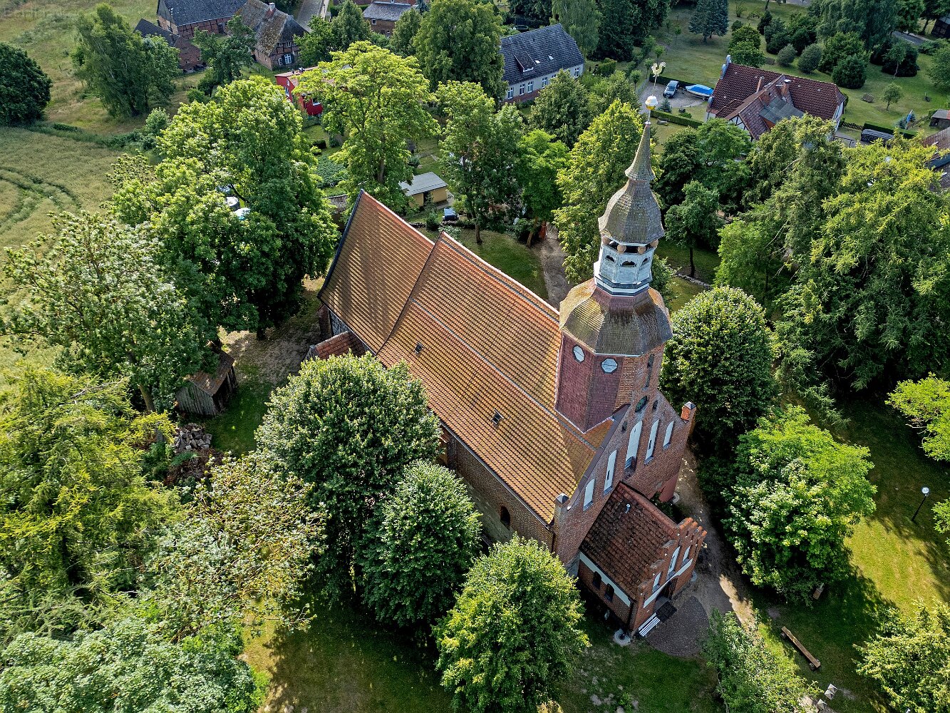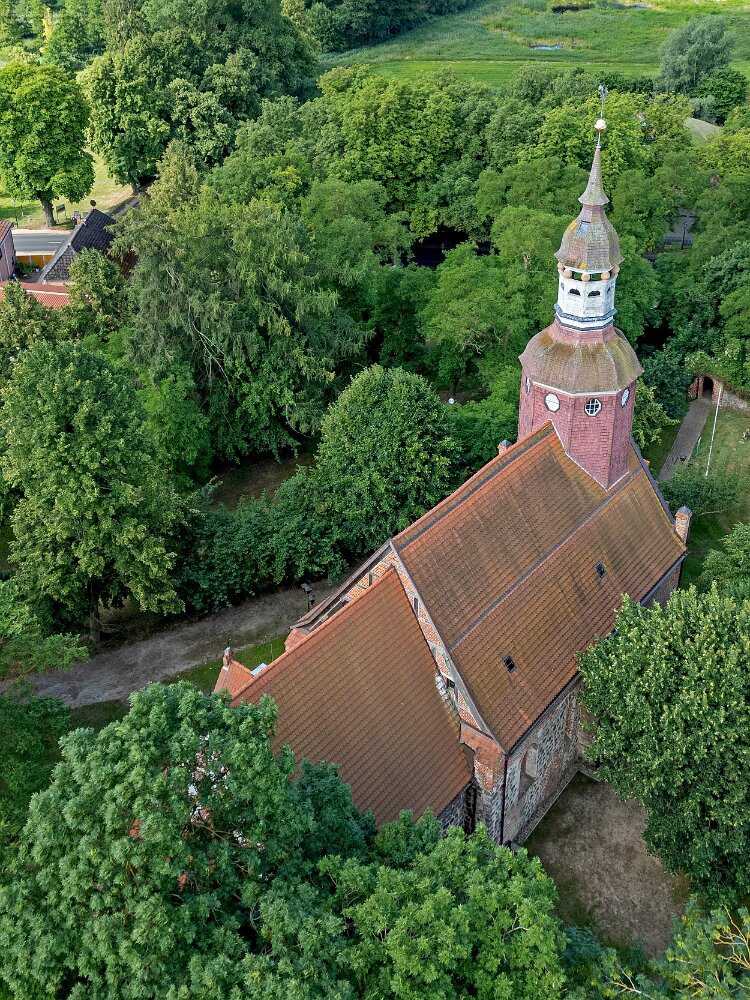 Die Feldsteinkirche Dargun auf Drohnenfotos.