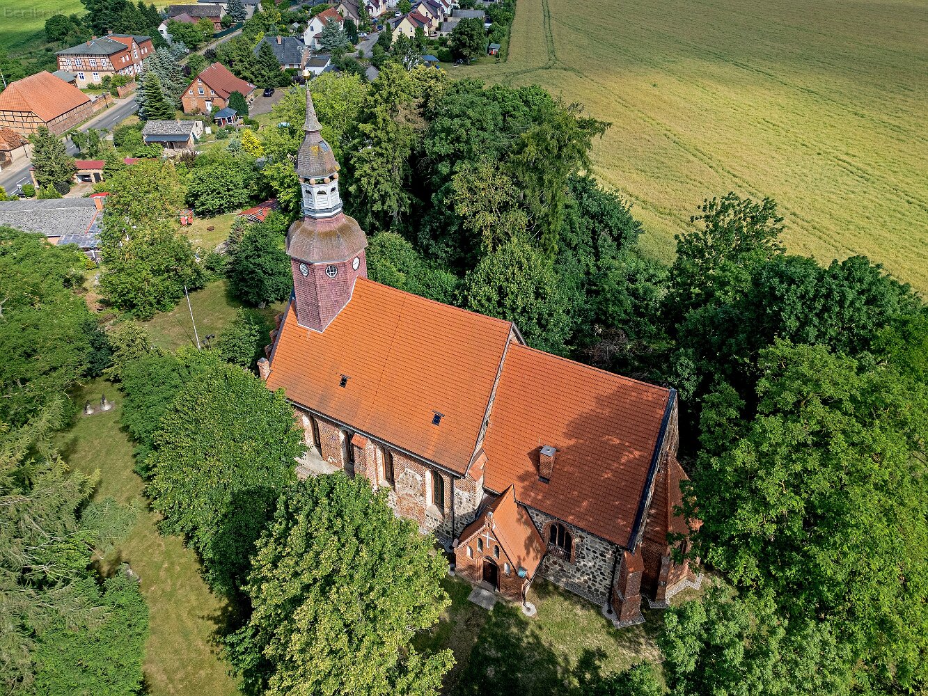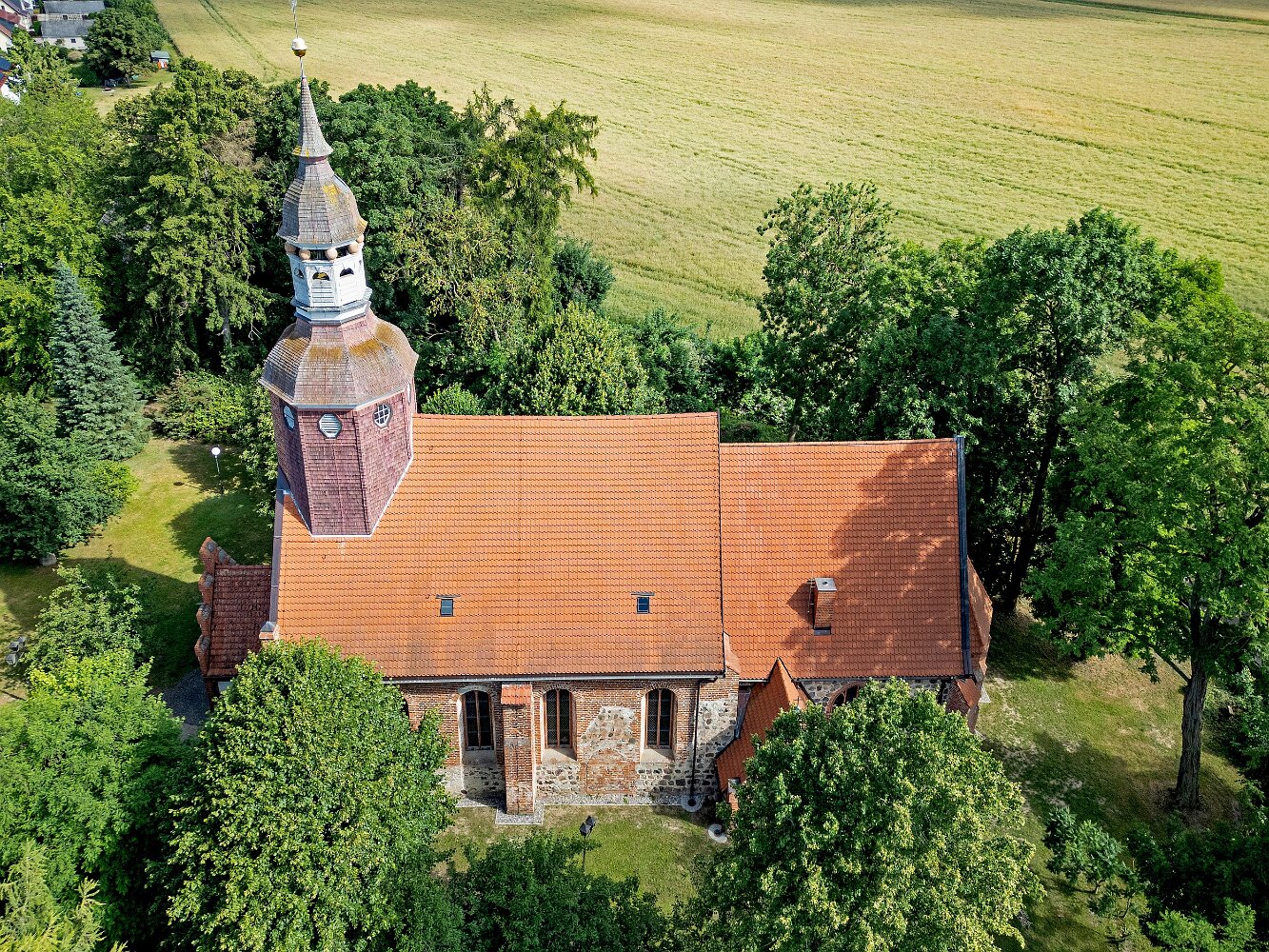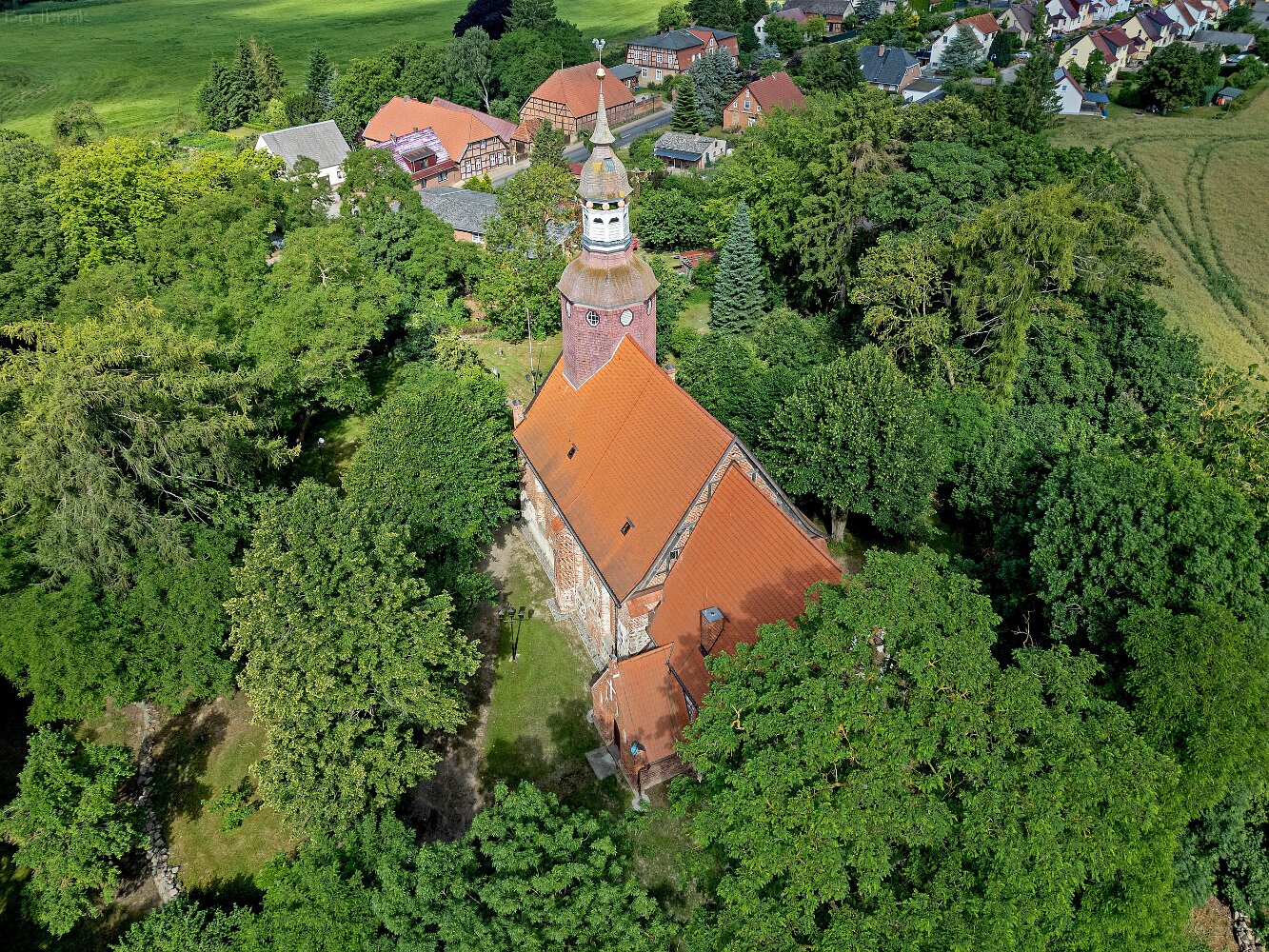 Die Feldsteinkirche Dargun auf Drohnenfotos.