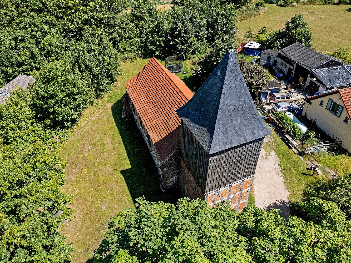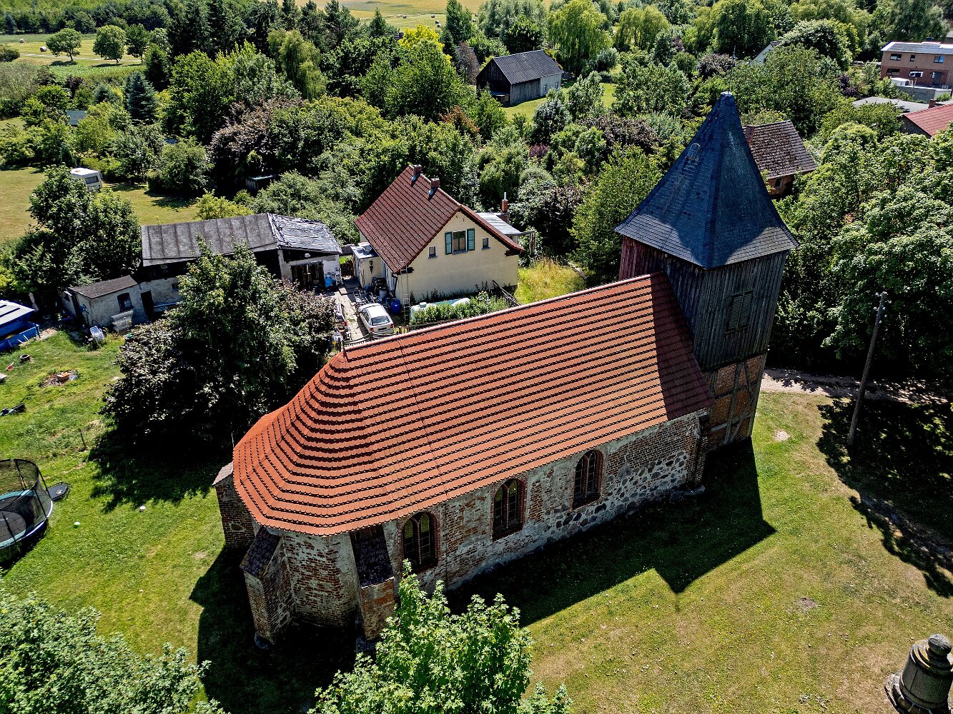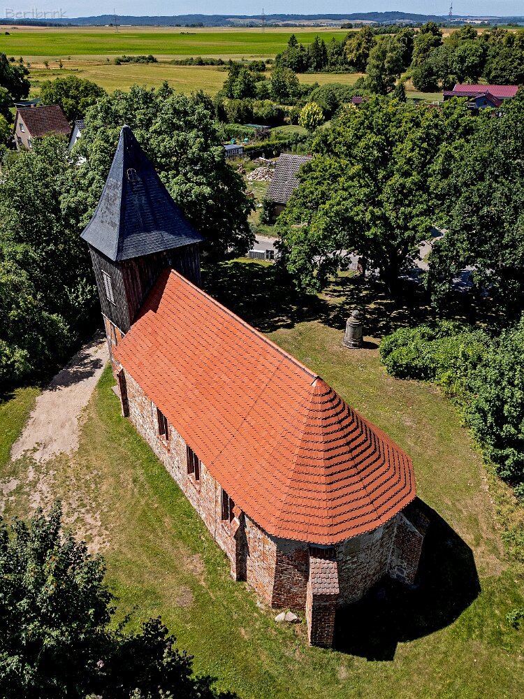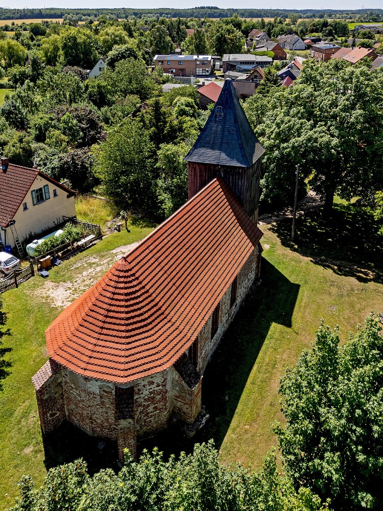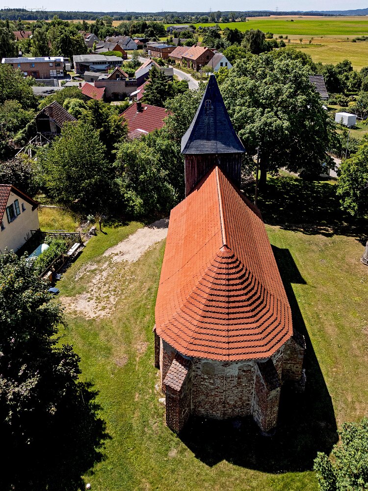 Die Feldsteinkirche Grammentin auf Drohnenfotos.
