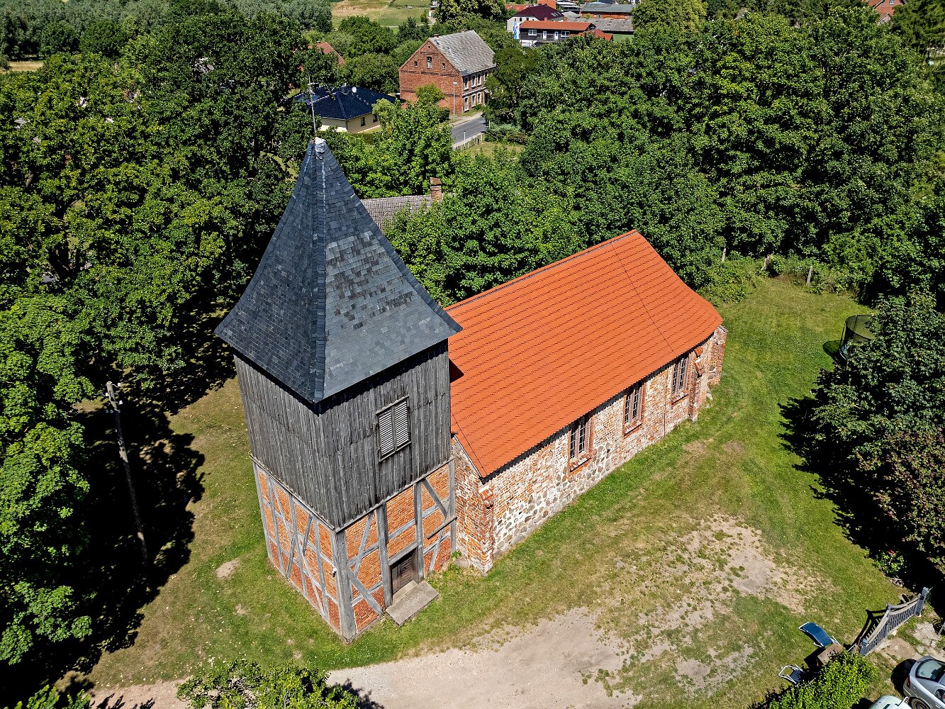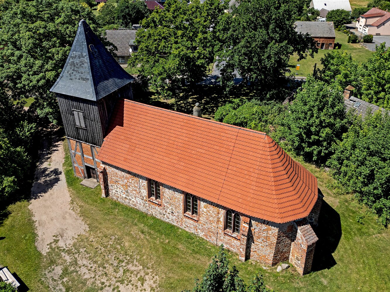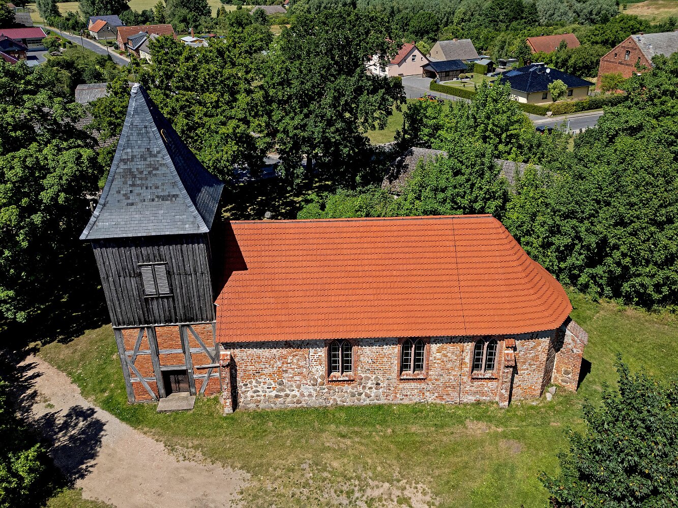 Die Feldsteinkirche Grammentin auf Drohnenfotos.