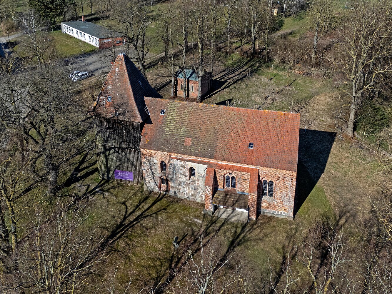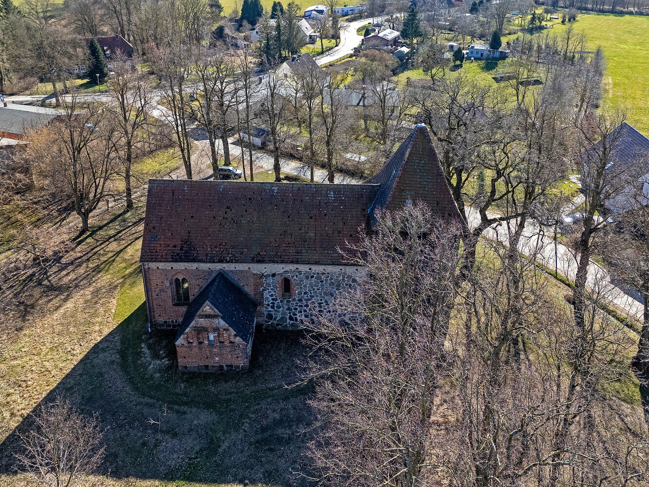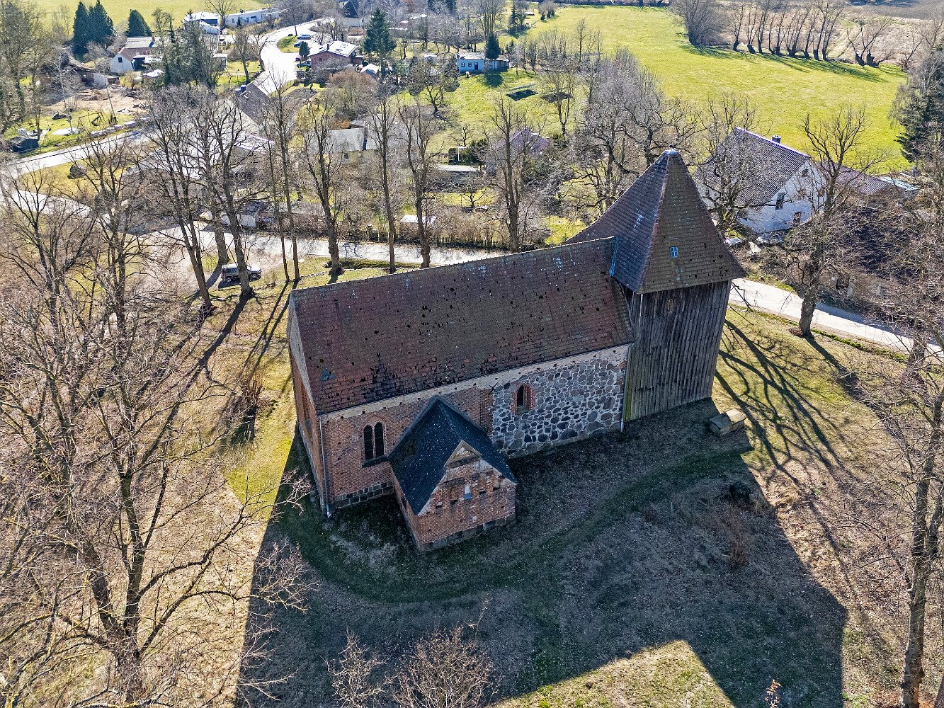 Drohnenaufnahmen der Feldsteinkirche in Kirch Mulsow
