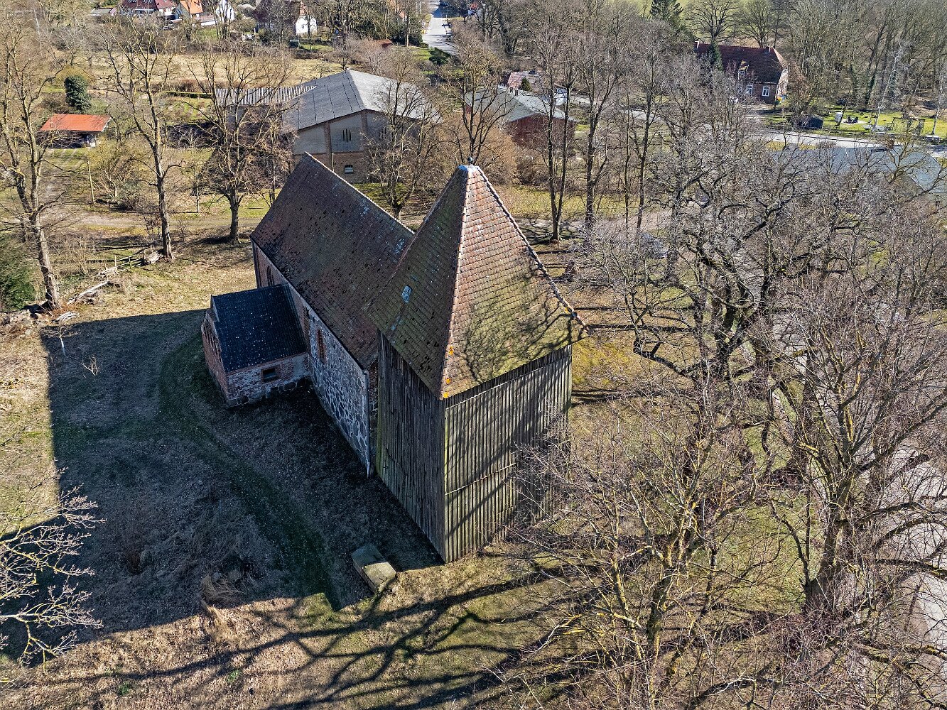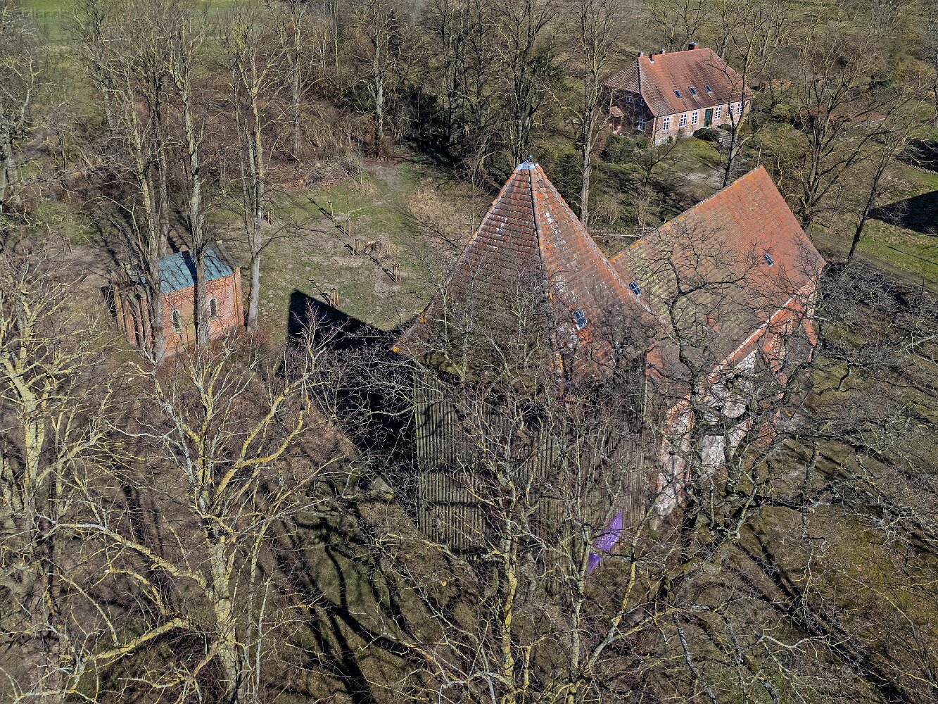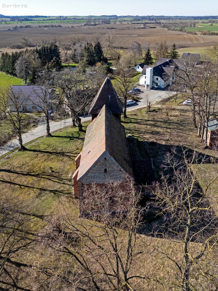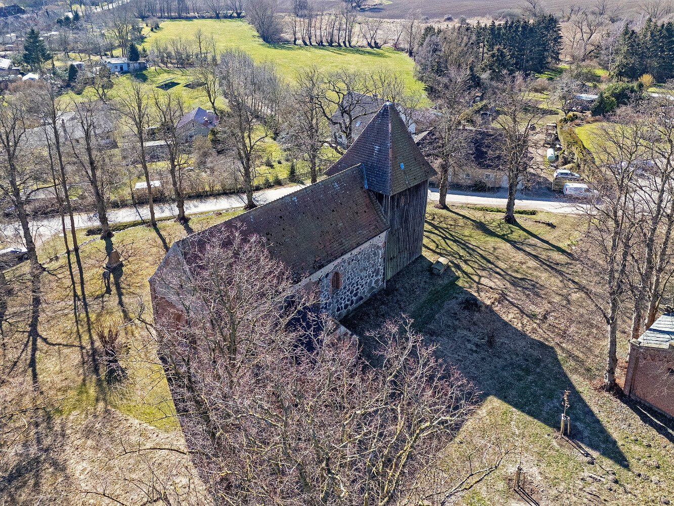 Drohnenaufnahmen der Feldsteinkirche in Kirch Mulsow