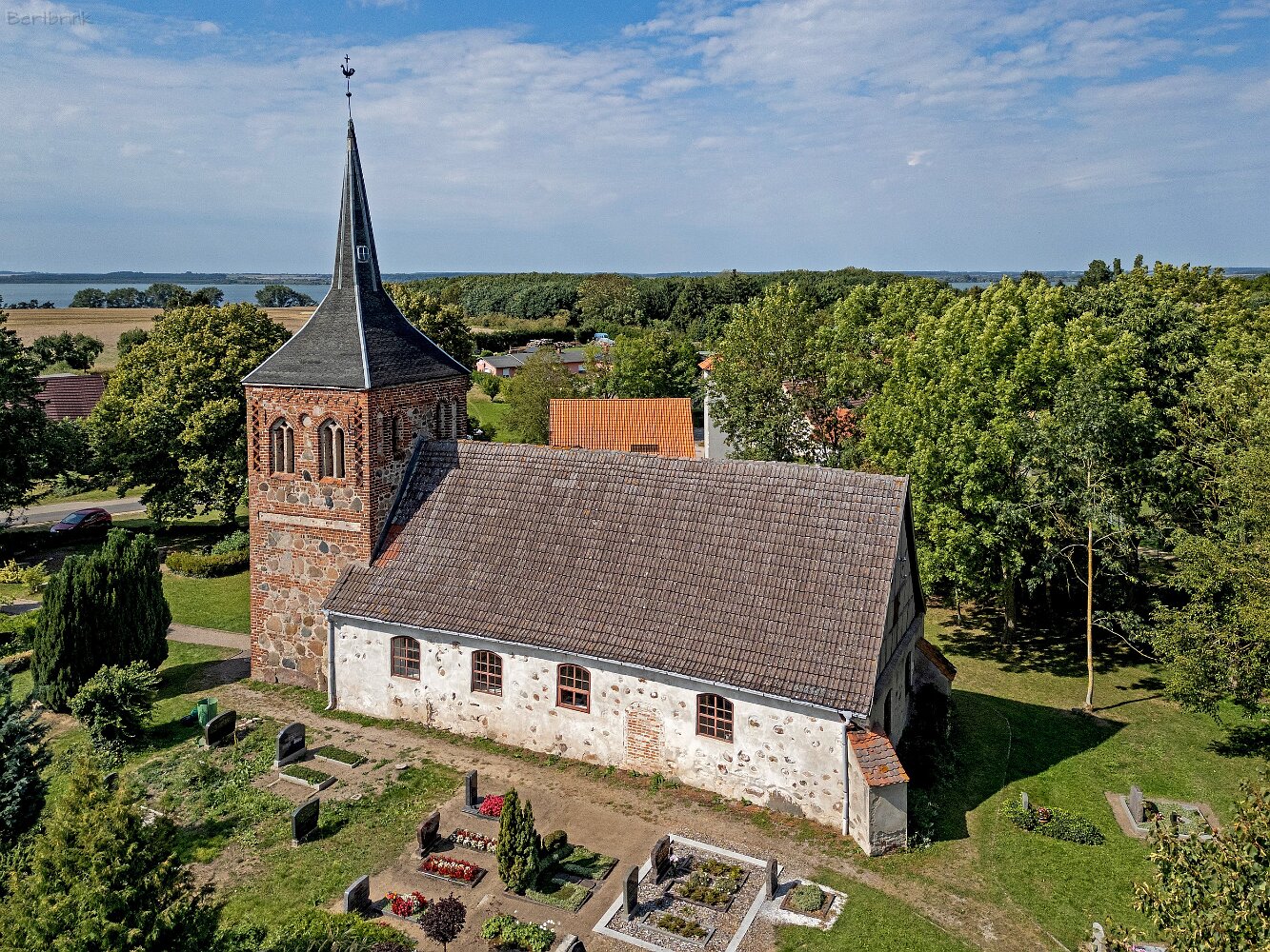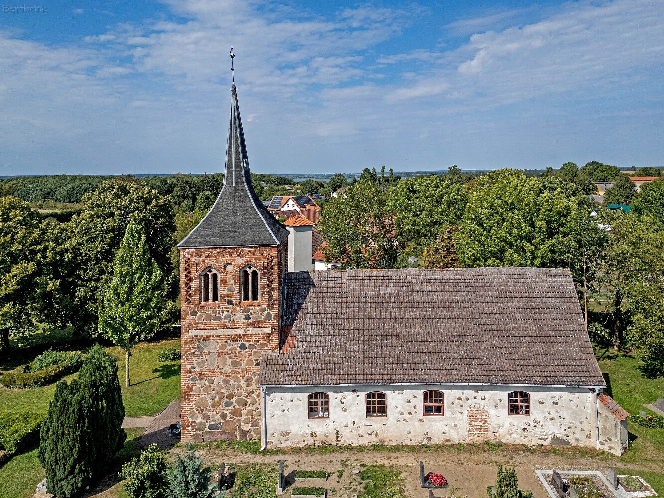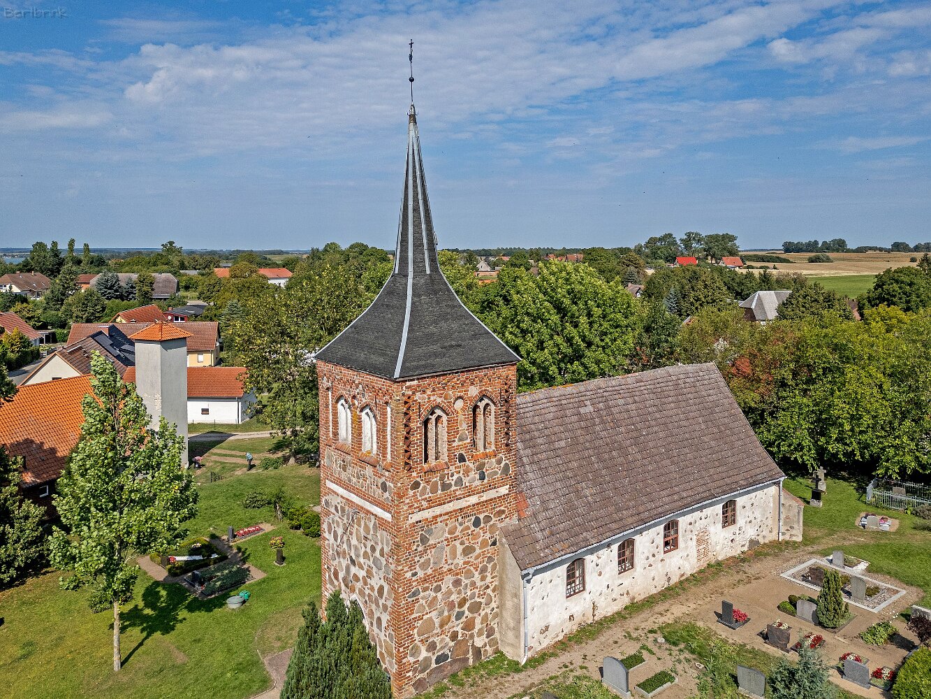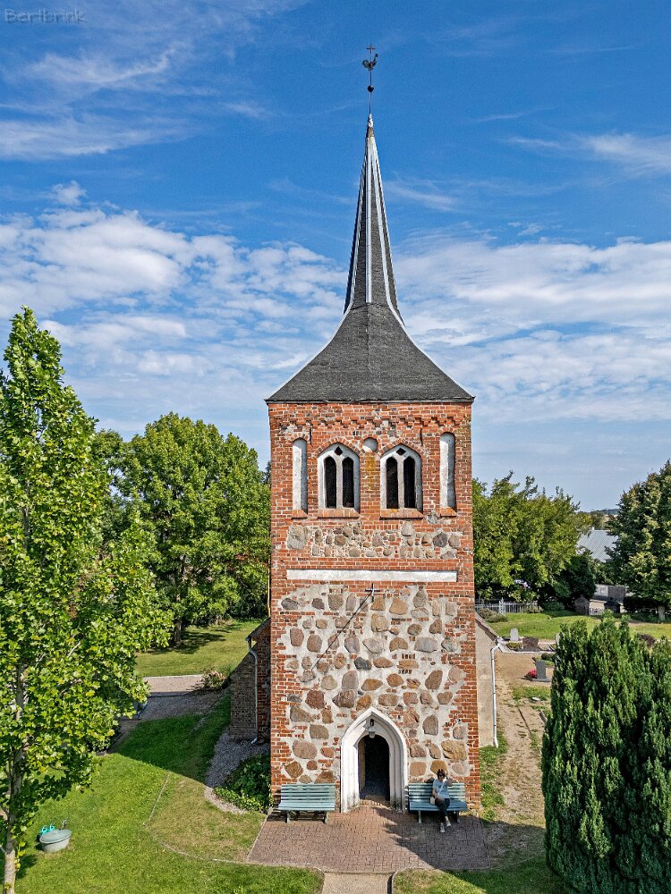 Die Feldsteinkirche Meesiger auf Drohnenaufnahmen