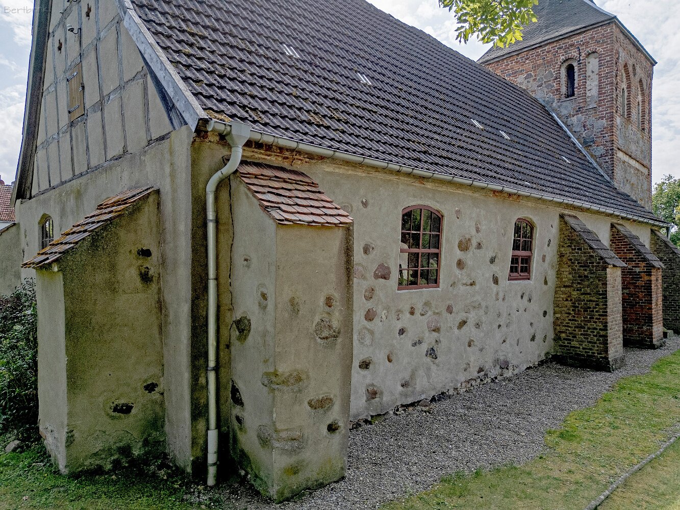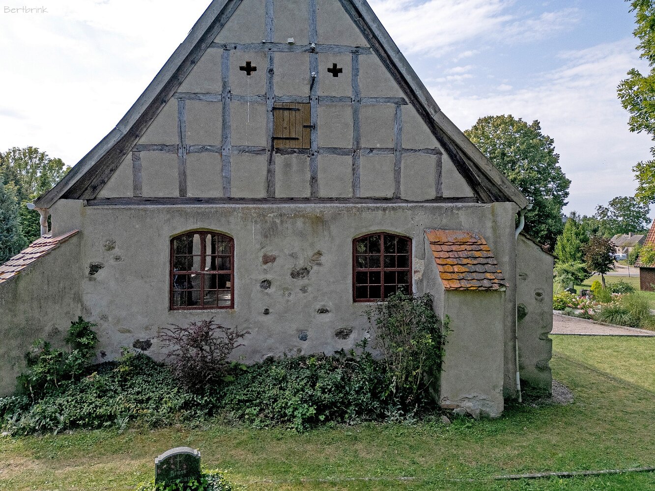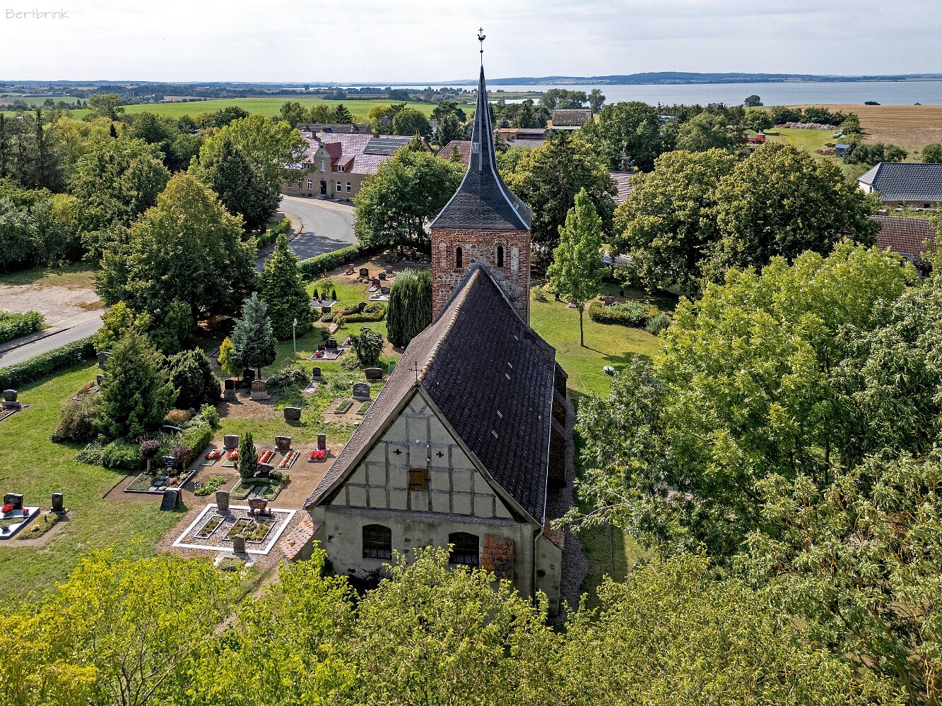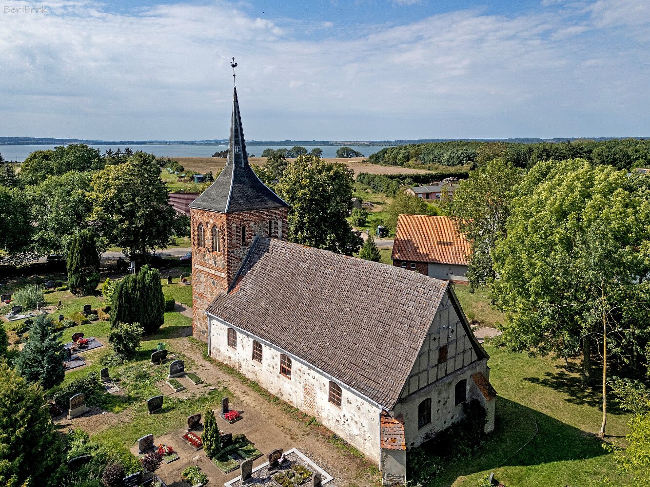 Die Feldsteinkirche Meesiger auf Drohnenaufnahmen