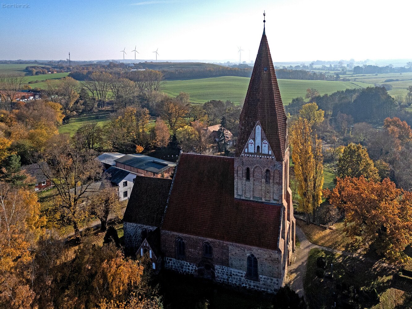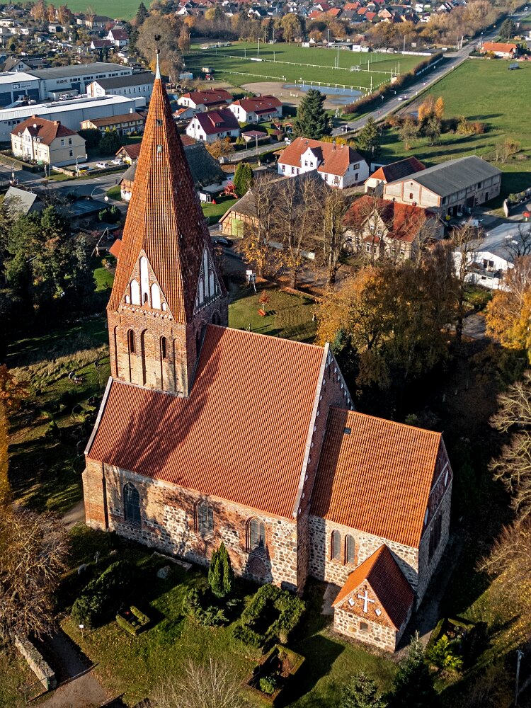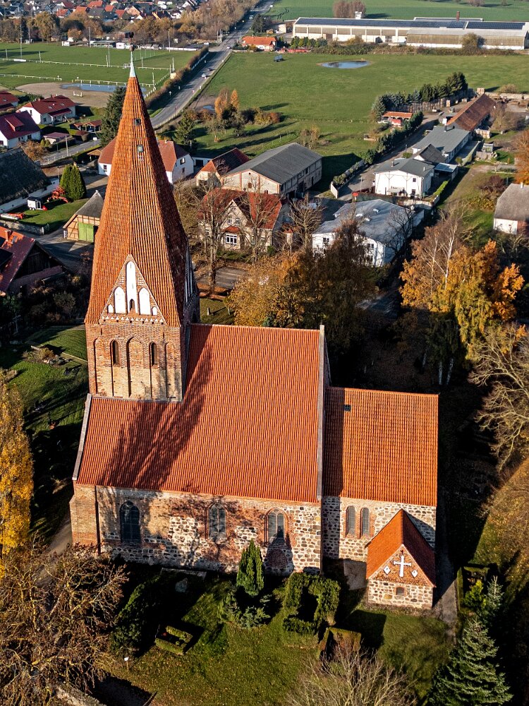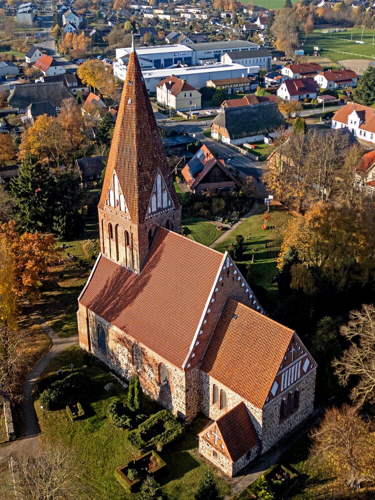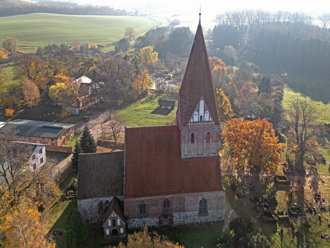 Die Feldsteinkirche Parkentin auf Drohnenfotos