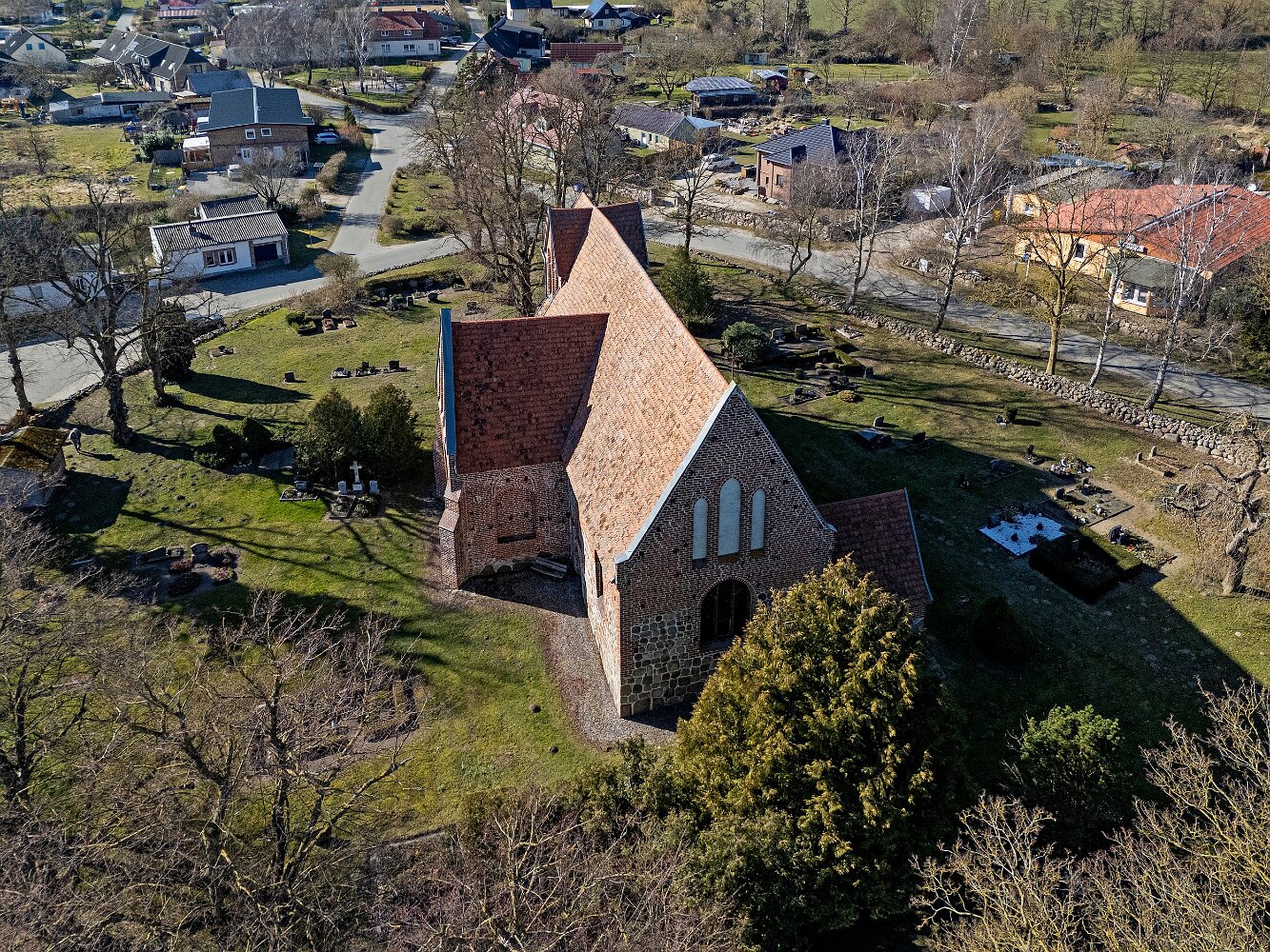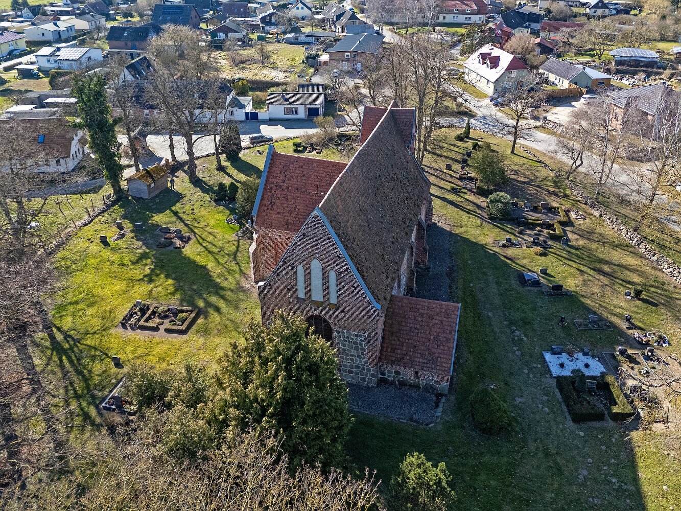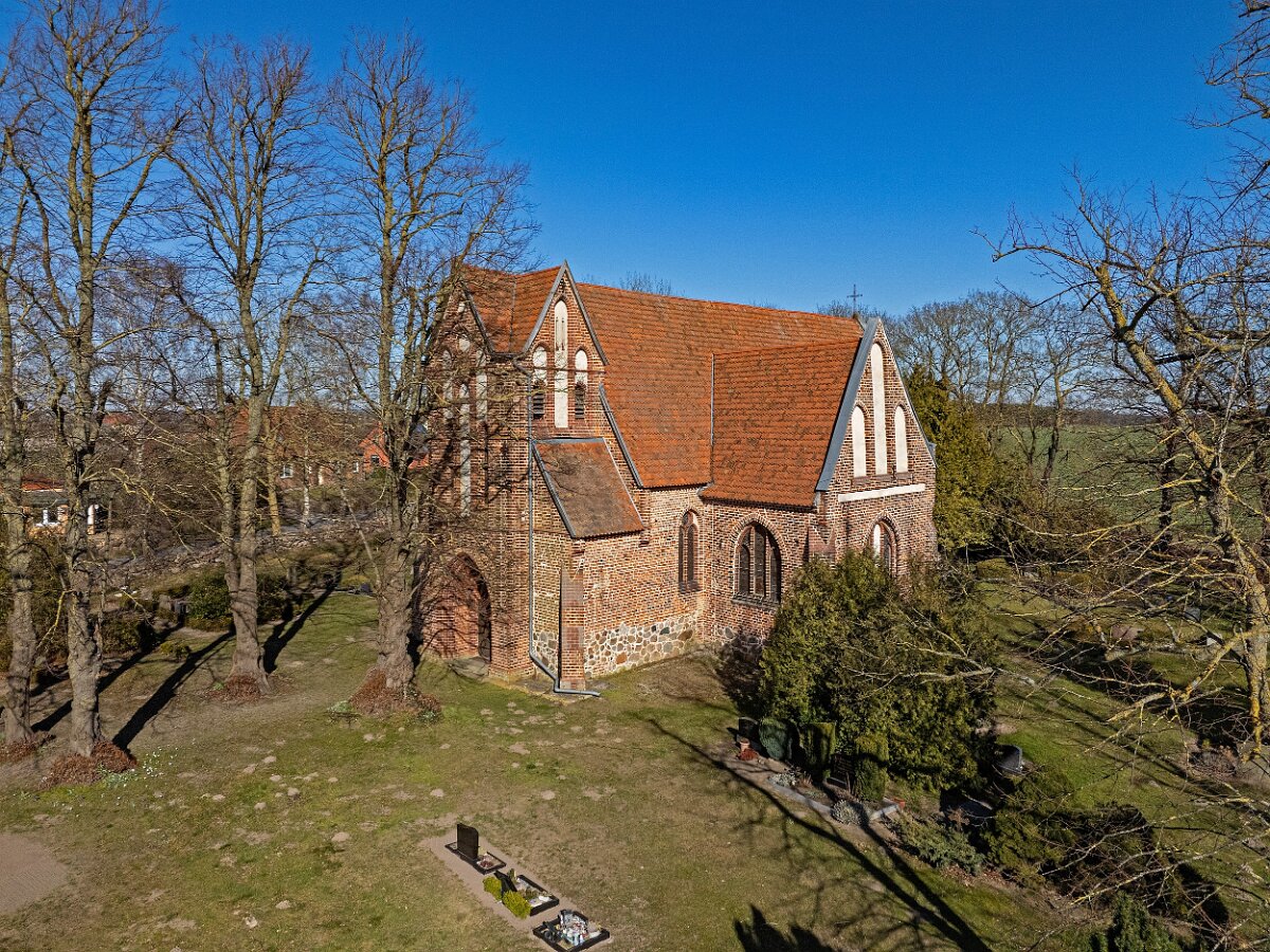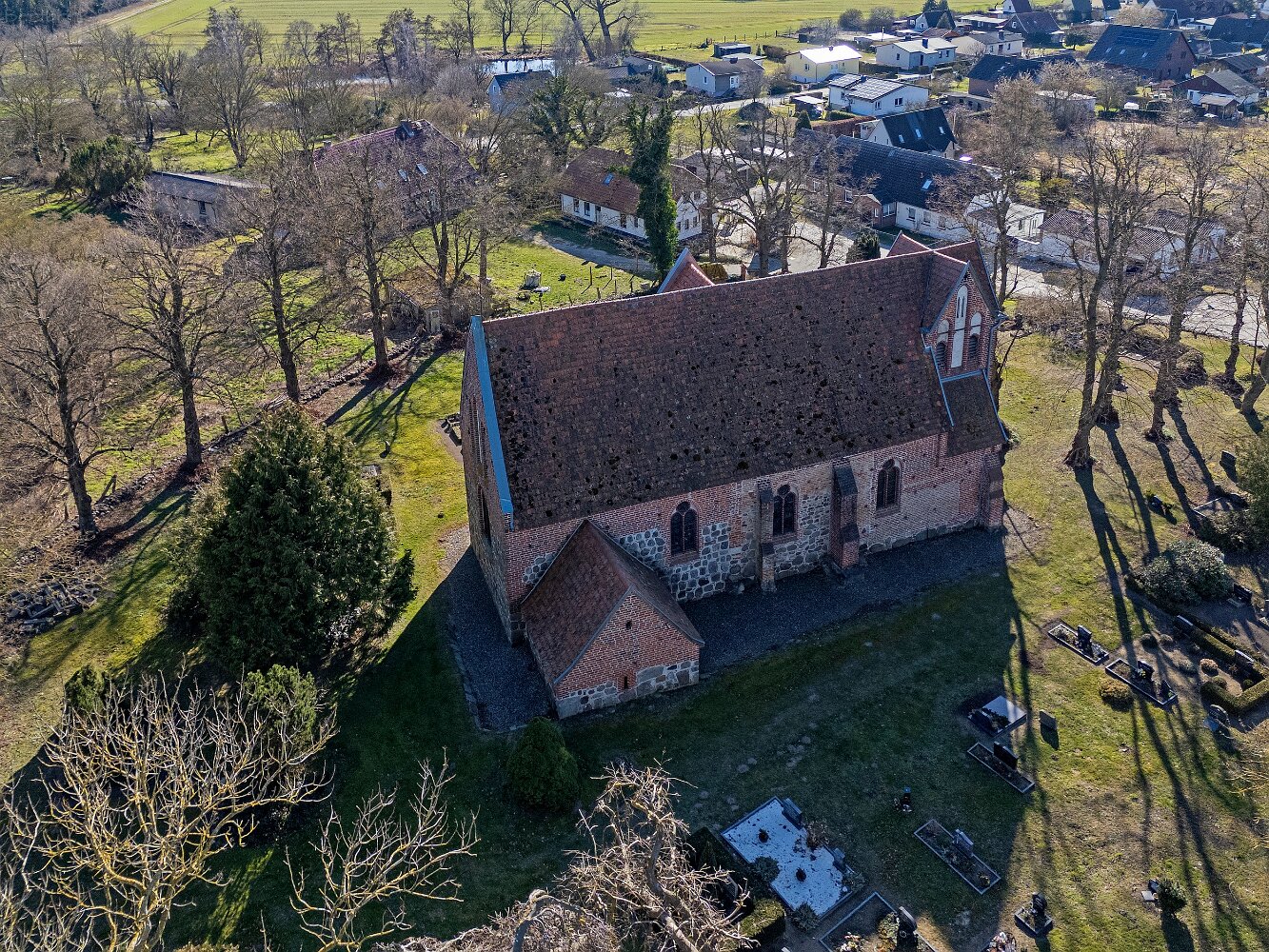 Drohnenaufnahmen der Feldsteinkirche in Russow