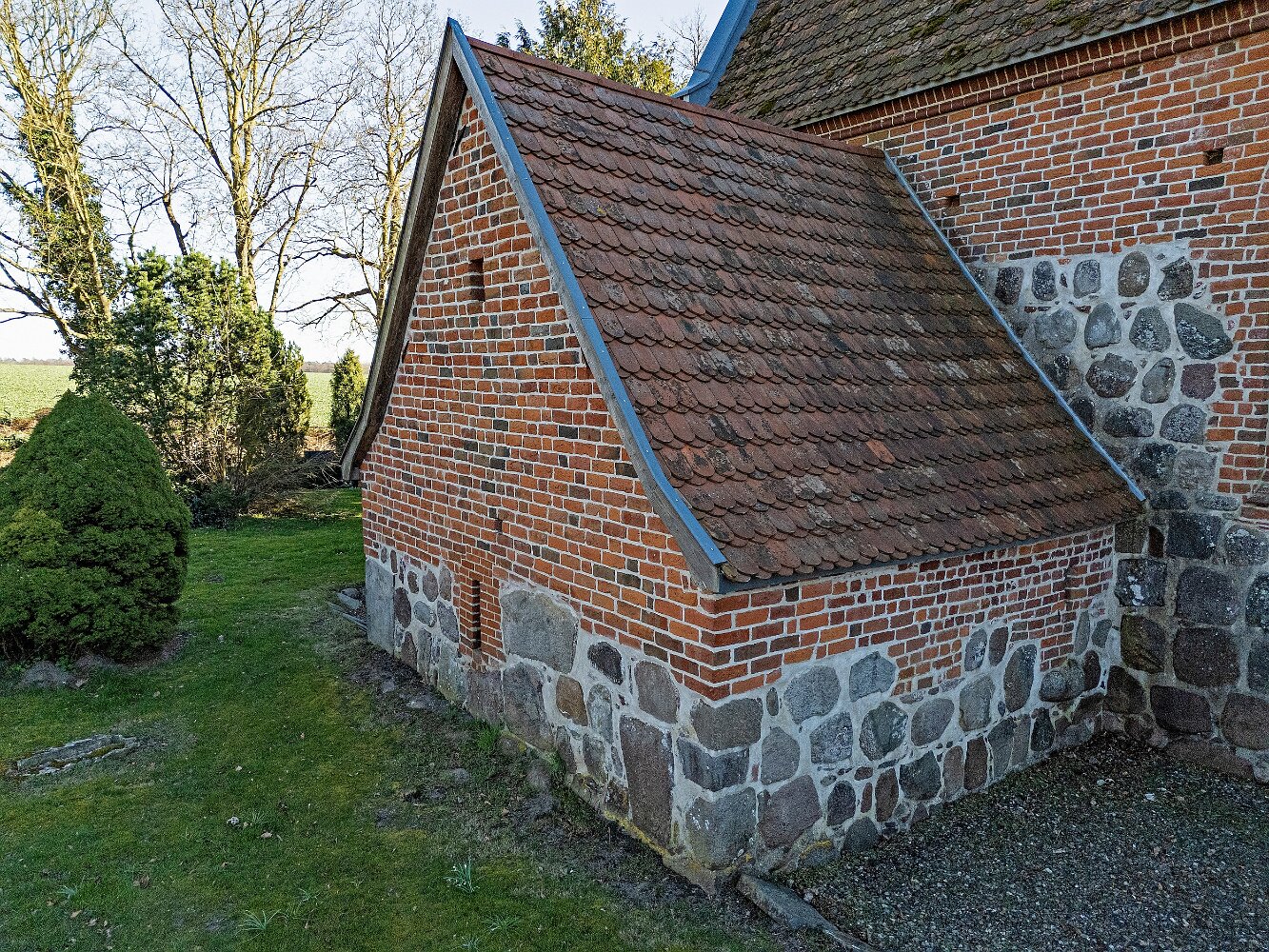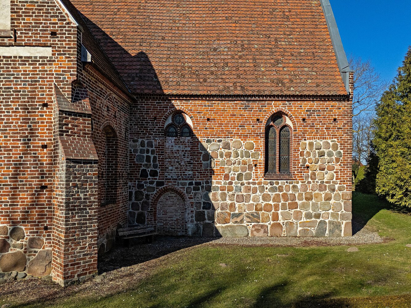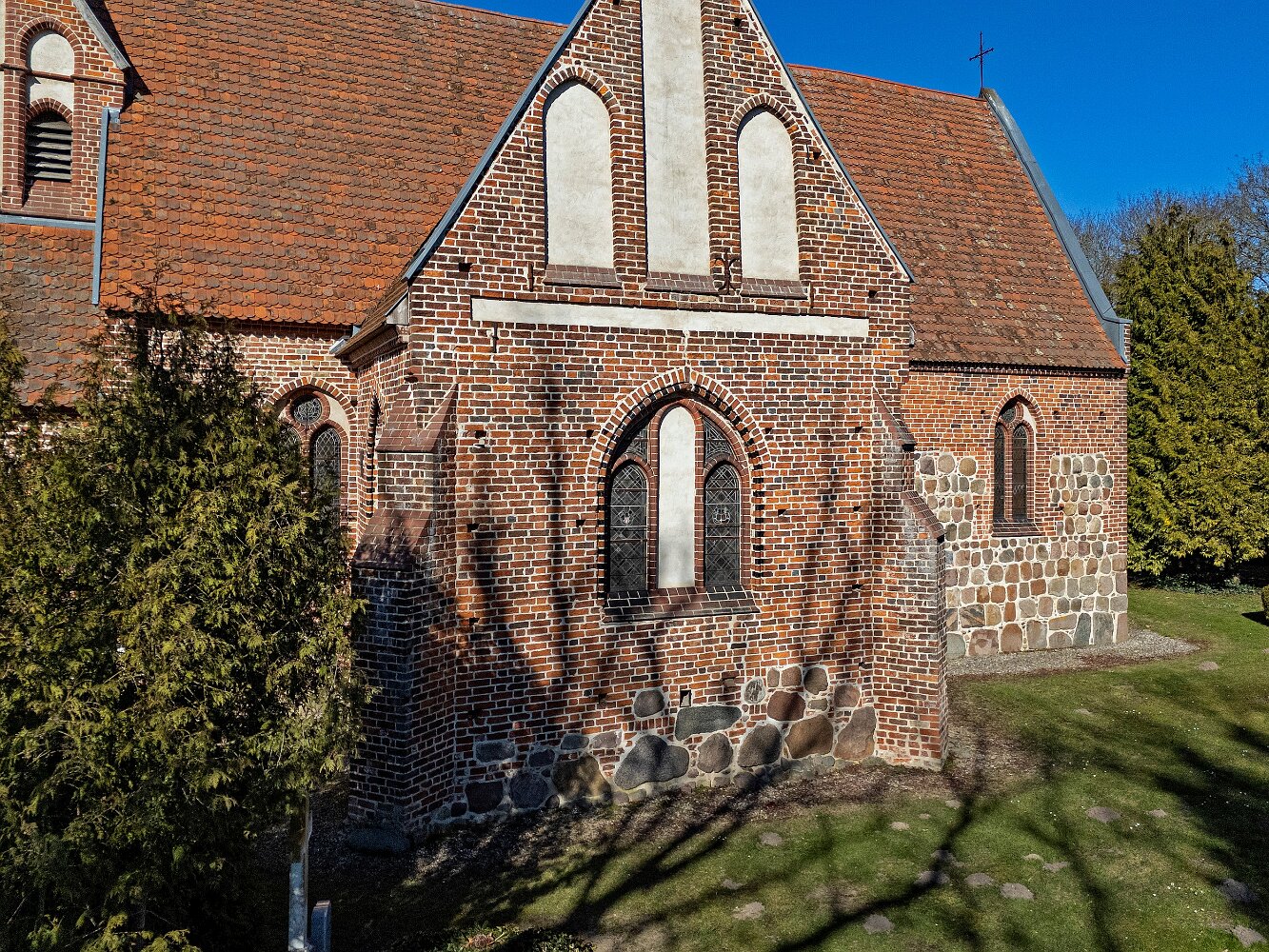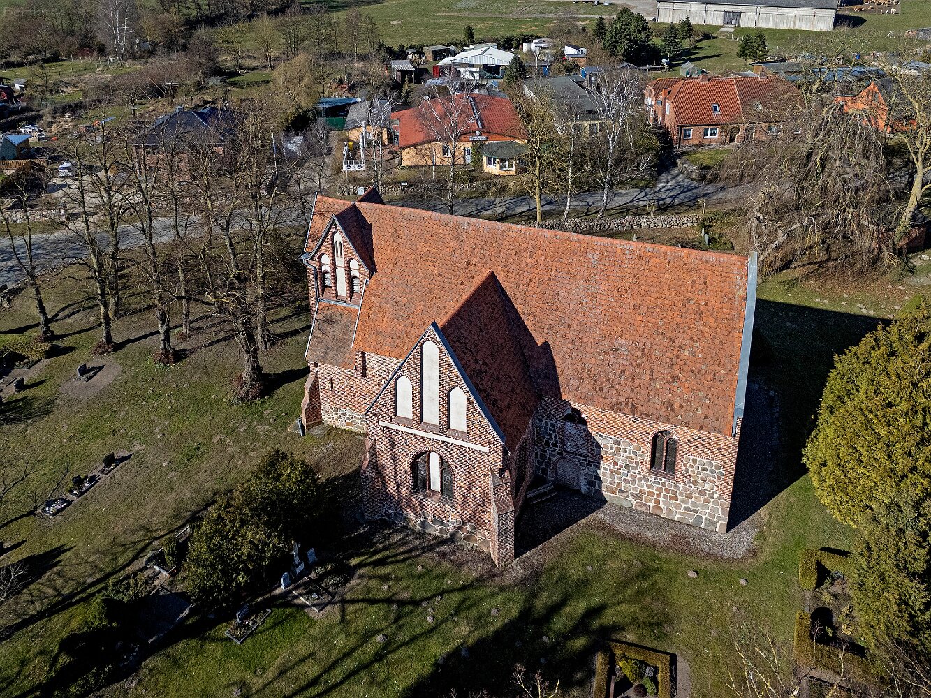 Drohnenaufnahmen der Feldsteinkirche in Russow