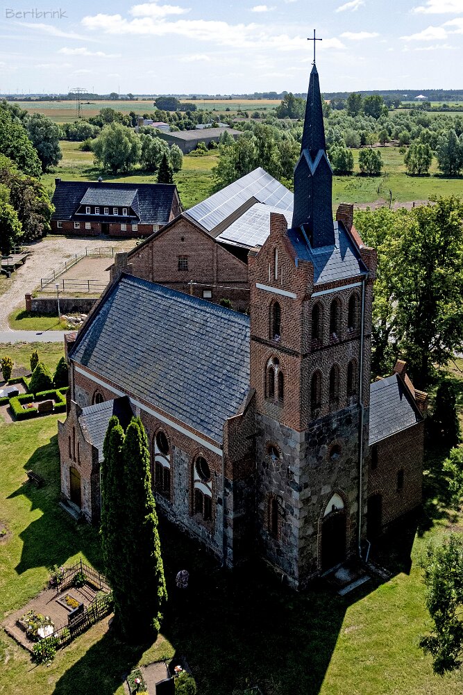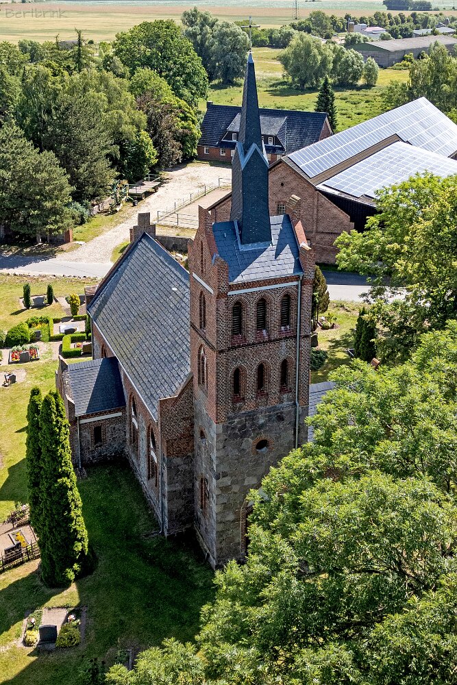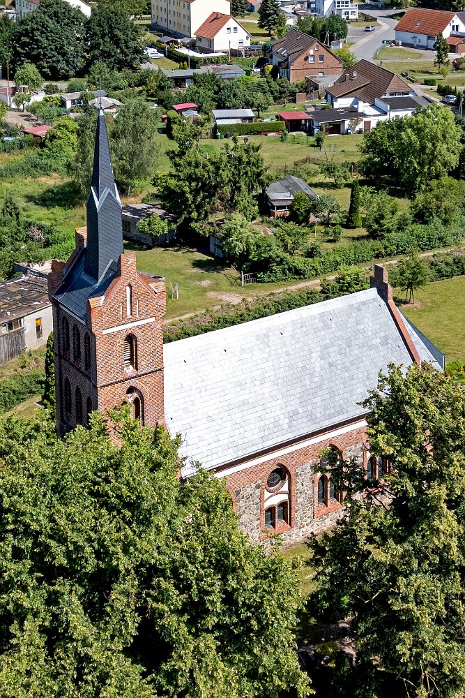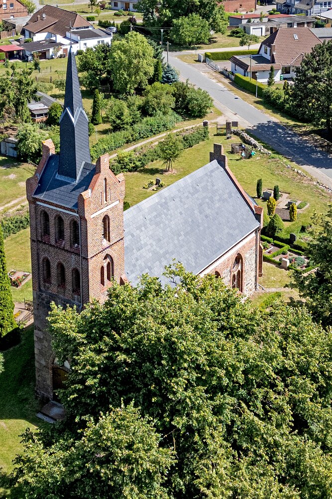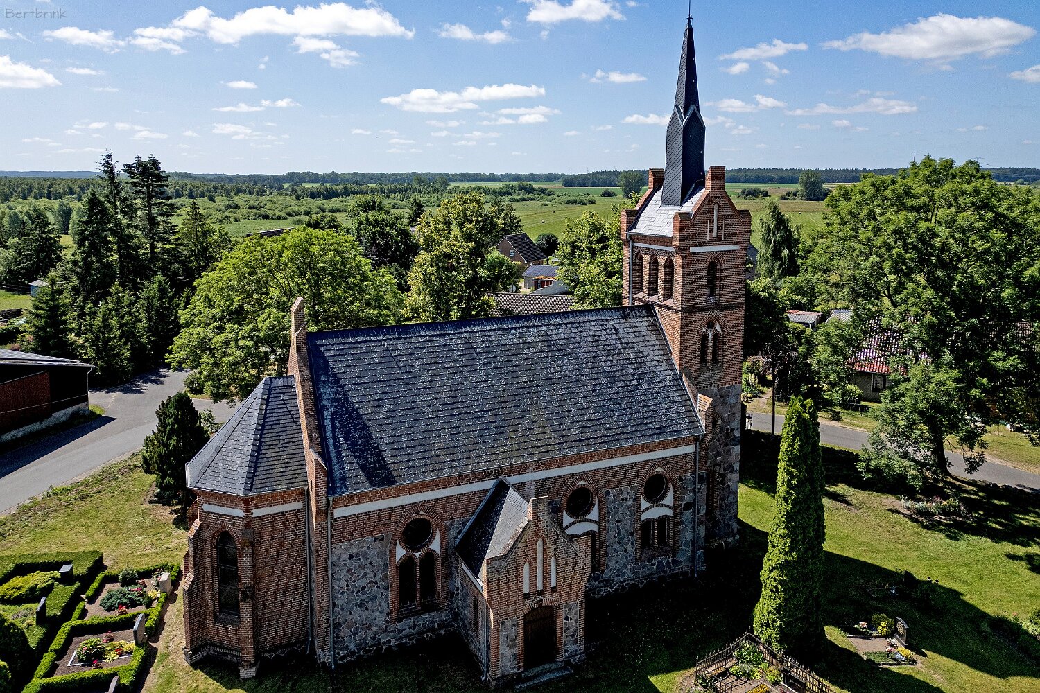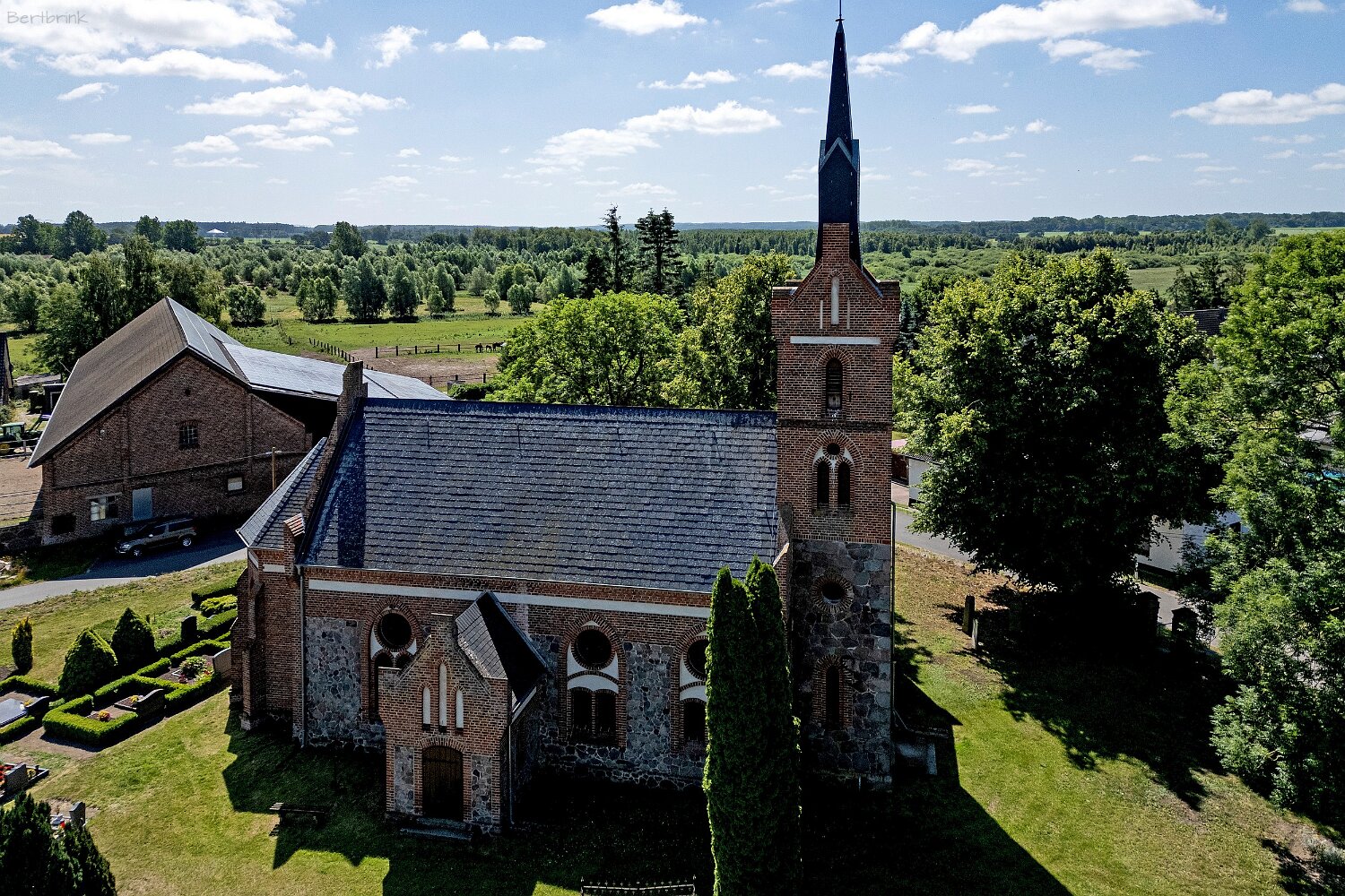 Die Feldsteinkirche Siedenbrünzow auf Drohnenfotos.