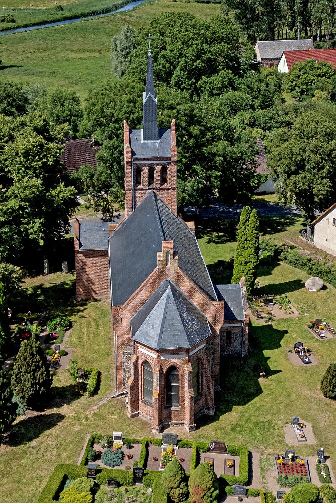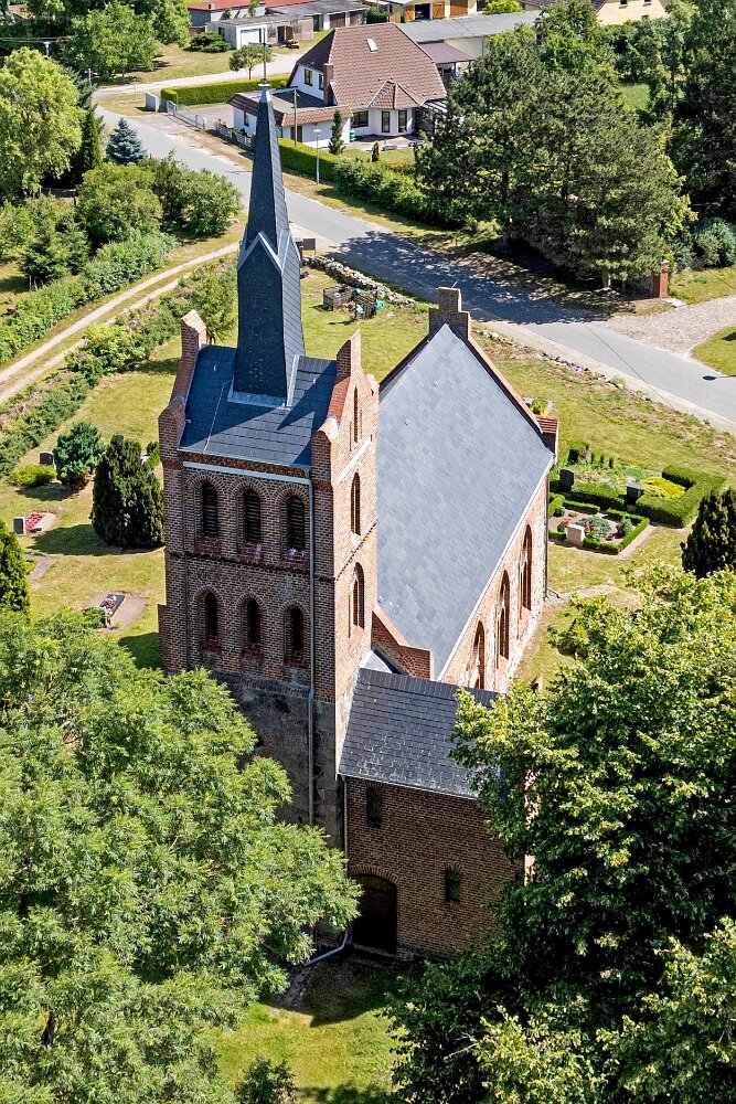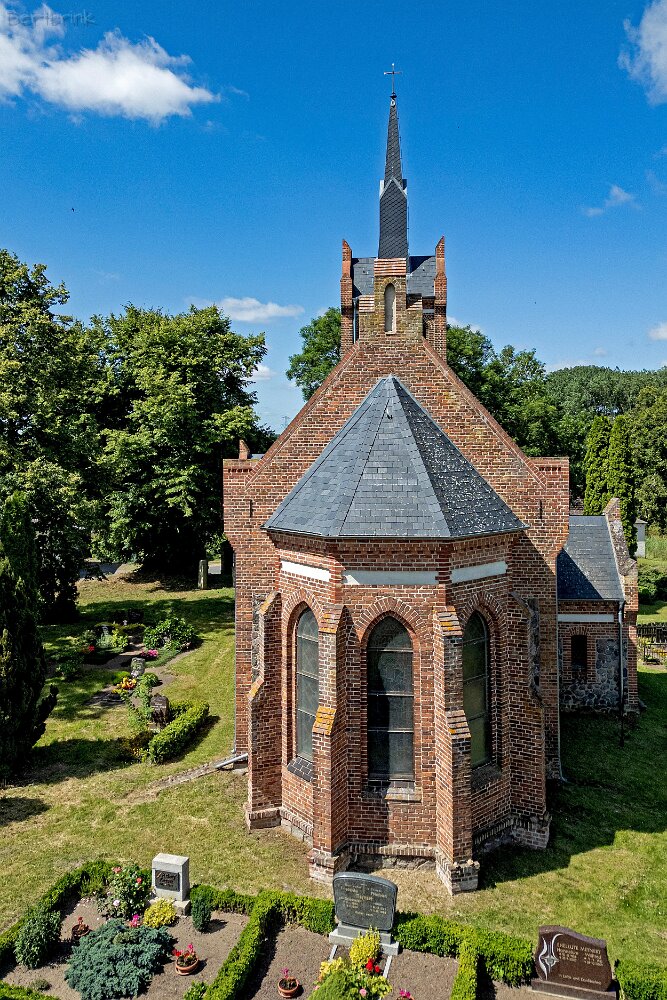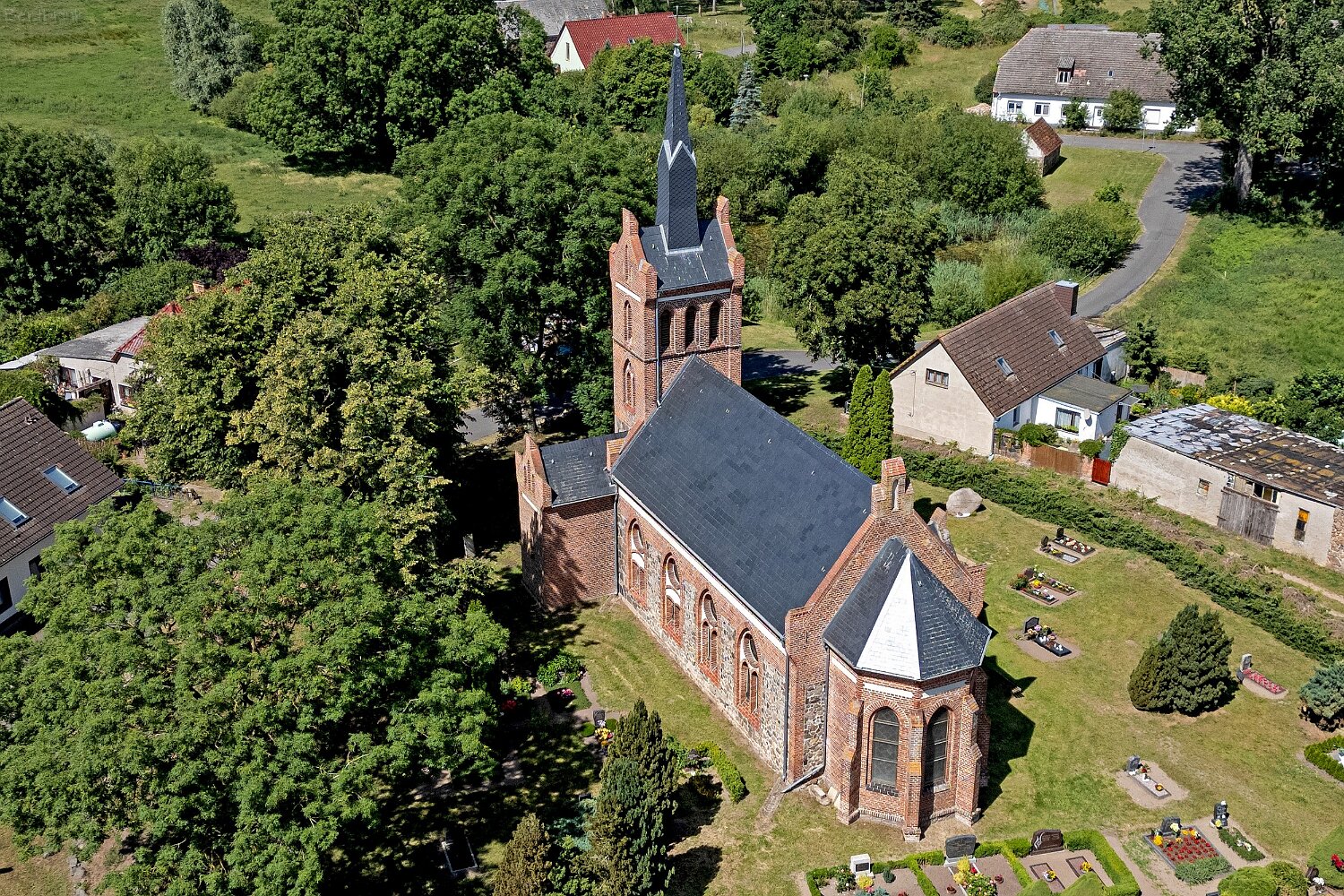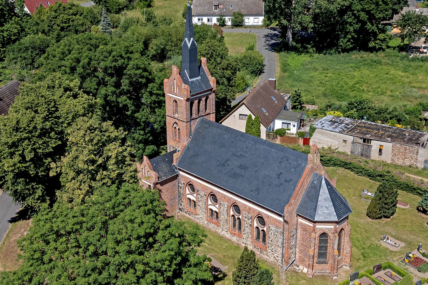 Die Feldsteinkirche Siedenbrünzow auf Drohnenfotos.