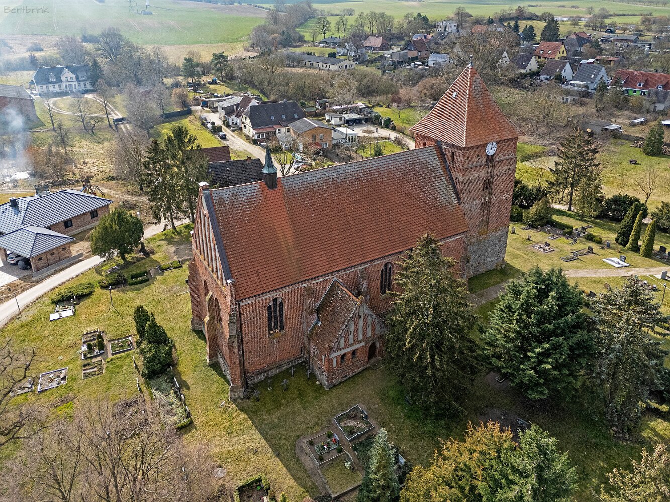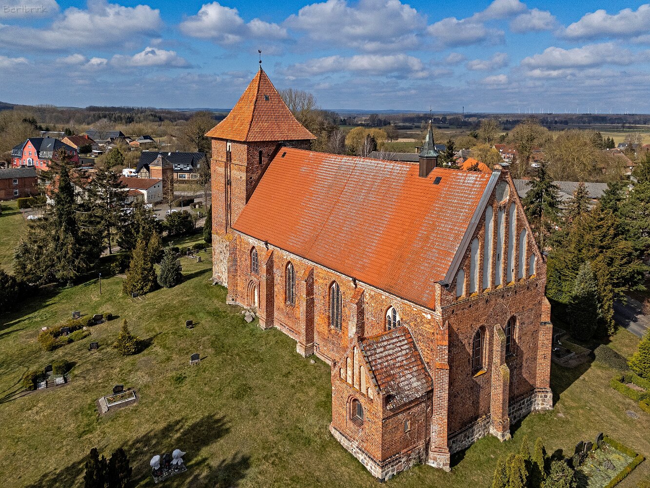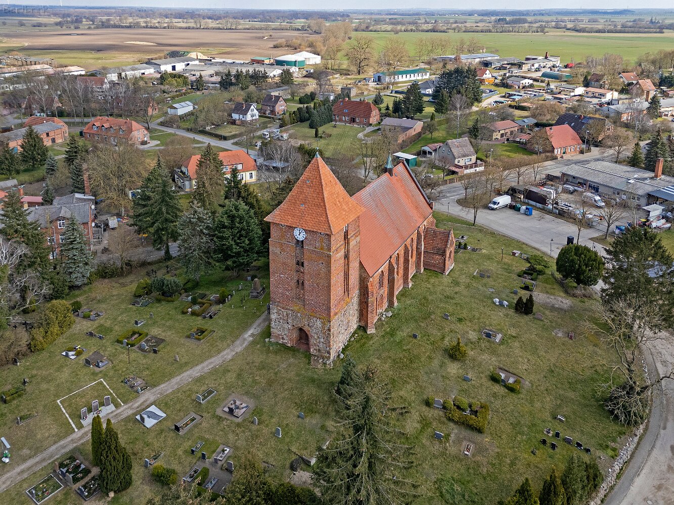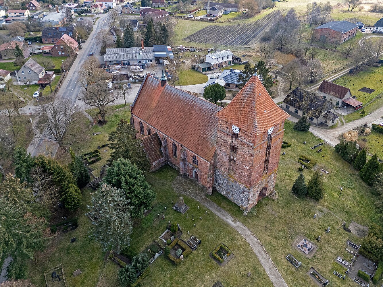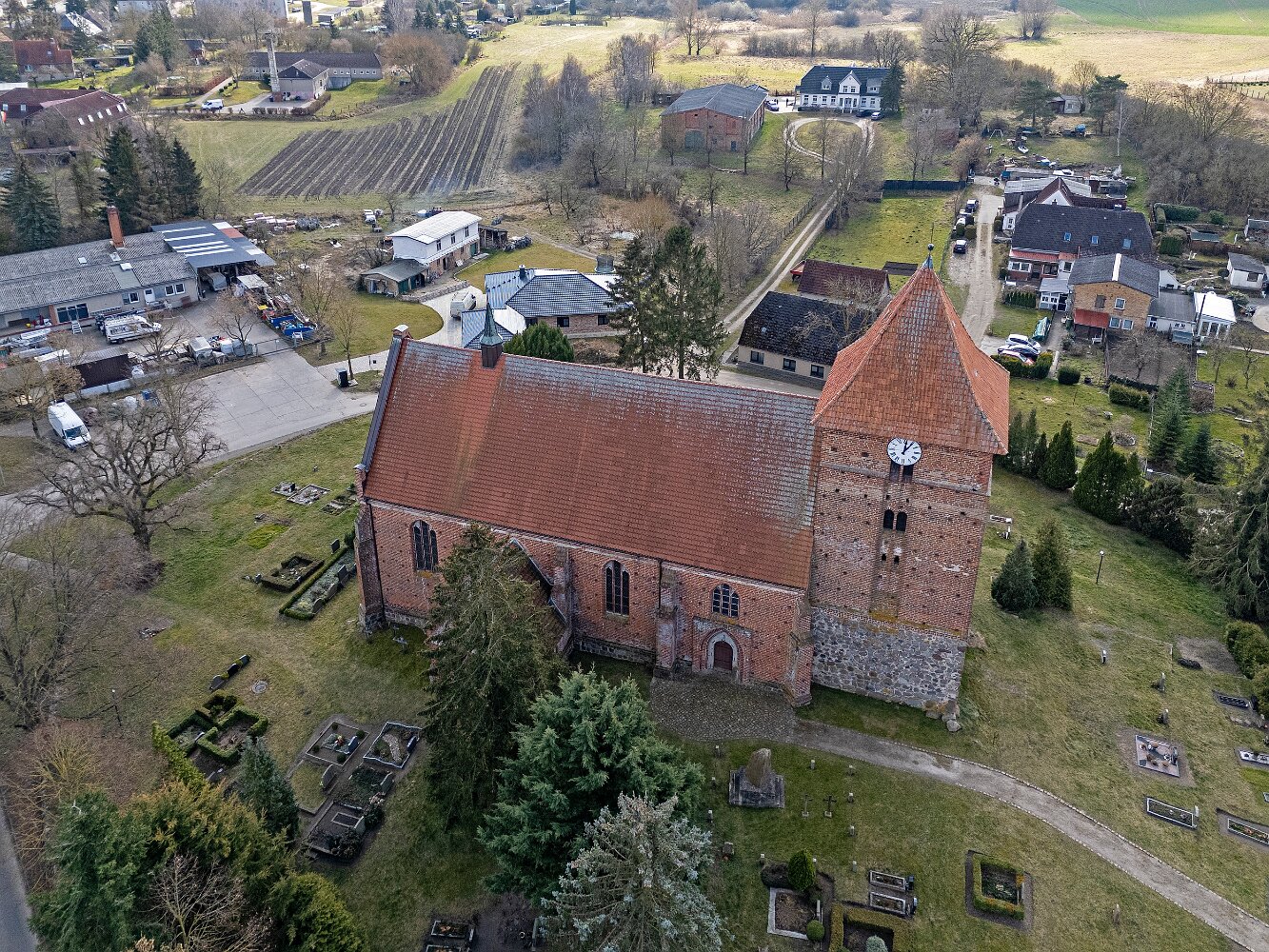 Drohnenaufnahmen der Feldsteinkirche in Tarnow