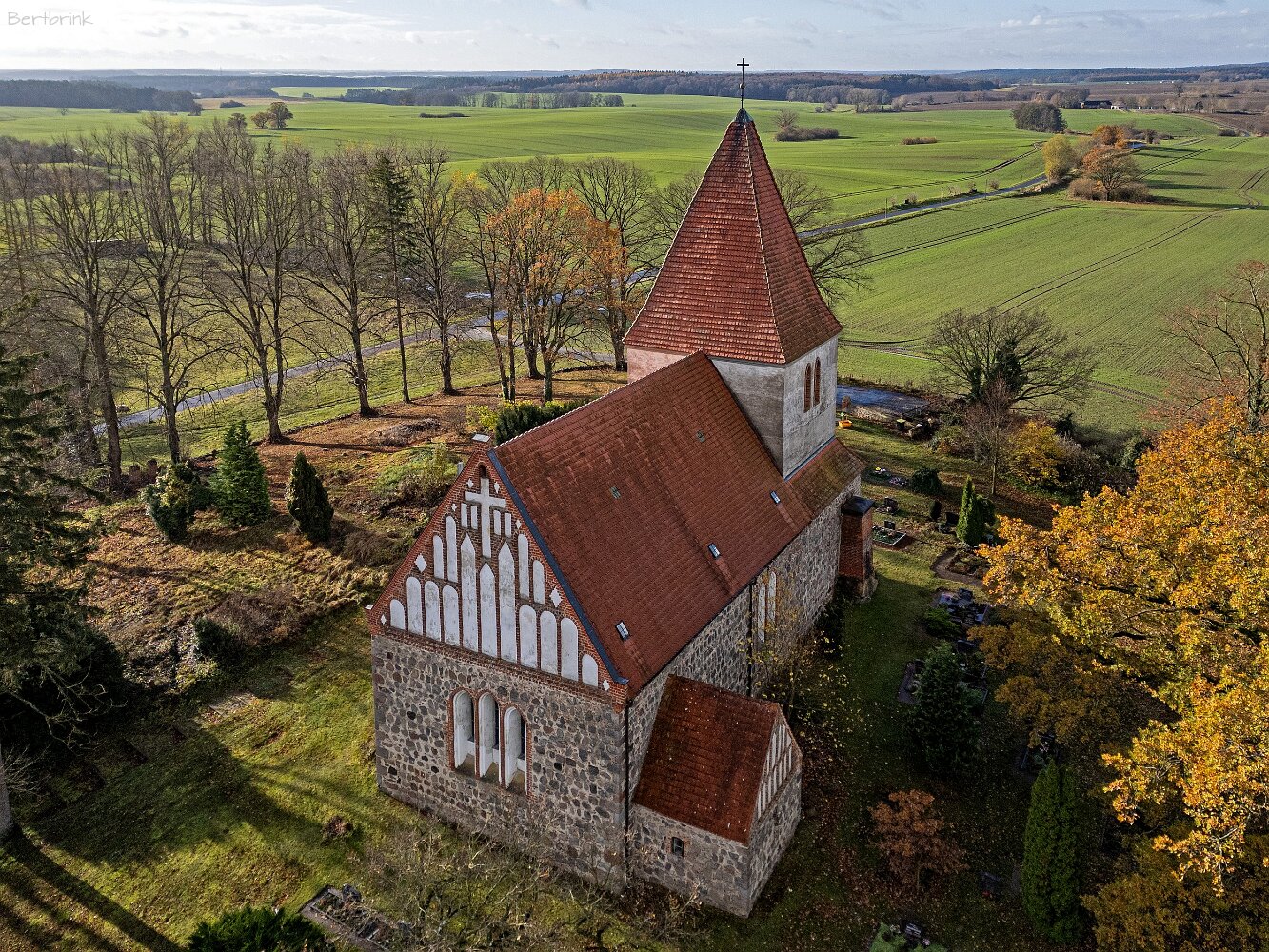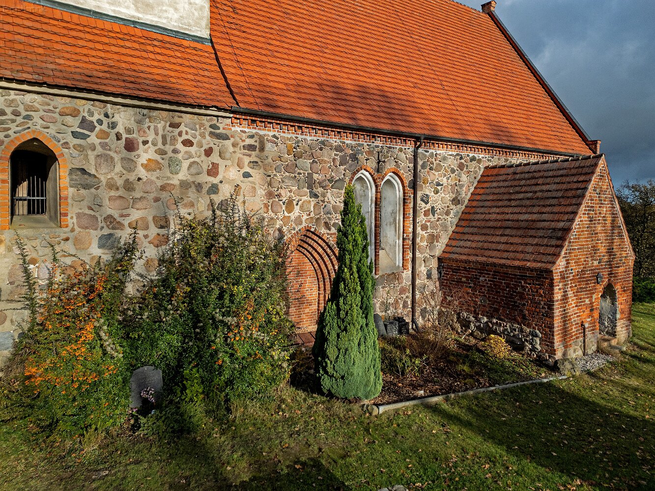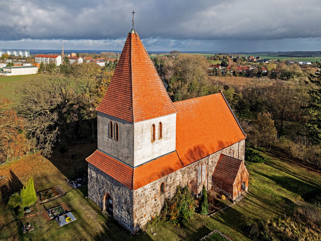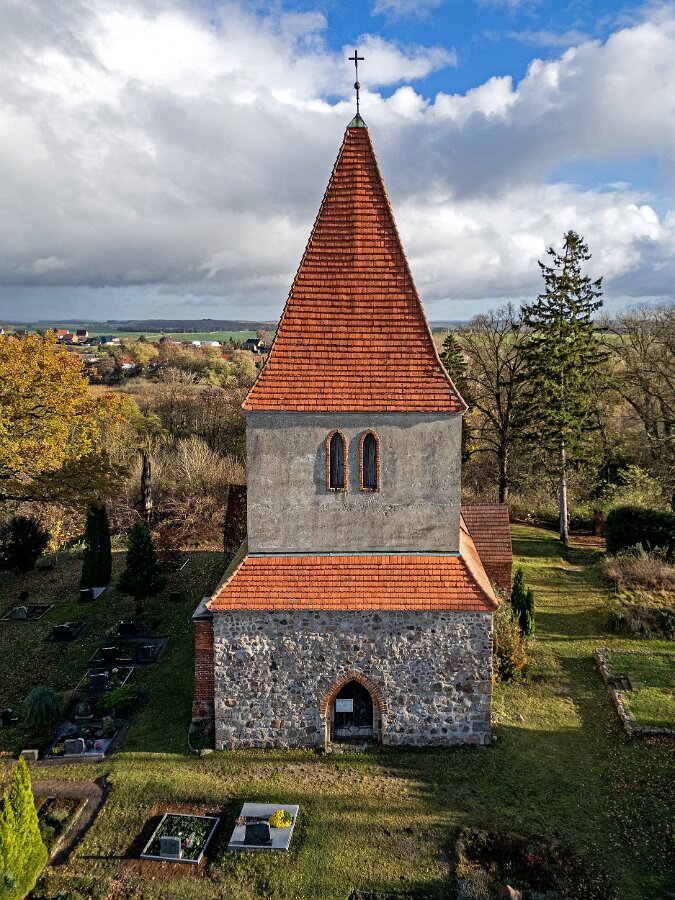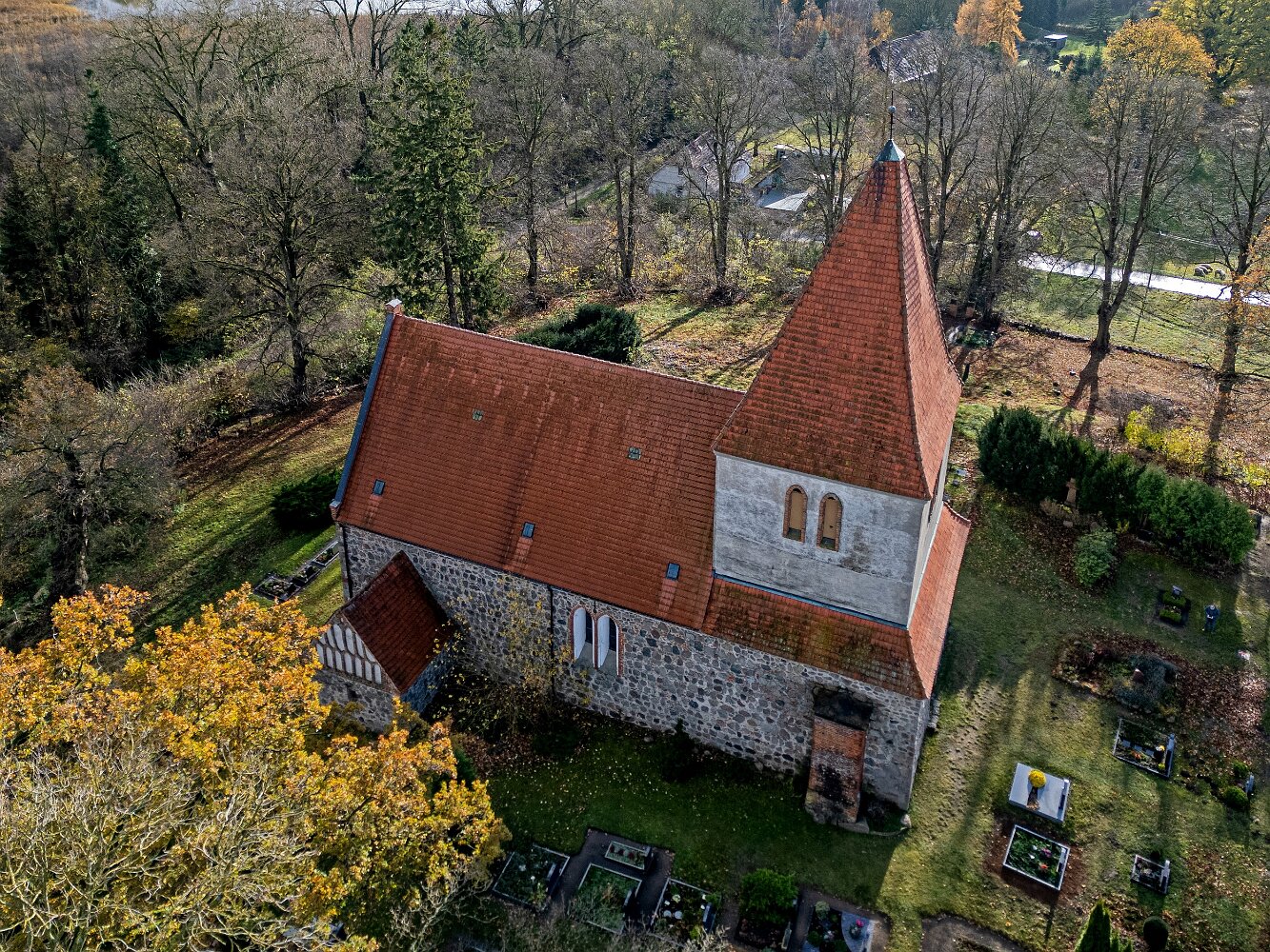 Die Feldsteinkirche in Zehne auf Drohnenfotos
