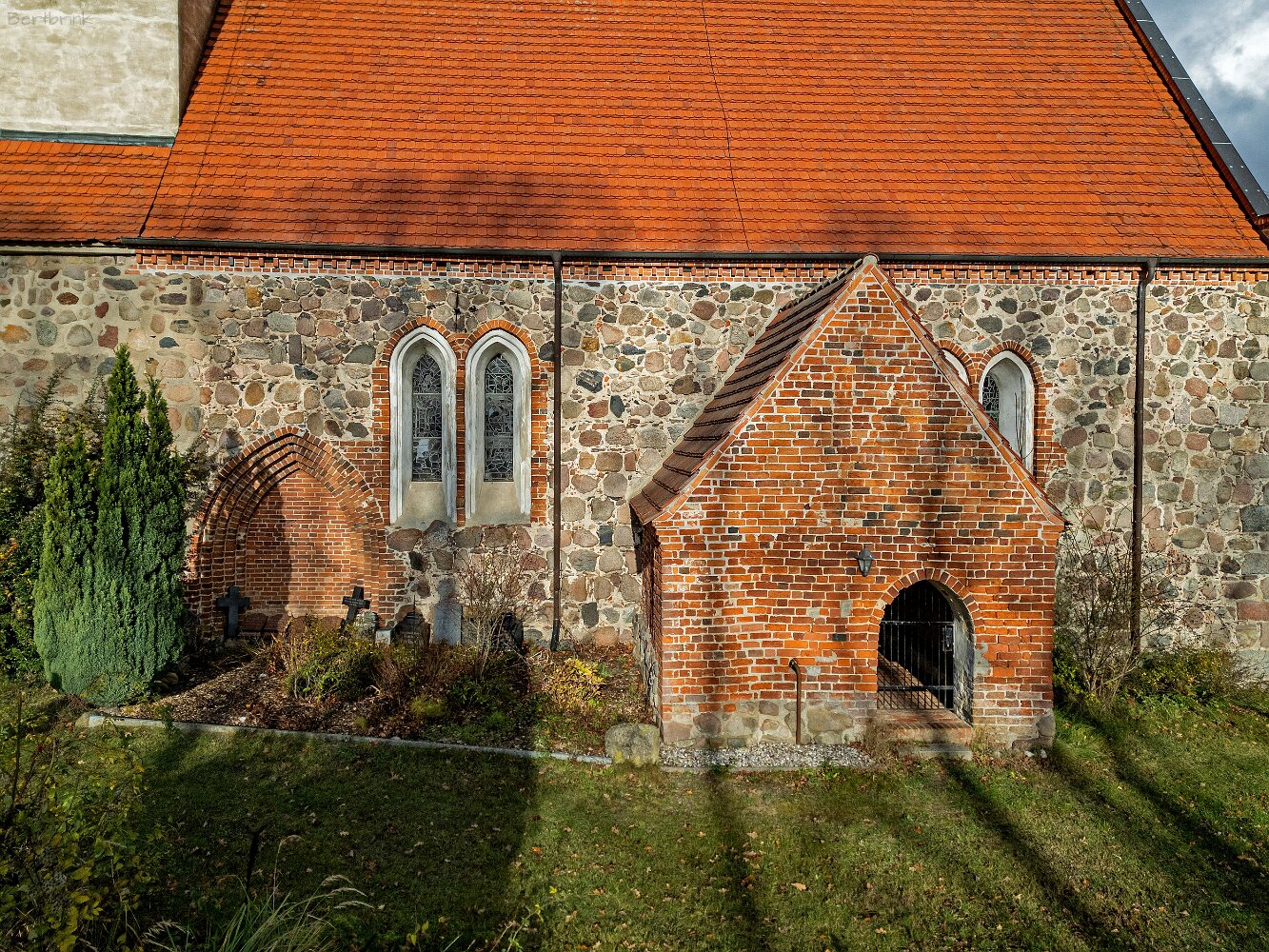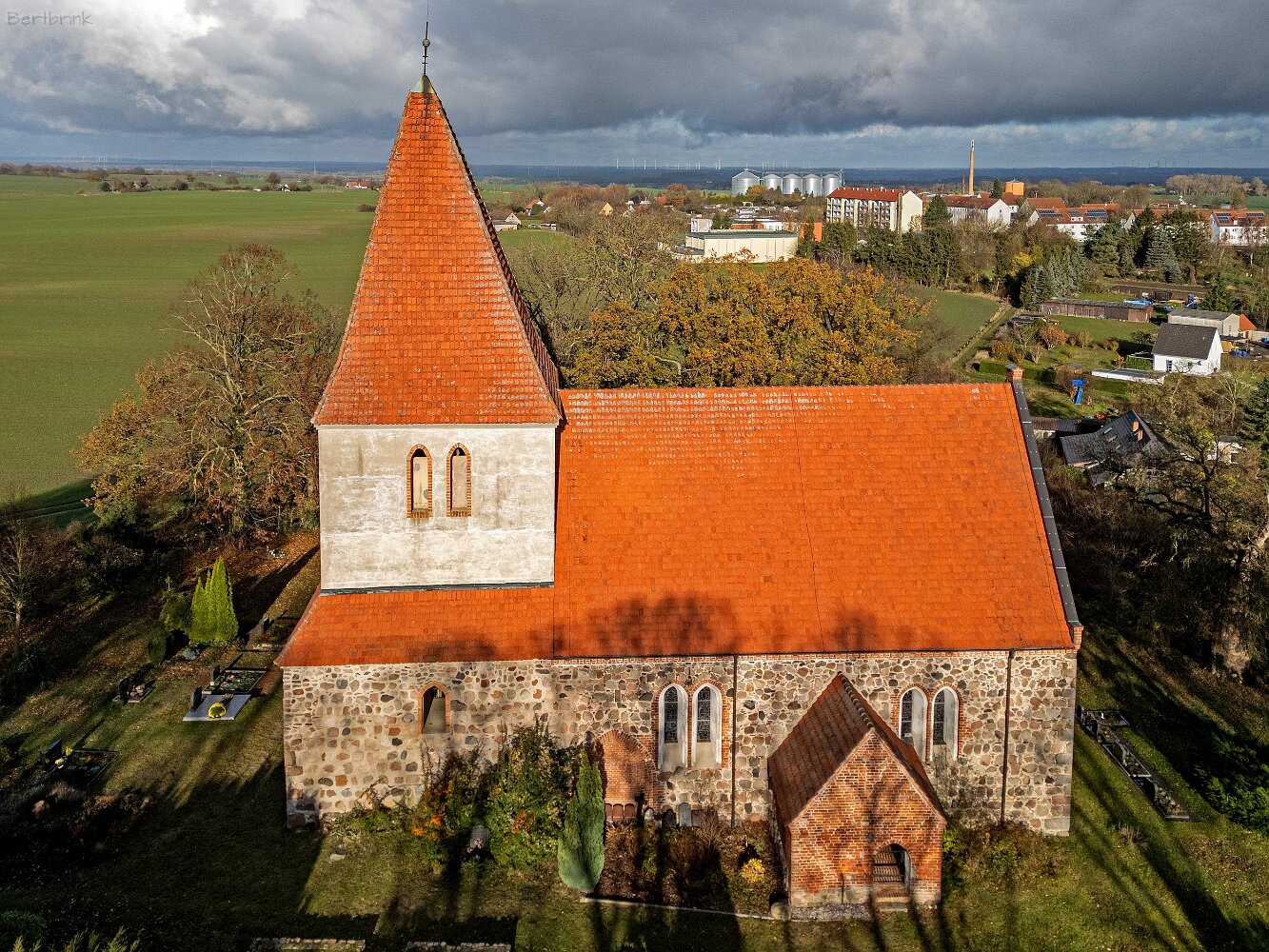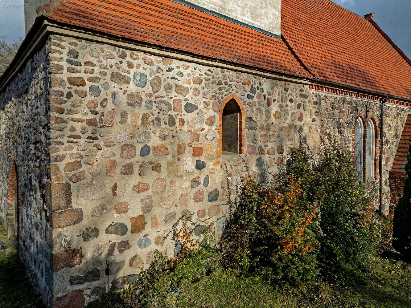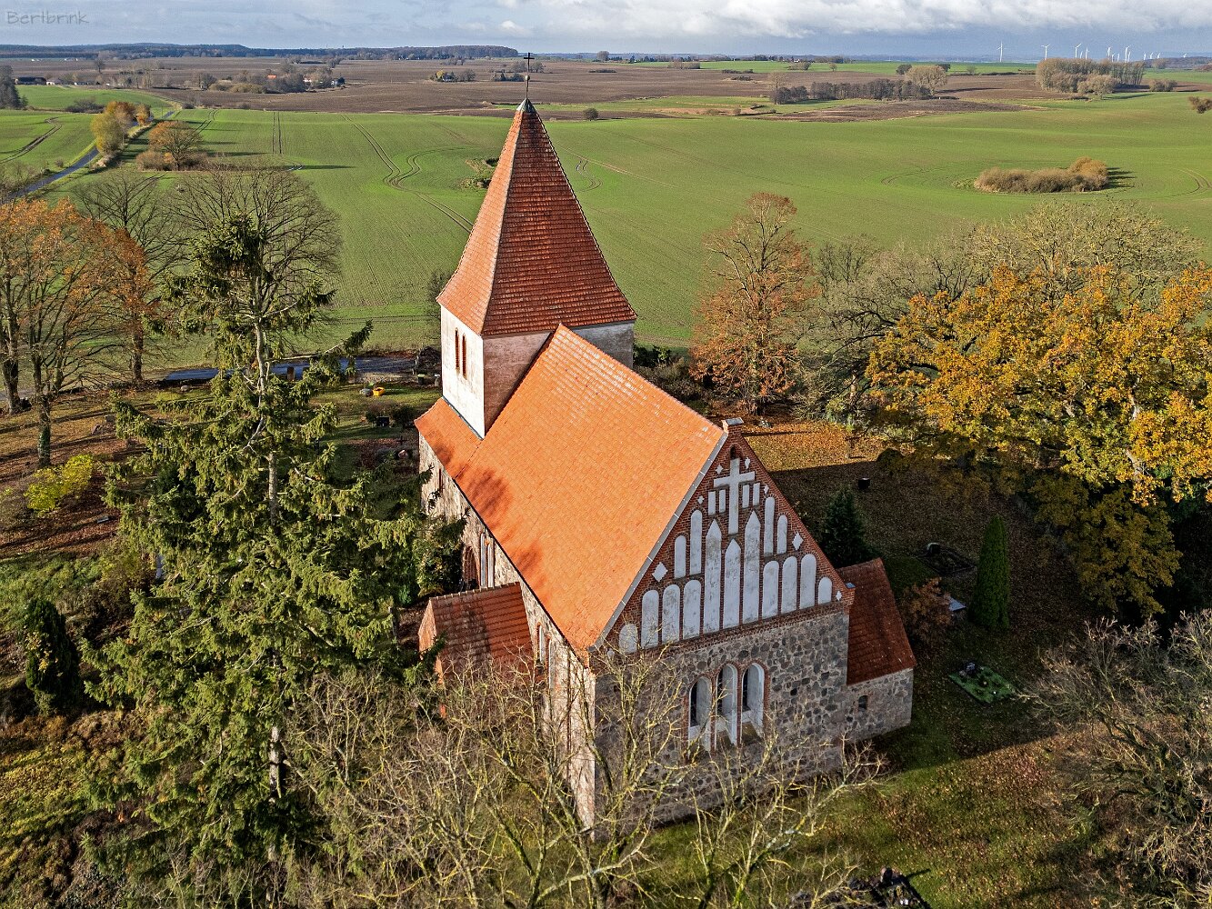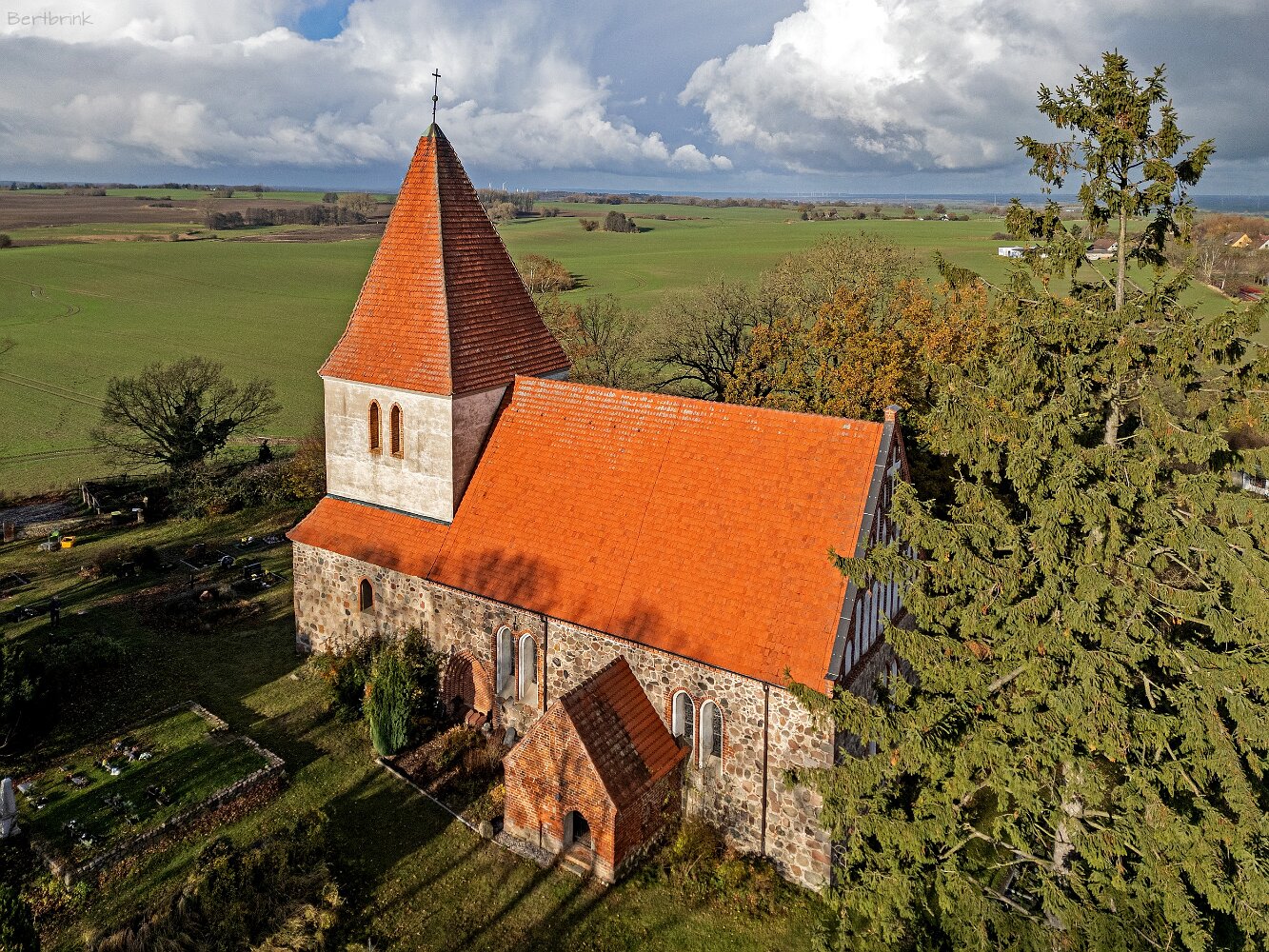 Die Feldsteinkirche in Zehne auf Drohnenfotos