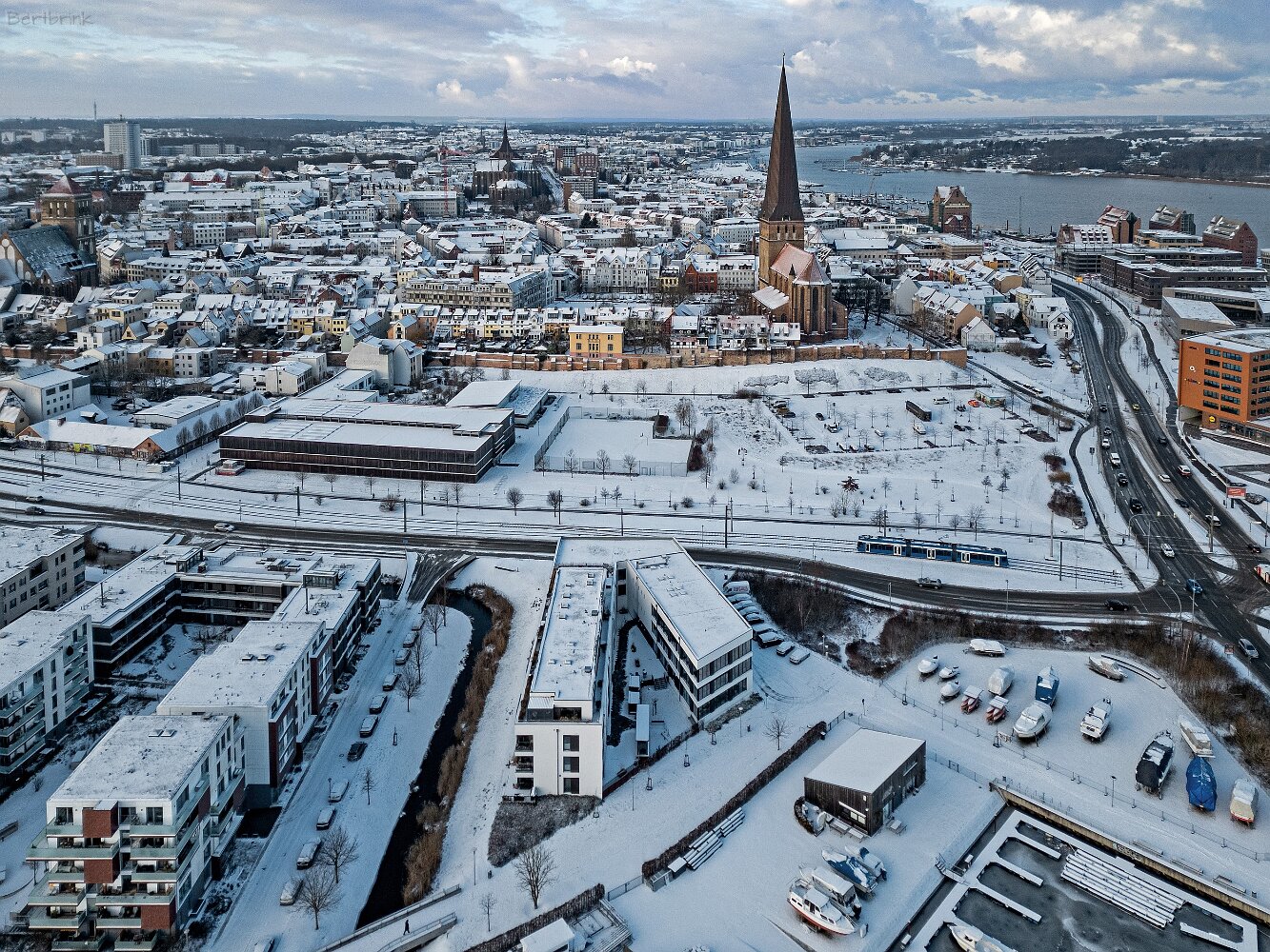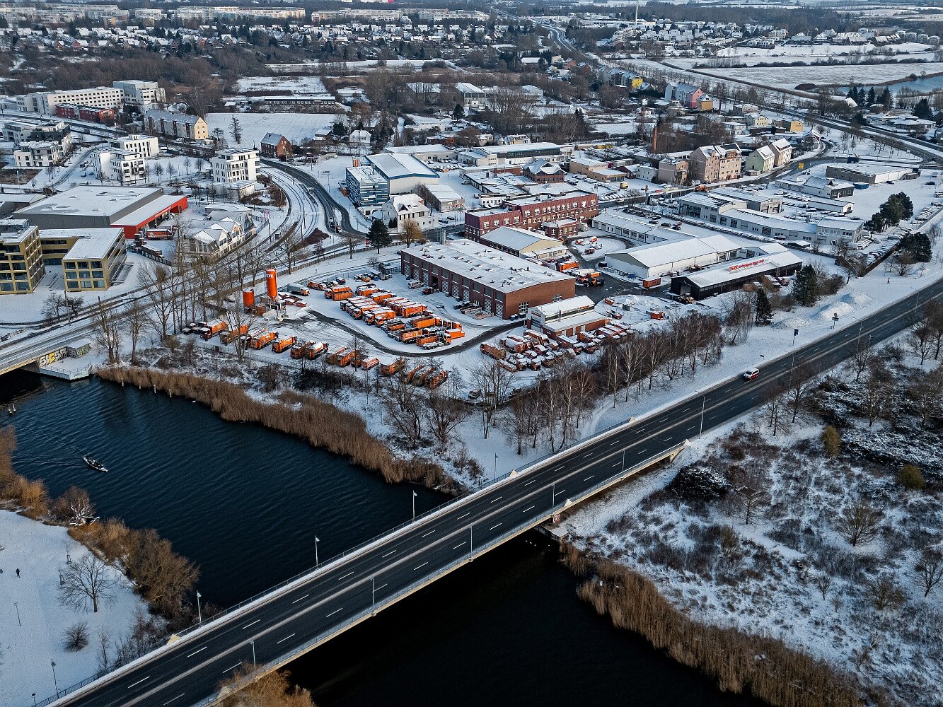 Drohnenaufnahmen der winterlichen Landschaft am Petriviertel