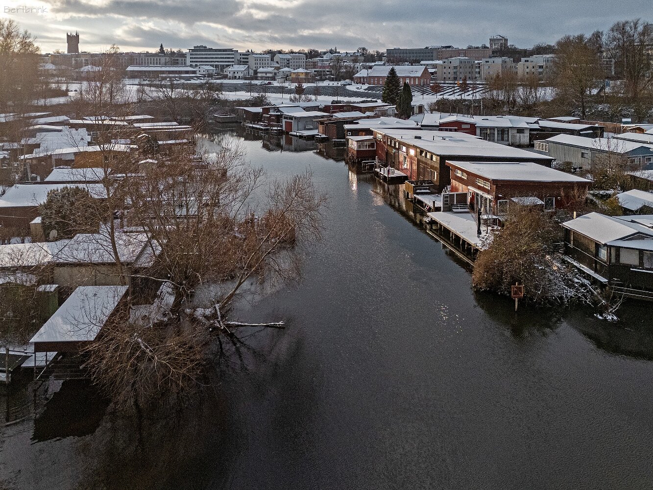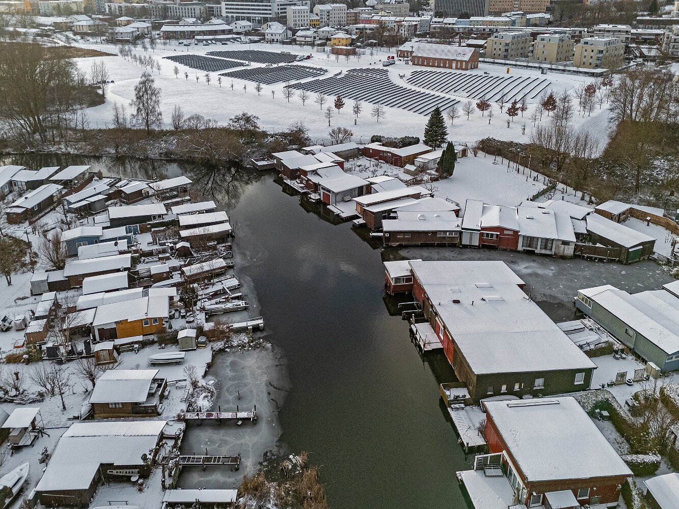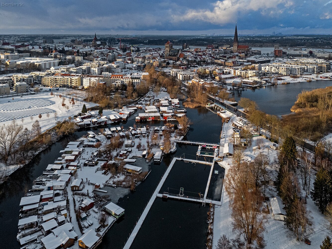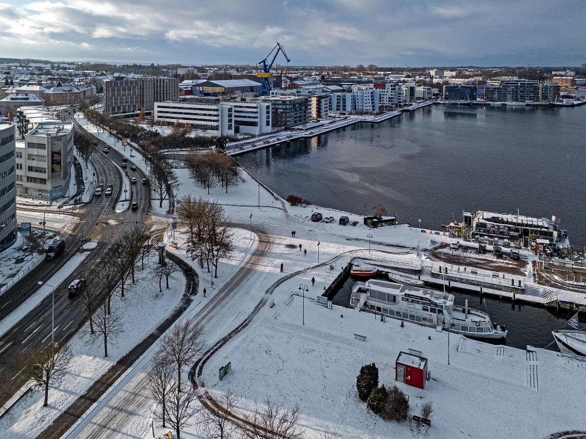 Drohnenaufnahmen von der Eisbildung auf der Ober- und Unterwarnow
