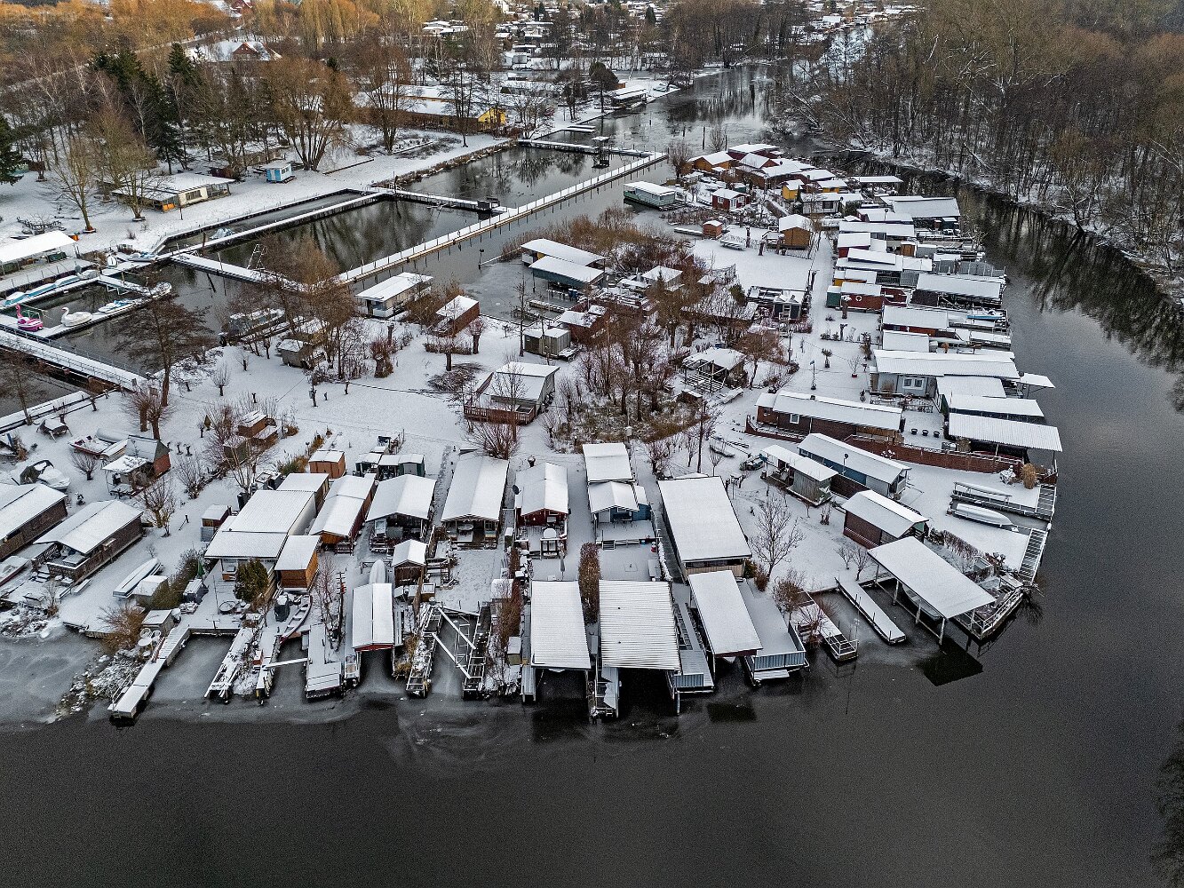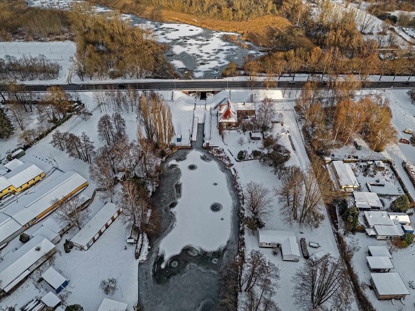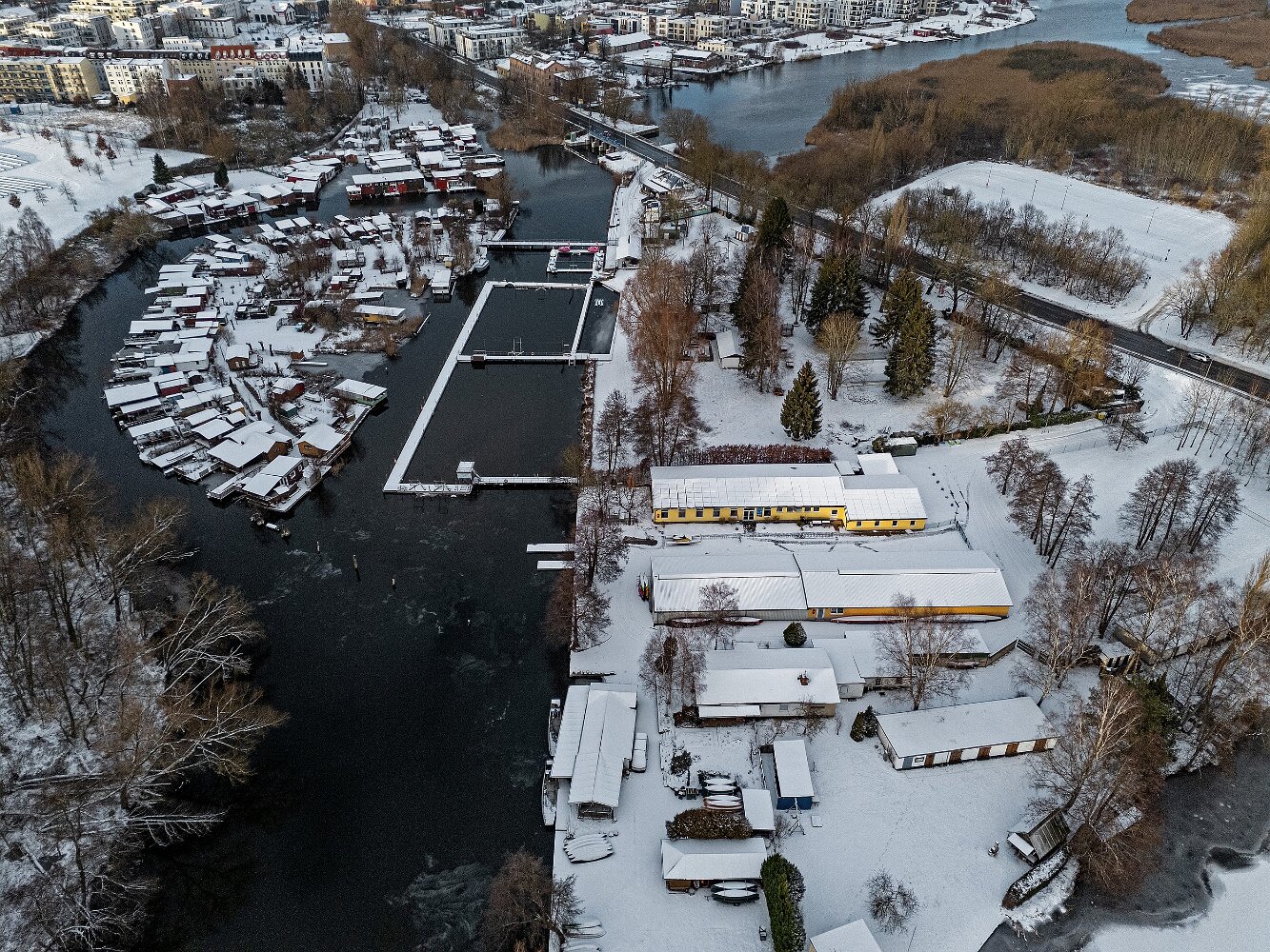 Drohnenaufnahmen von der Eisbildung auf der Ober- und Unterwarnow
