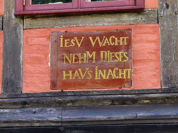stecken die ein wenig abgewandelten römischen Ziffern, die uns das Baujahr 1723, also mitten im schönsten Barock, verraten. Die Ziffern sind in der zu lesenden Reihenfolge zu zählen: