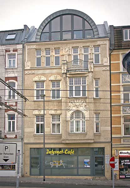 Nach sorgfältiger Erneuerung zeigt sich der Jugendstilschmuck des Hauses wieder in all seiner Schönheit. Verändert wurde das Dachgeschoss mit einem modernen Aufbau. |