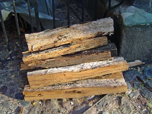 Vom Schwamm befallene alte Dachsparren. |