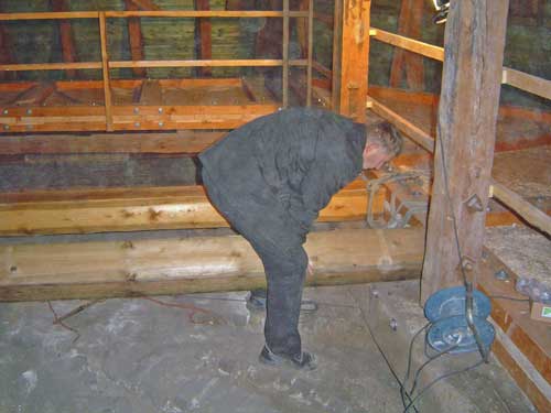 Rostocks größtes gotisches Bauwerk Unsichtbare Arbeiten an St. Marien Besucher beobachten immer wieder die umfassenden Arbeiten an der Marienkirche. Manche Tätigkeiten allerdings bleiben im Verborgenen und sind aus dem Kirchenschiff heraus nicht zu sehen. Ihre Bedeutung ist indes nicht geringer als das, was vor aller Augen vor sich geht. Zu letzteren zählt zurzeit der Bau des statischen Windverbandes unter dem Dach der Kirche. Nachdem die der Sicherung des Chormauerwerkes dienenden statischen Bohr- und Ankerarbeiten abgeschlossen sind, wird nun über den Gewölben eine stabile statische Verbindung zwischen der Mauerkrone des Chores und dem Dach hergestellt, das wie bekannt in den letzten Jahren restauriert wurde. Dafür errichten Zimmerleute eine Konstruktion, die an Laufgänge erinnert. Aus Kanthölzern und Balken werden starre hölzerne Scheiben gefertigt, die über Stahlträger am Mauerwerk befestigt werden. Damit werden Bewegungen des Dachstuhls bei Sturm verhindert. Dadurch werden Risse im Gewölbe und im Außenmauerwerk des Chores verhindert und die Standsicherheit des Chores wiederhergestellt. An den Kosten aller Arbeiten im 16. Sicherungsabschnitt beteiligt sich der Förderverein mit 80.000 Euro. |