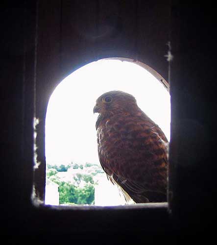 Turmfalke an der Marienkirche gerettet In einer kurz entschlossenen Aktion wurde am Montag früh an der Marienkirche ein junger Turmfalke gerettet. Angesichts eines ungeeigneten Landeplatzes neben dem Südquerhaus hatte er den Kontakt zu den Eltern verloren. Die trauen sich wegen des regen Personenverkehrs um die Marienkirche nicht zur Fütterung an ihren Sprössling heran. Schon seit Jahren gibt es dieses Problem, das zum Tod vieler Jungvögel führt. Zu seiner Bergung wurde der als artenschutzrechtlicher Begleiter der Bauarbeiten beauftragte Bern Thielke aus Steffenshagen geholt. Er hat den Jungvogel vorsichtig eingefangen und in einen vergitterten Plasikbehälter gesetzt. Der Turmfalke ließ alles ruhig über sich ergehen. Per Bauaufzug trat er seine Reise in die Höhe an und kehrte im Dach des Südquerhauses in seinen Falkenkasten zurück. Einmal angekommen blieb er ruhig sitzen und betrachtete seine Retter eingehend. Er ist eines von drei Jungen eines auf St. Marien ansässigen Turmfalkenpaares. Die im Zuge der Bauarbeiten angebrachten Falkenkästen bieten den Vögeln ein sicheres Rückzugsgebiet hoch über den Dächern der Stadt. |