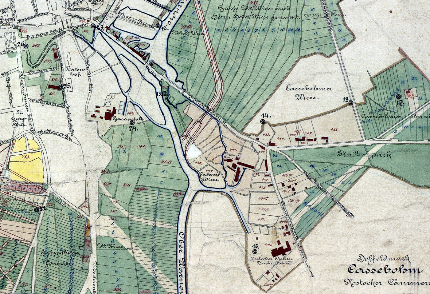 Der Marien-Ziegelhof auf einer Karte von 1885 (Archiv der Hansestadt Rostock)
