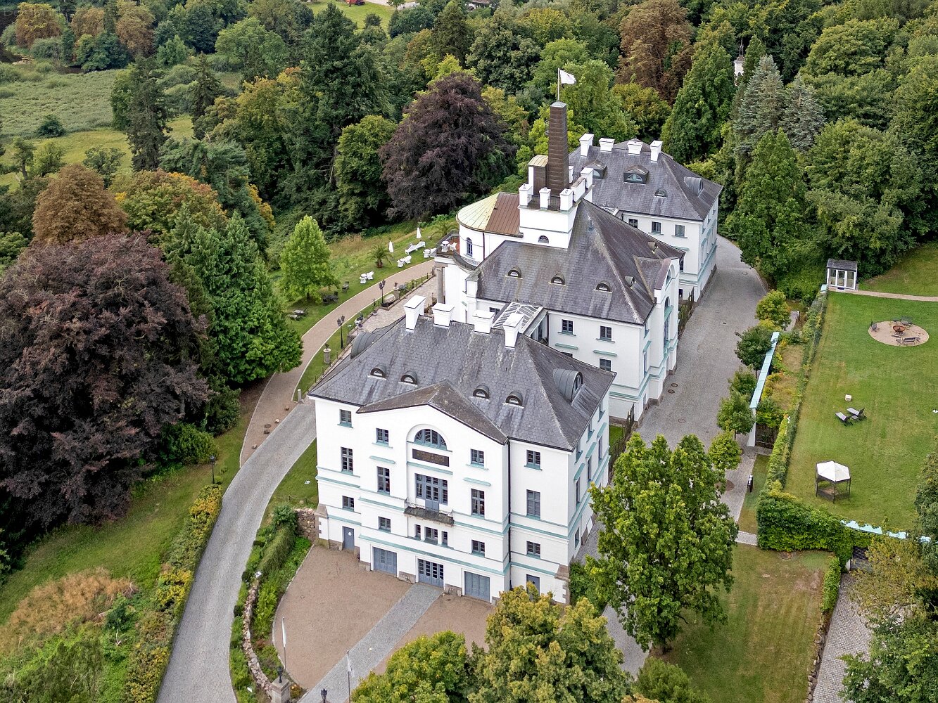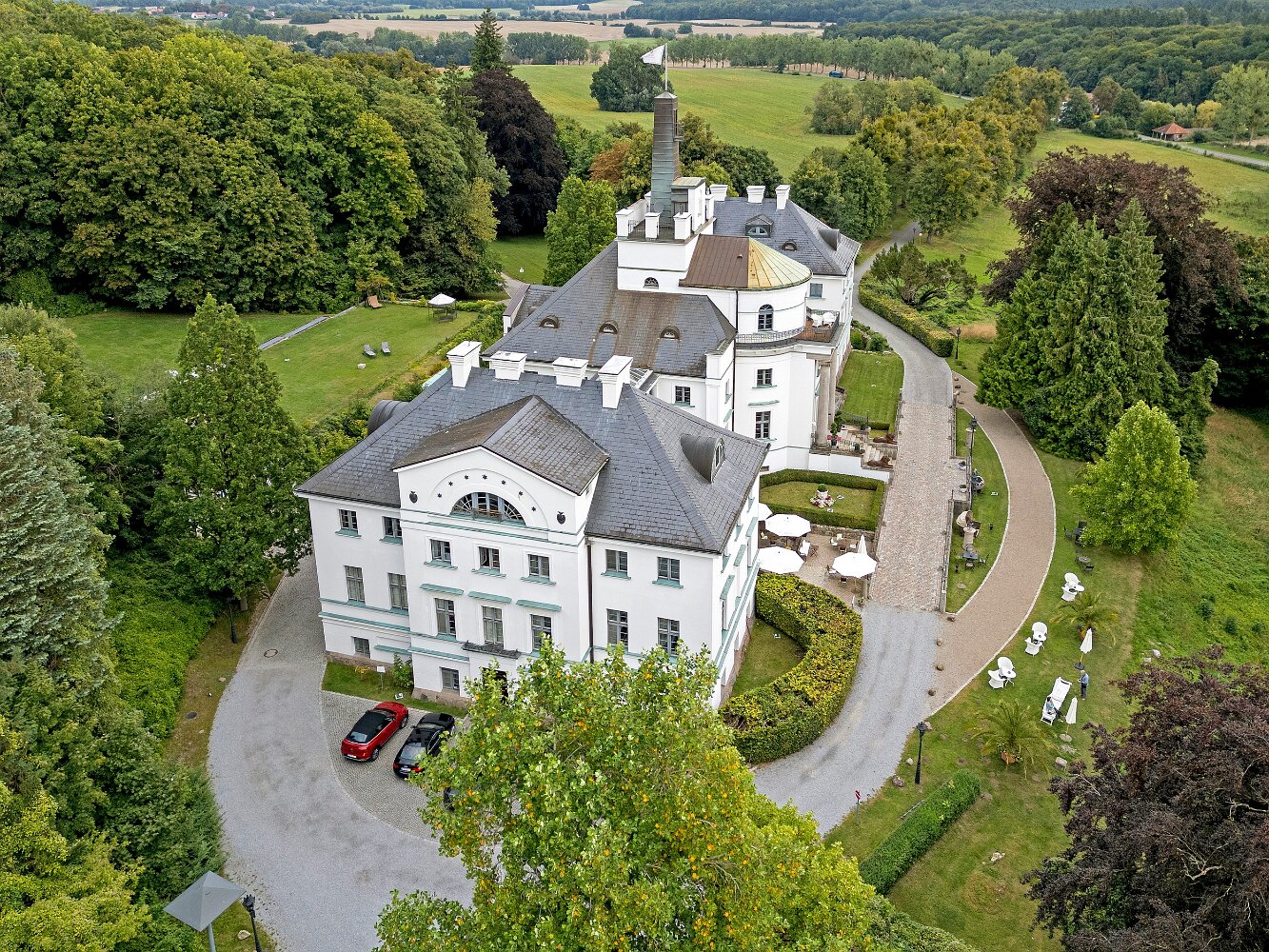 Drohnenaufnahmen des Schlosshotels Burg Schlitz und des Marstalls