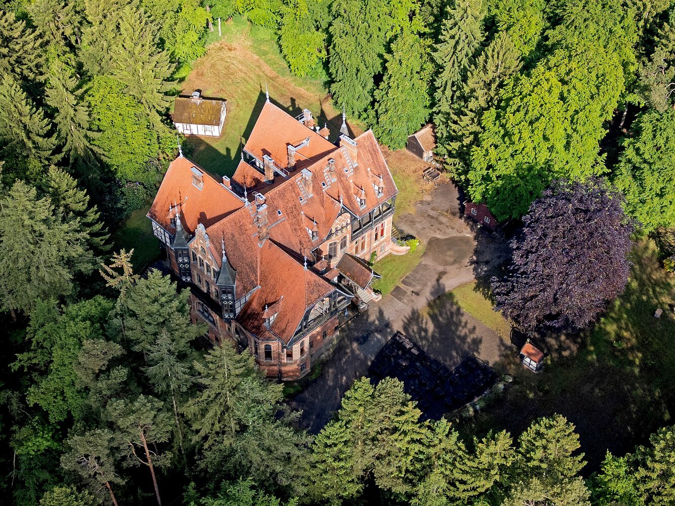 Das Jagdschloss in Gelbensande auch mit Drohnenaufnahmen