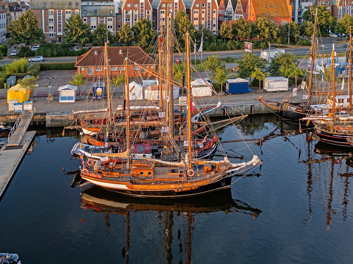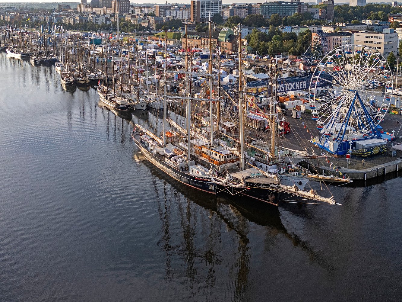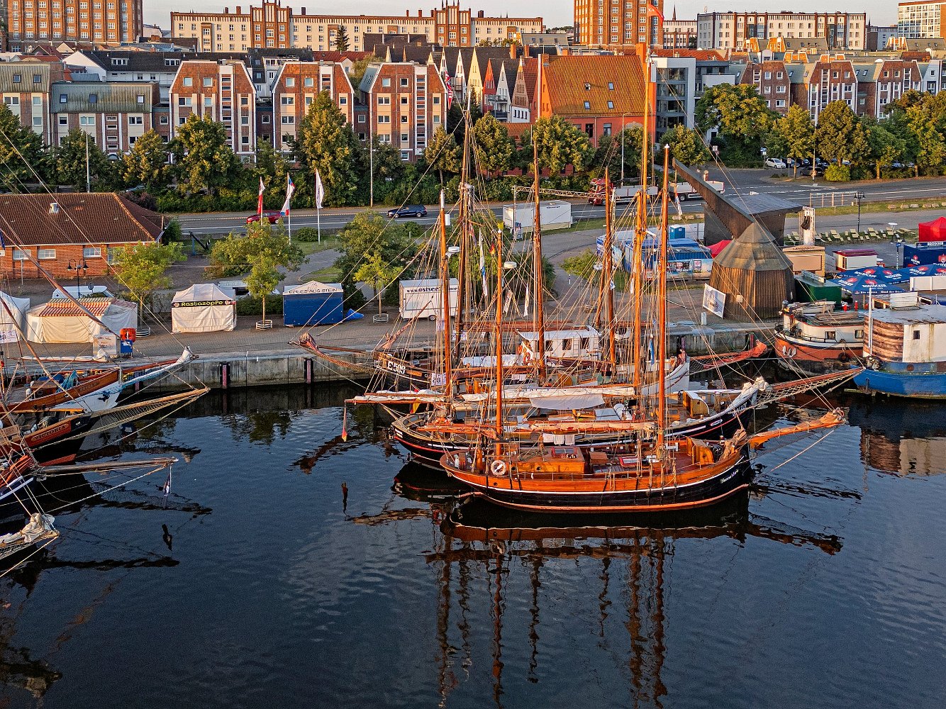 Die "schlafende Hanse Sail" zwischen 6 und 7.30 Uhr aus der Luft.