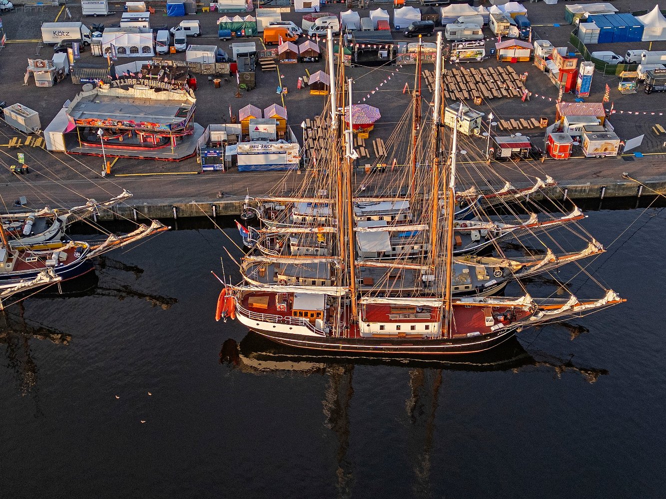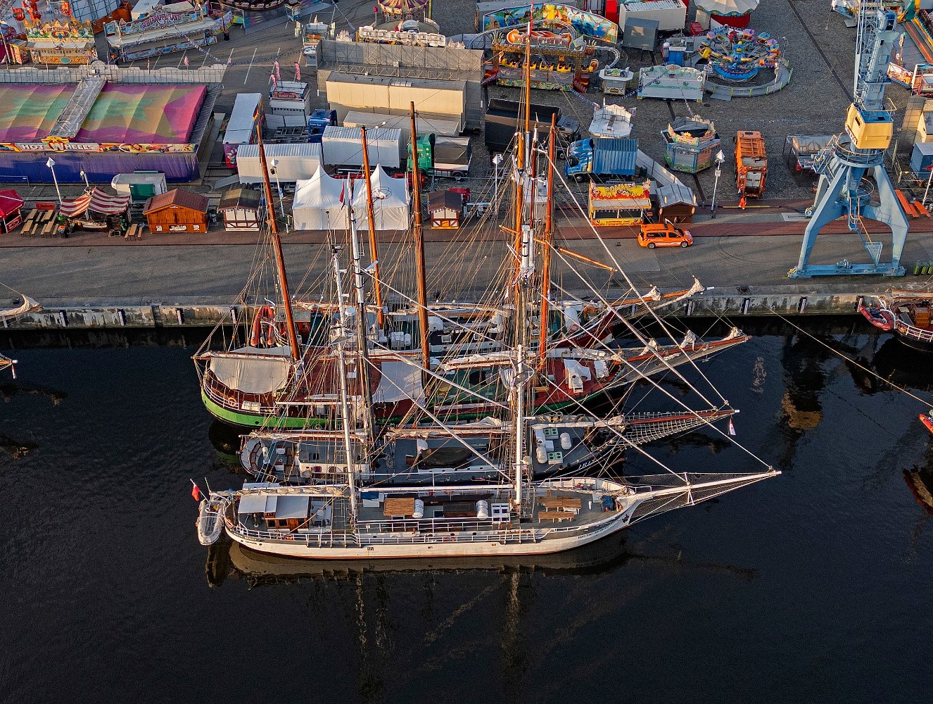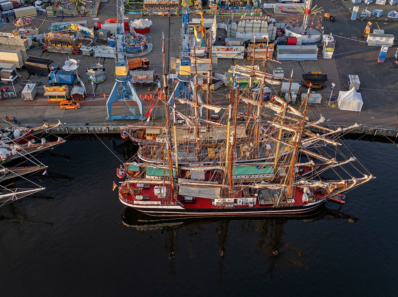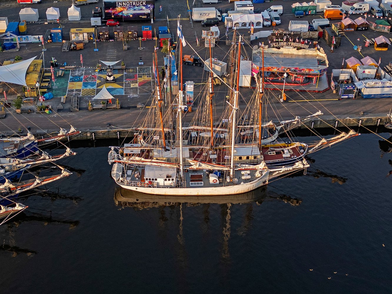 Die "schlafende Hanse Sail" zwischen 6 und 7.30 Uhr aus der Luft.