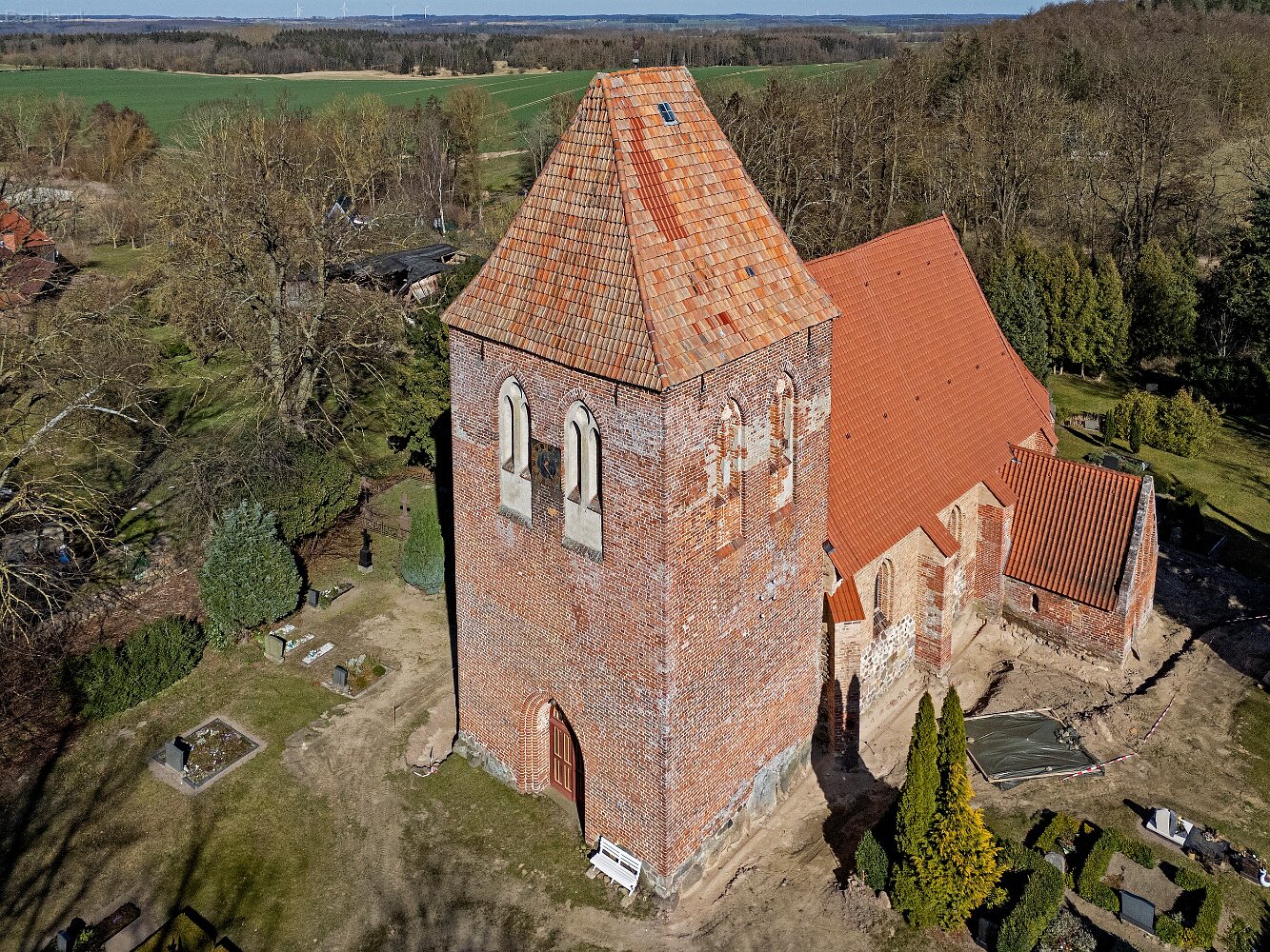Drohnenaufnahmen der Feldsteinkirche in Alt Karin