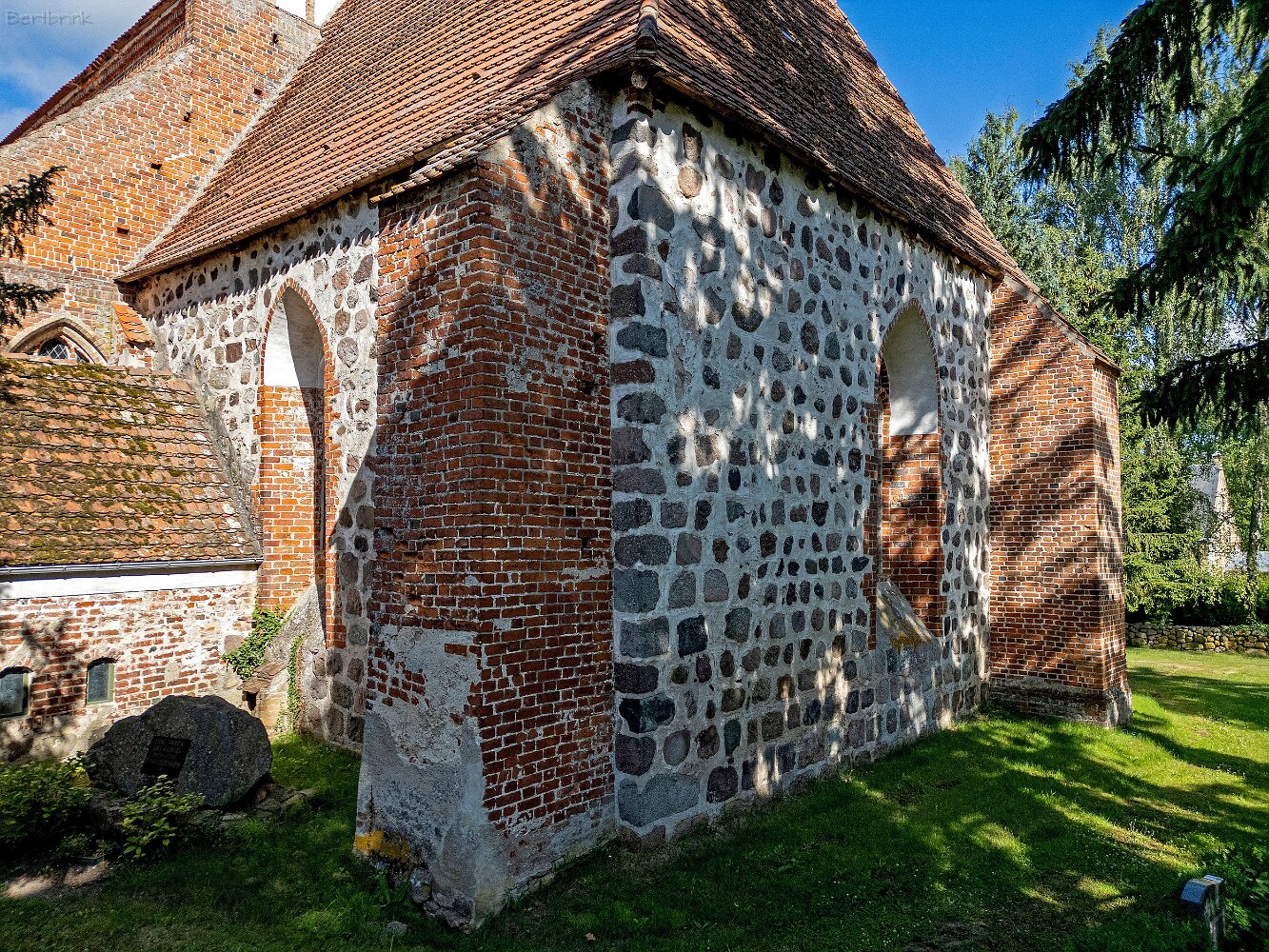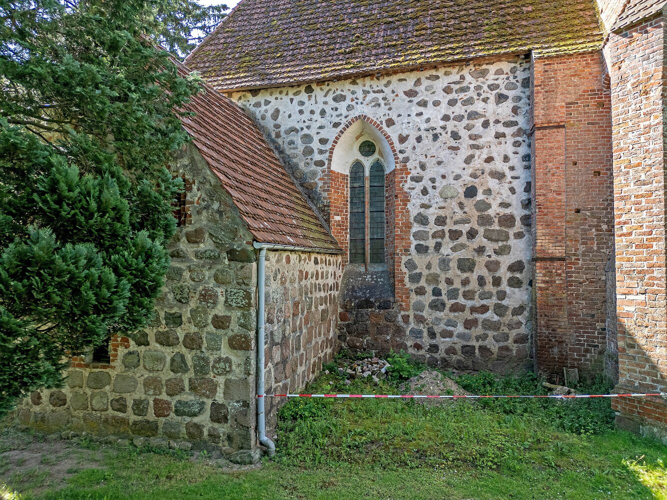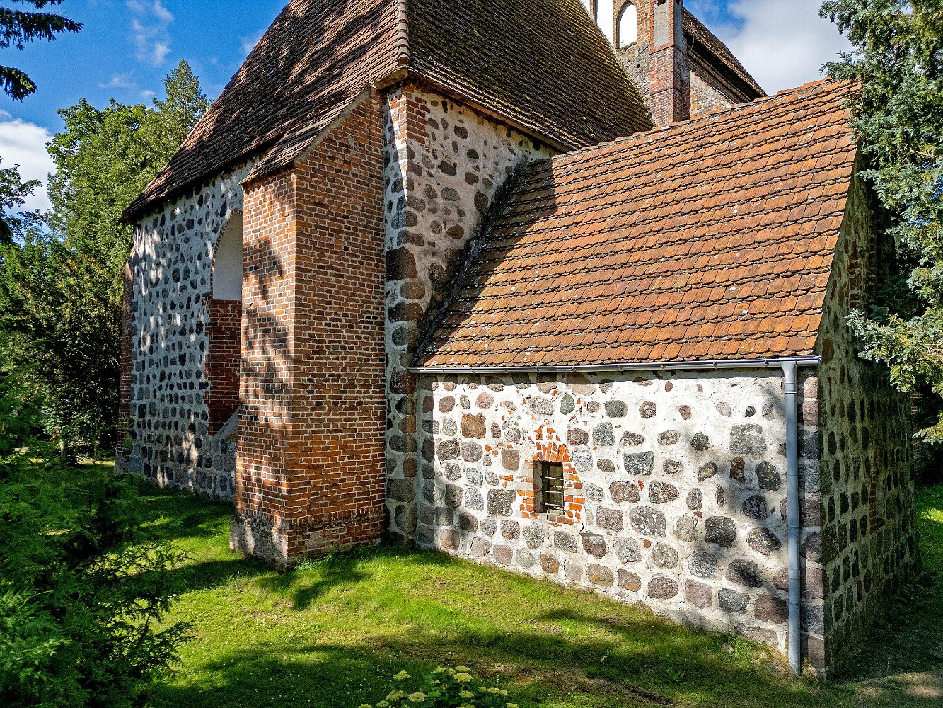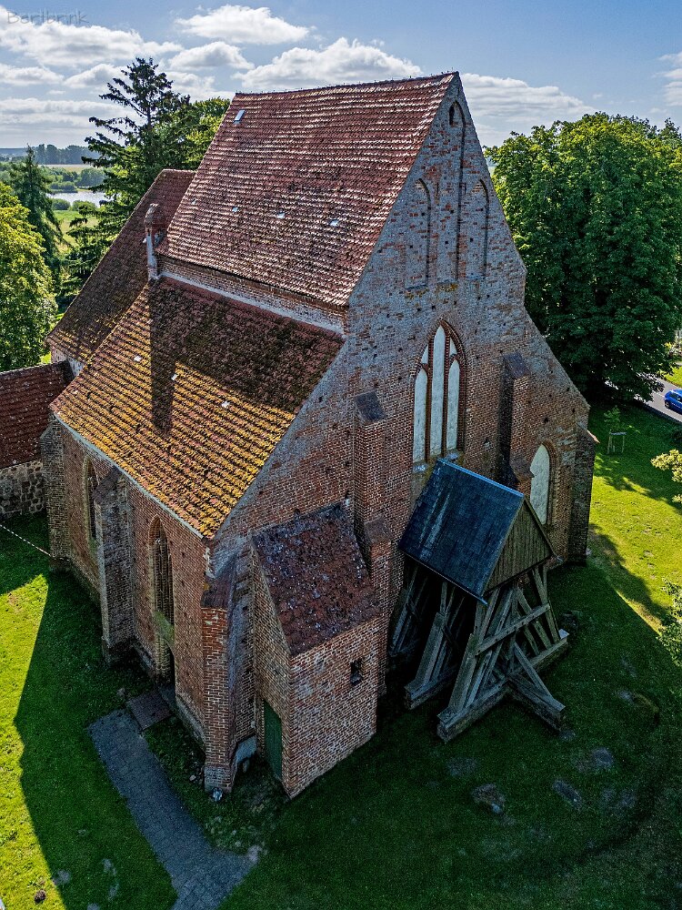 Die Feldsteinkirche in Basse auf Drohnenfotos