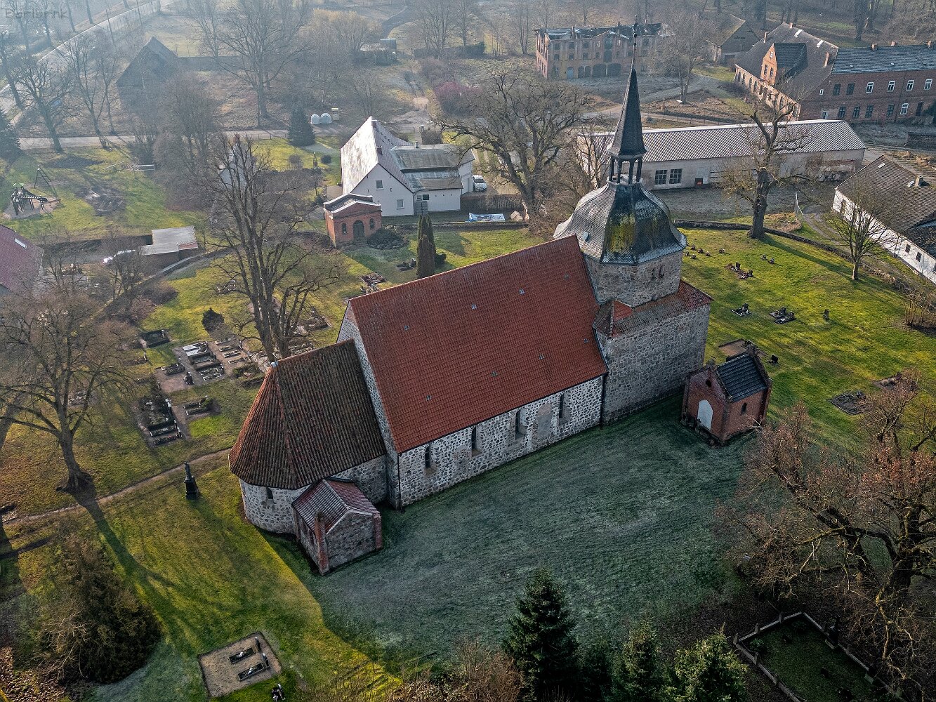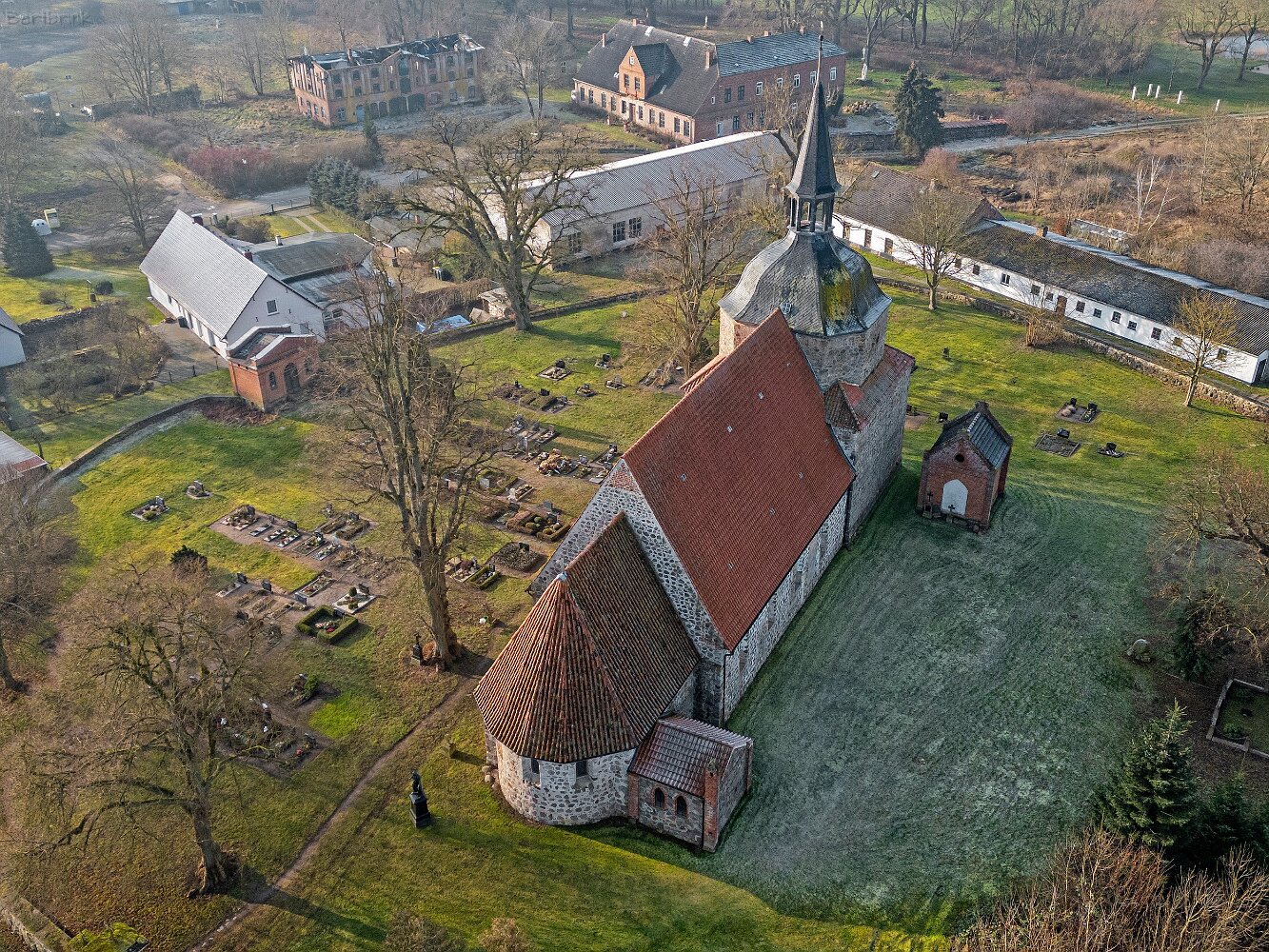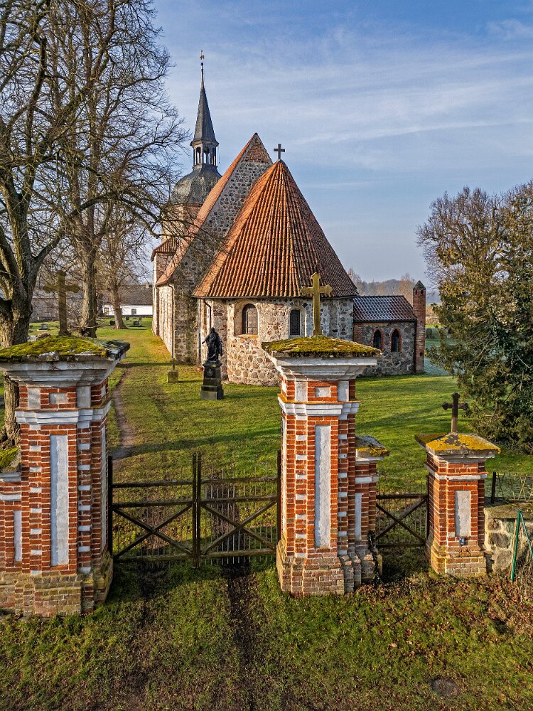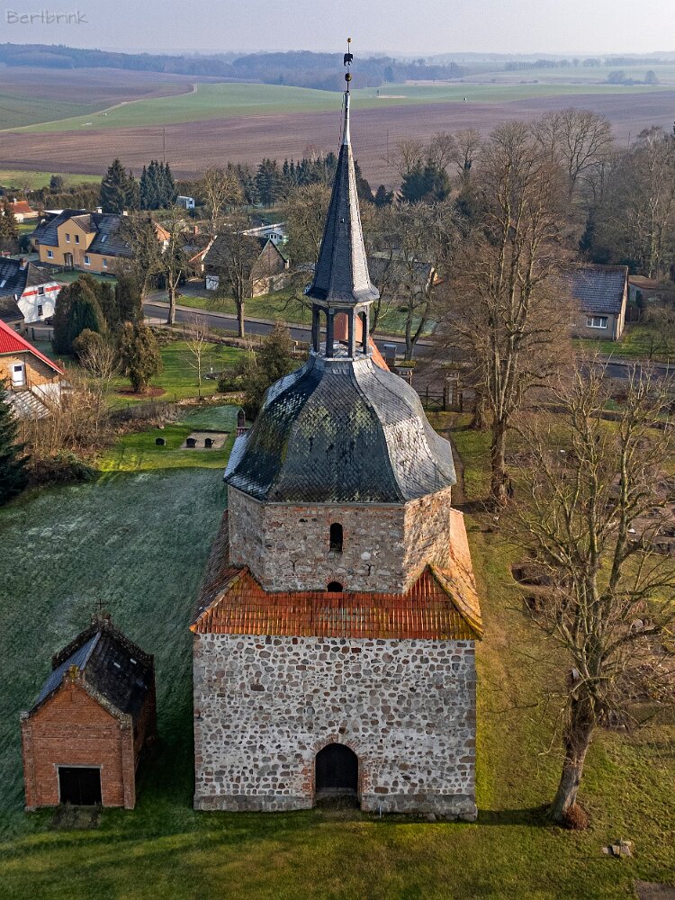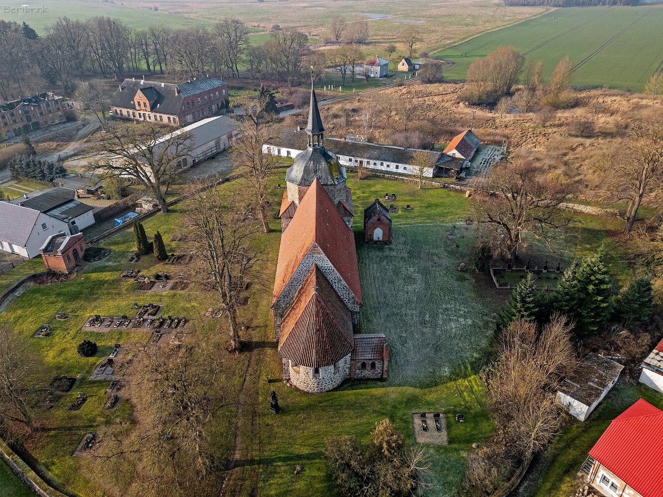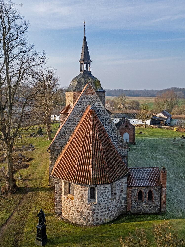Drohnenaufnahmen der Feldsteinkirche in Behren-Lübchin