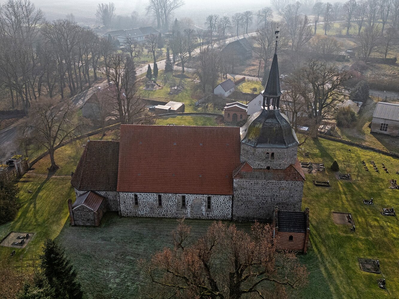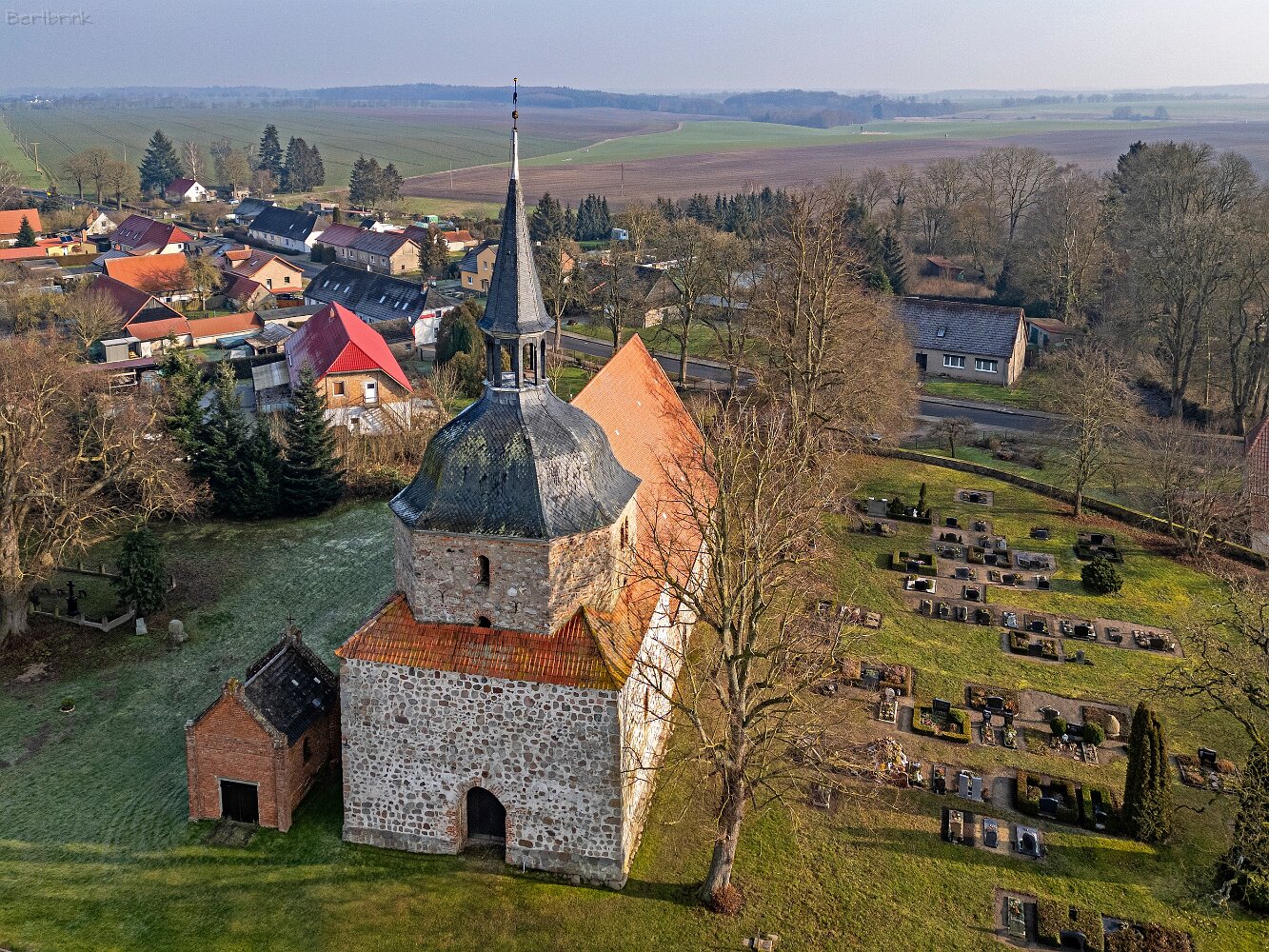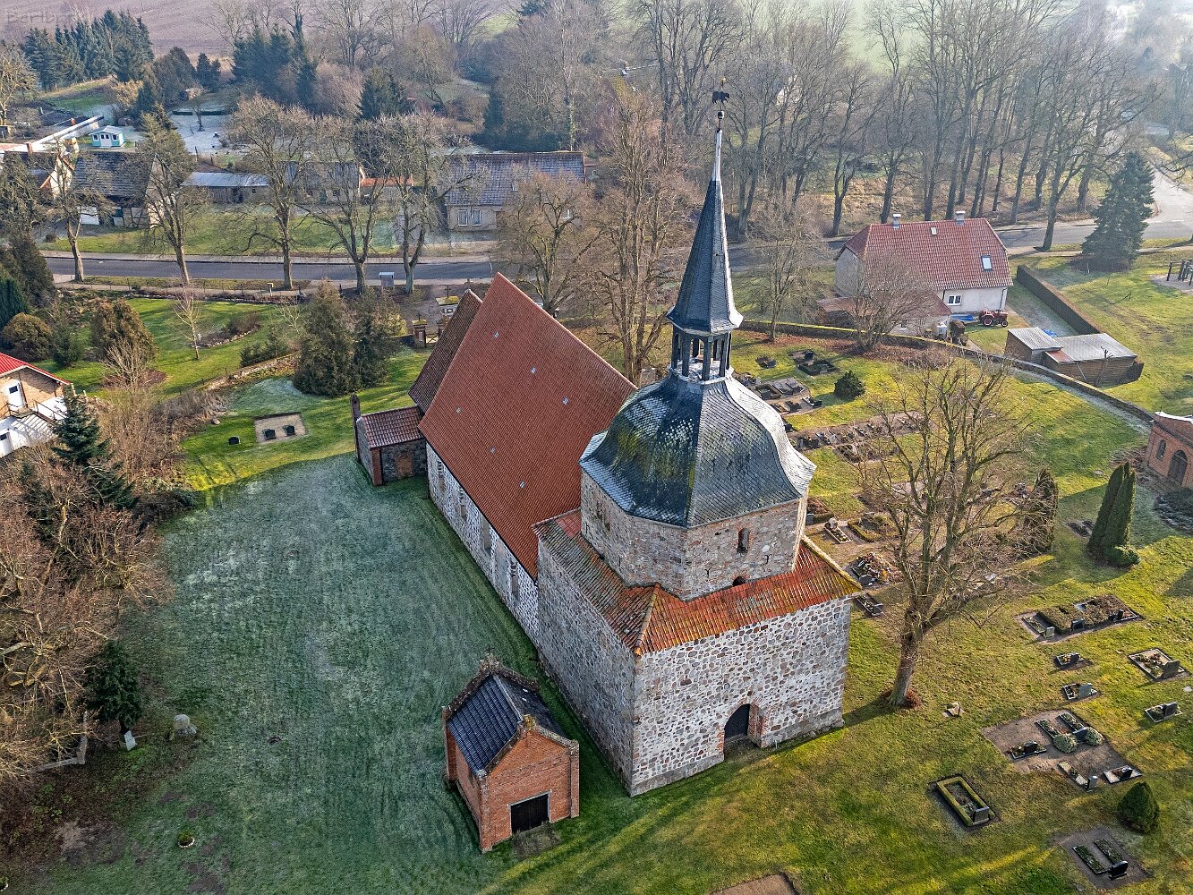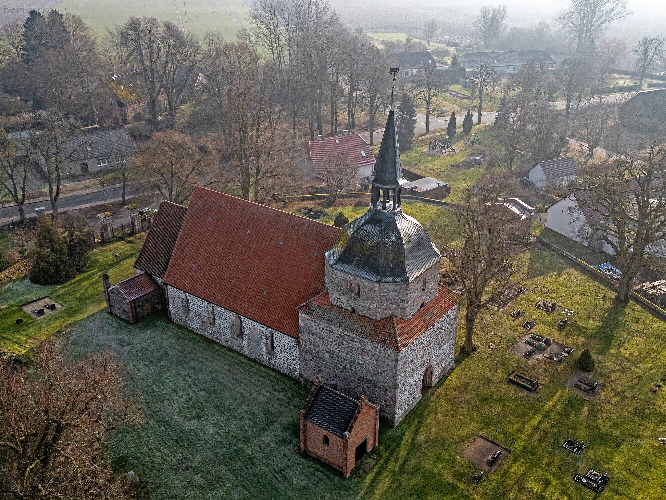 Drohnenaufnahmen der Feldsteinkirche in Behren-Lübchin