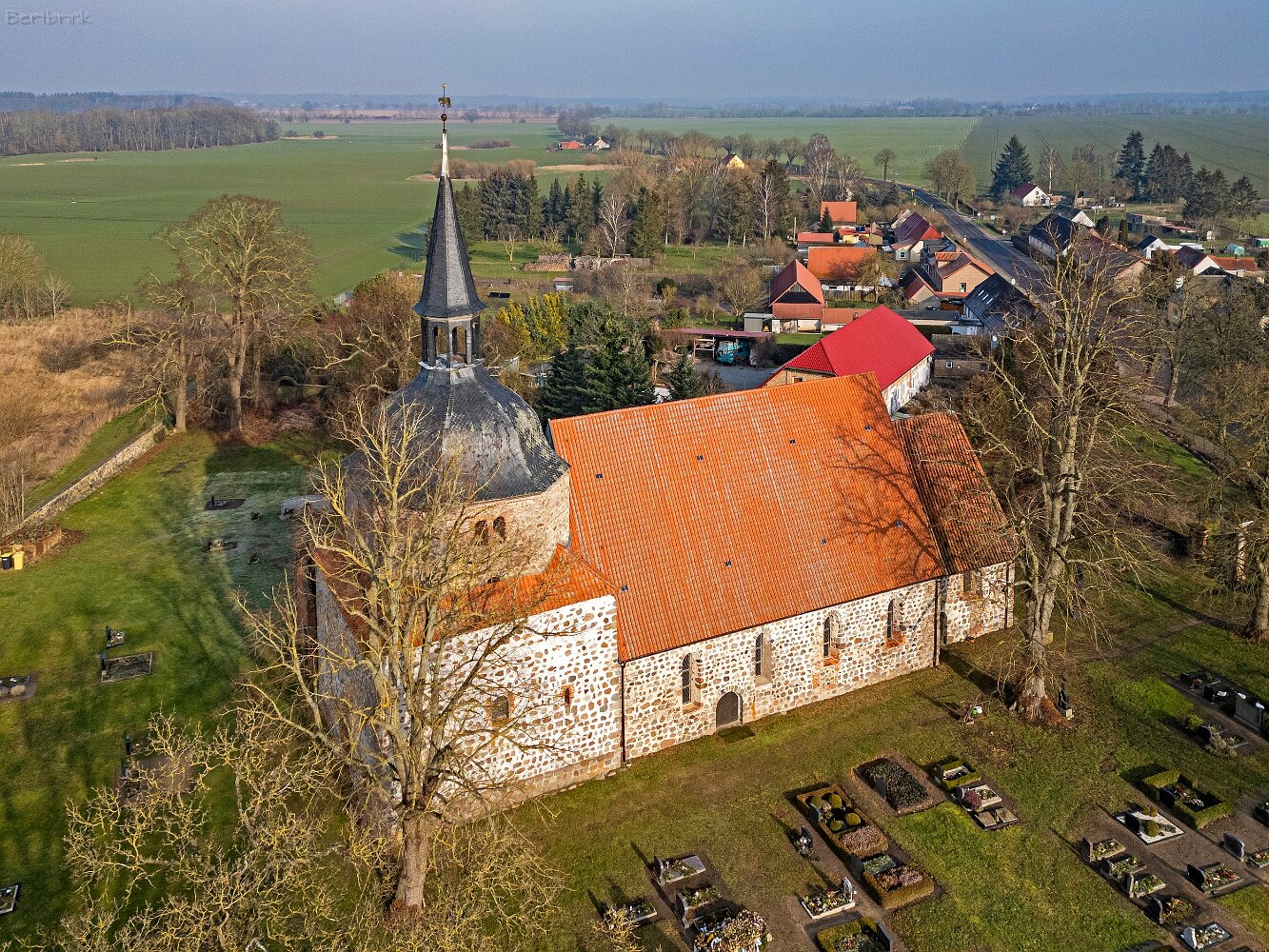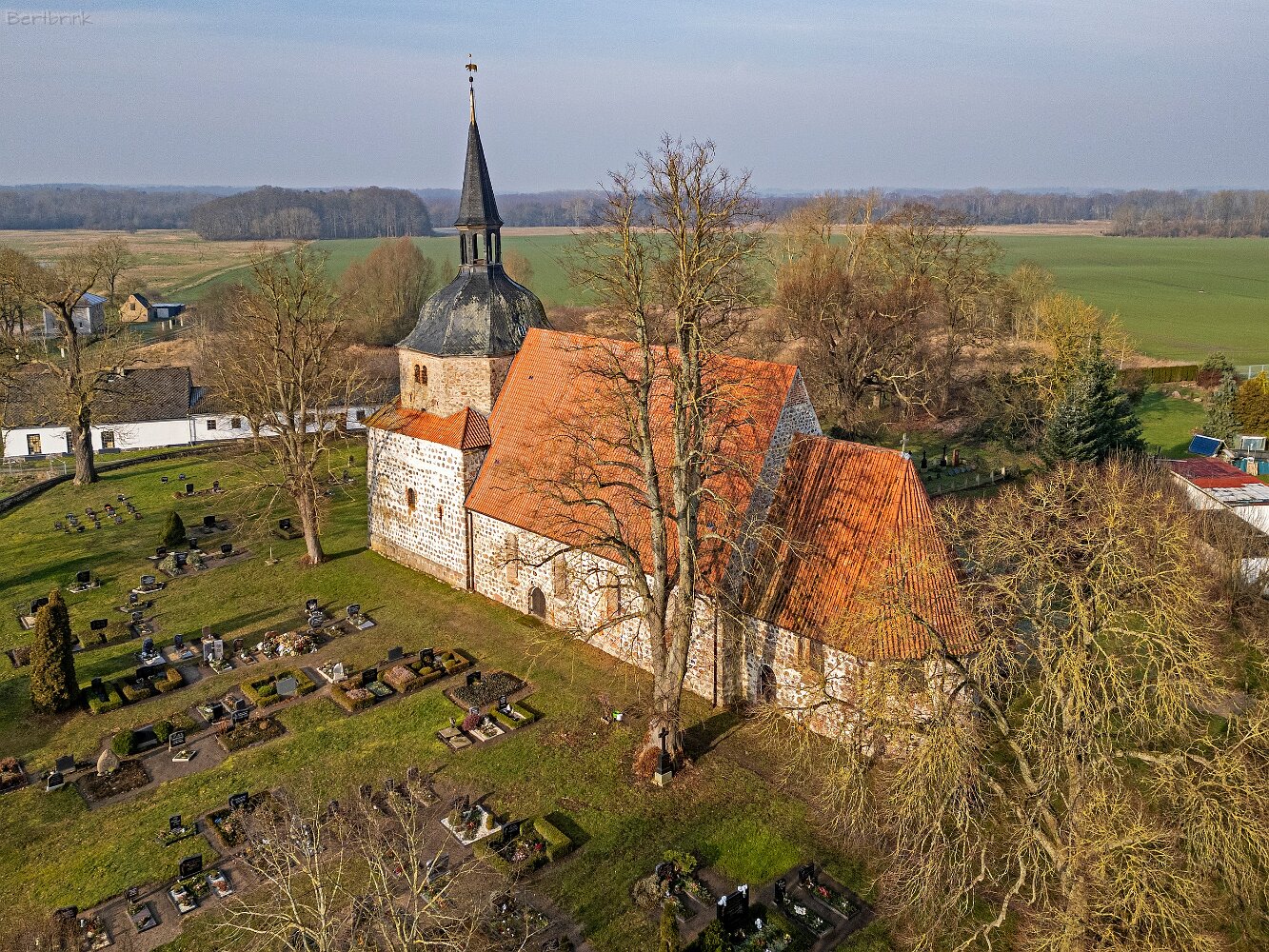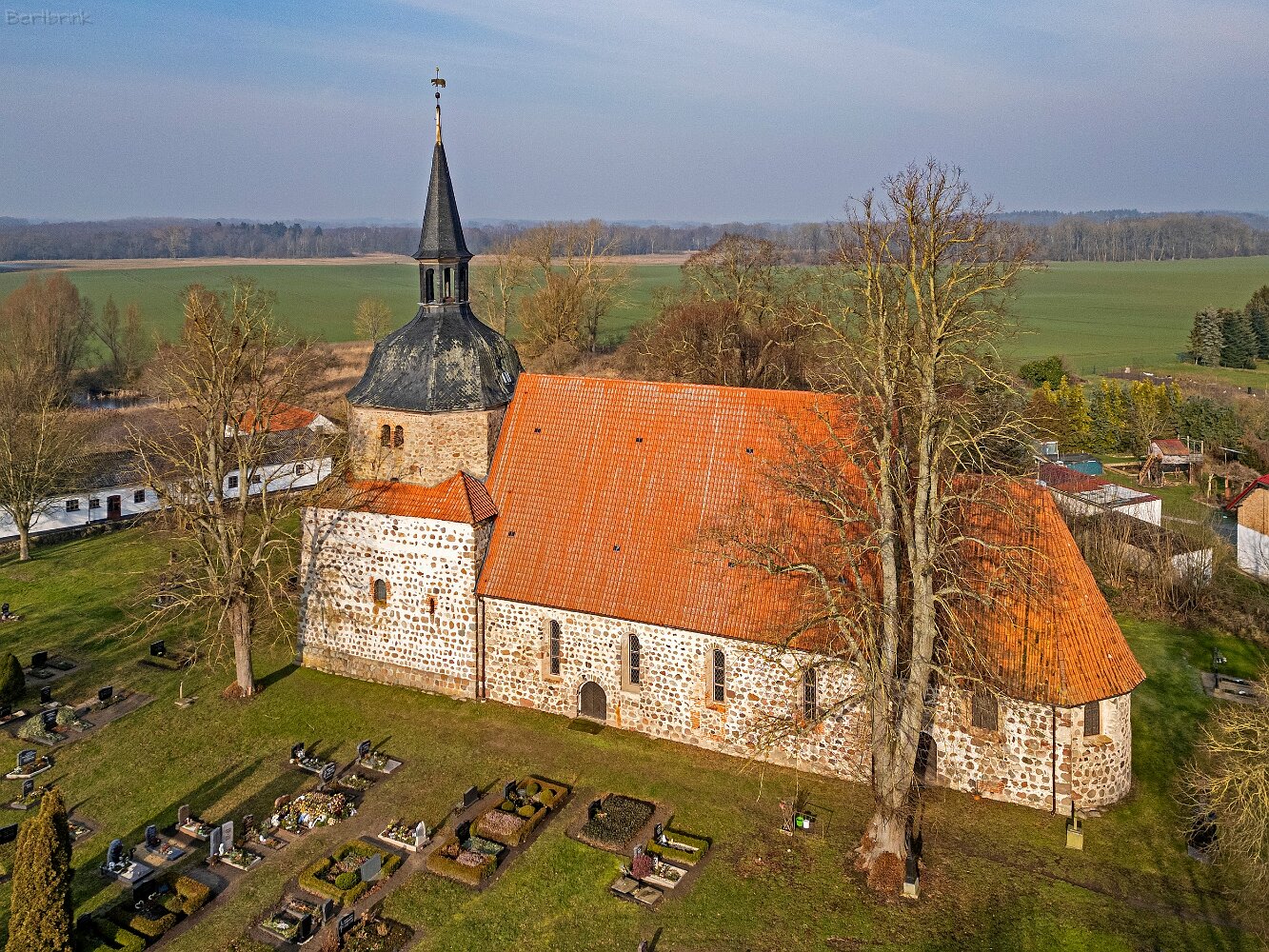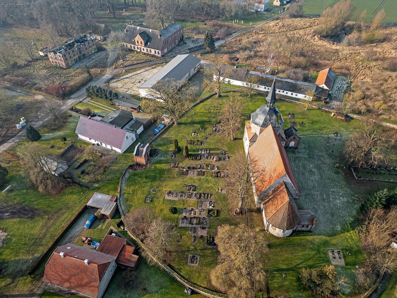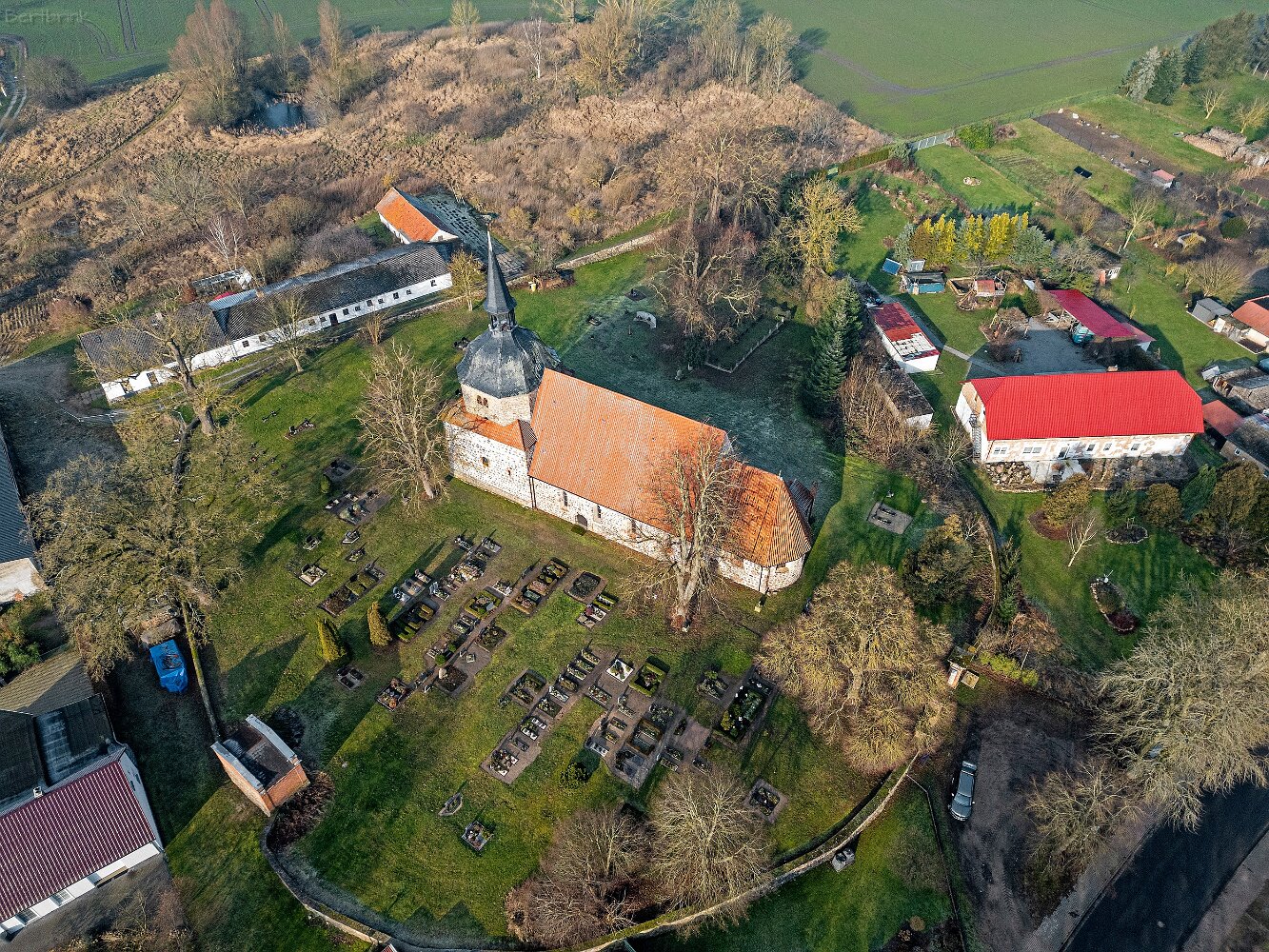 Drohnenaufnahmen der Feldsteinkirche in Behren-Lübchin