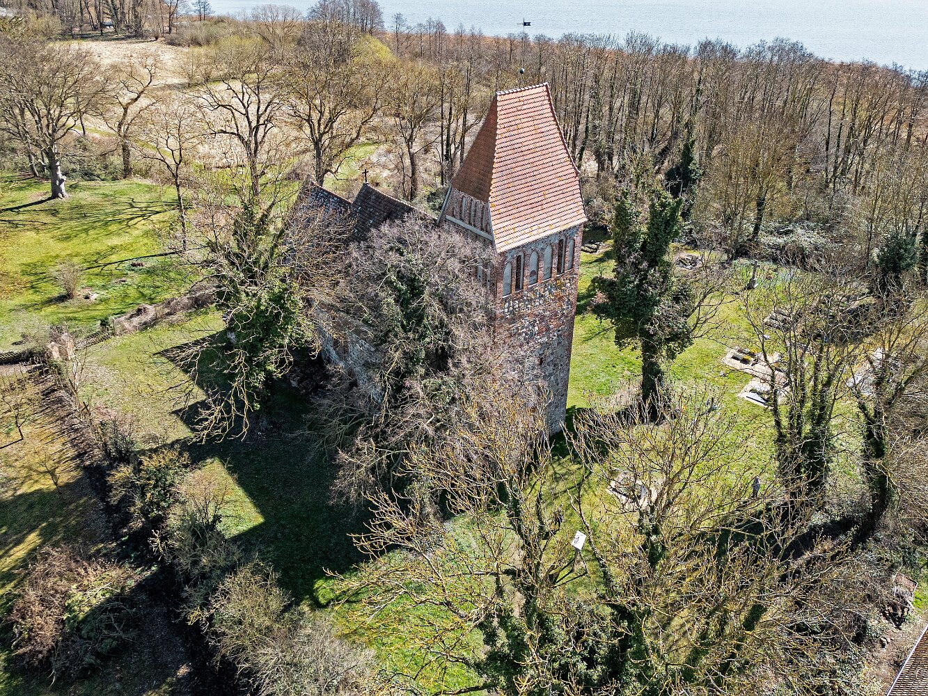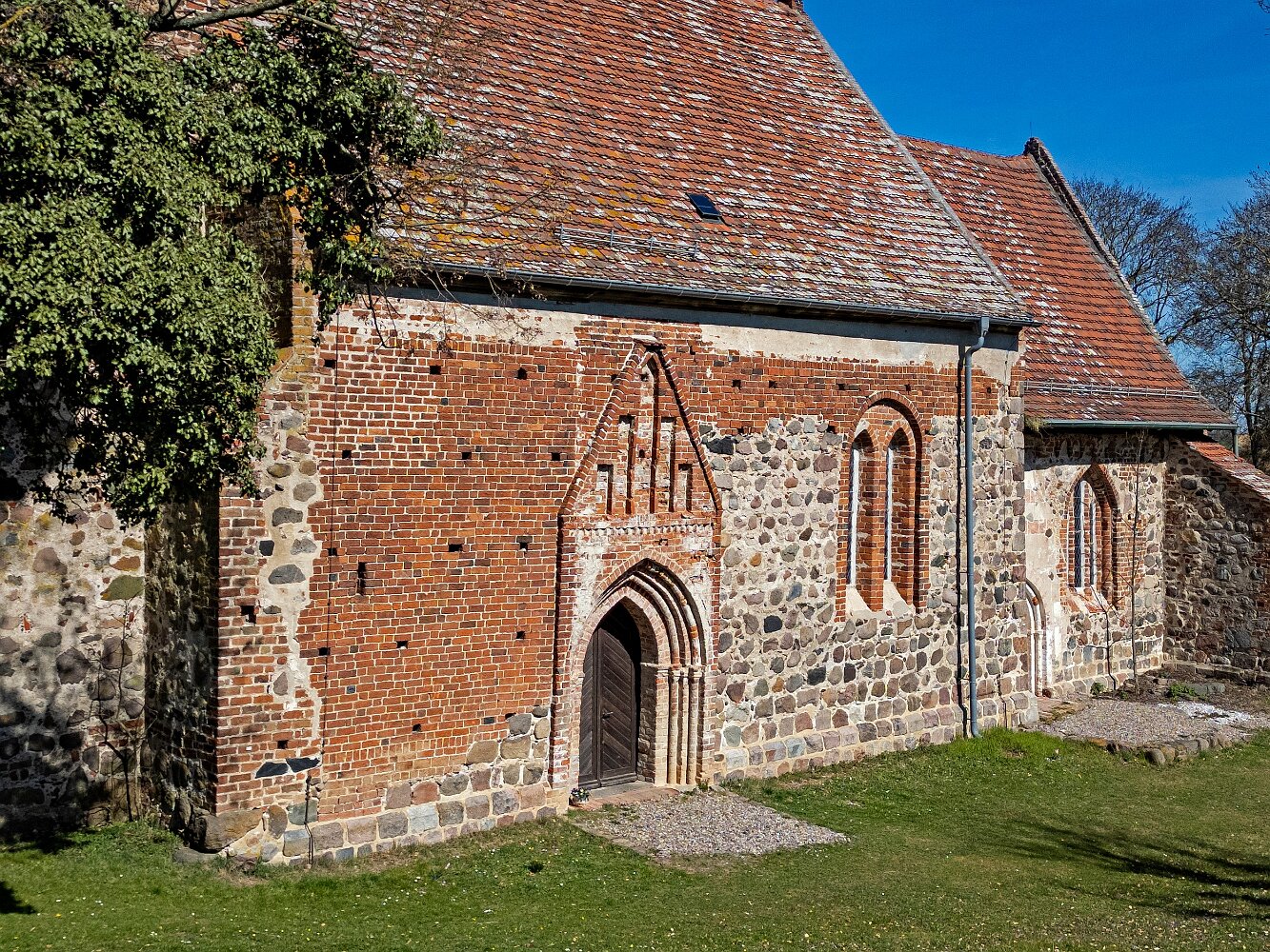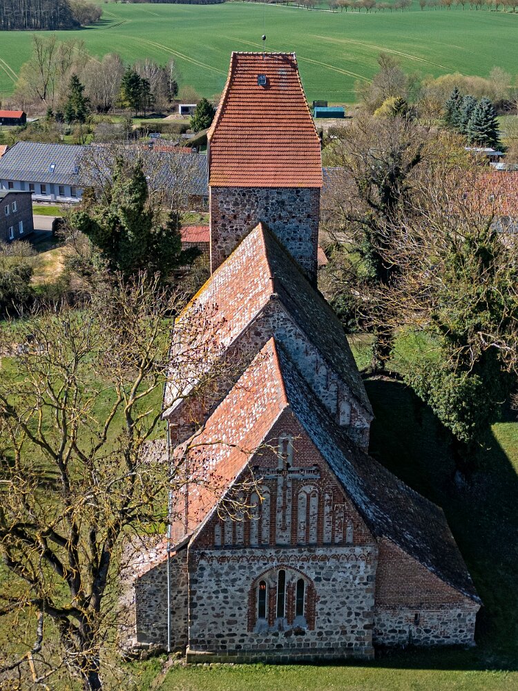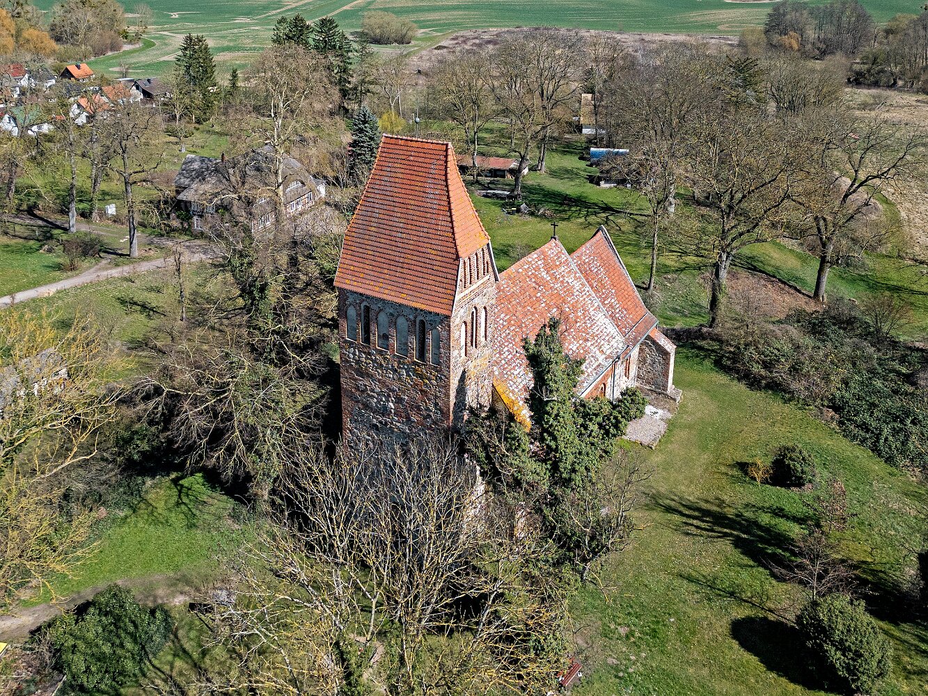 Drohenaufnahmen der Feldsteinkirche in Bülow