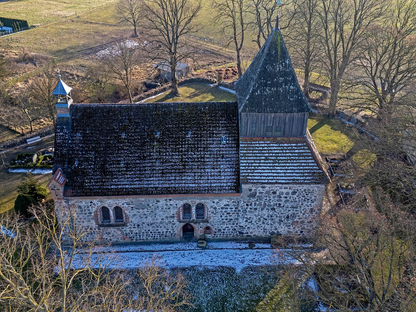 Drohnenaufnahmen der Feldsteinkirche Dänschenburg