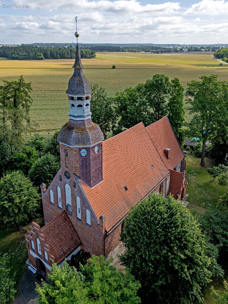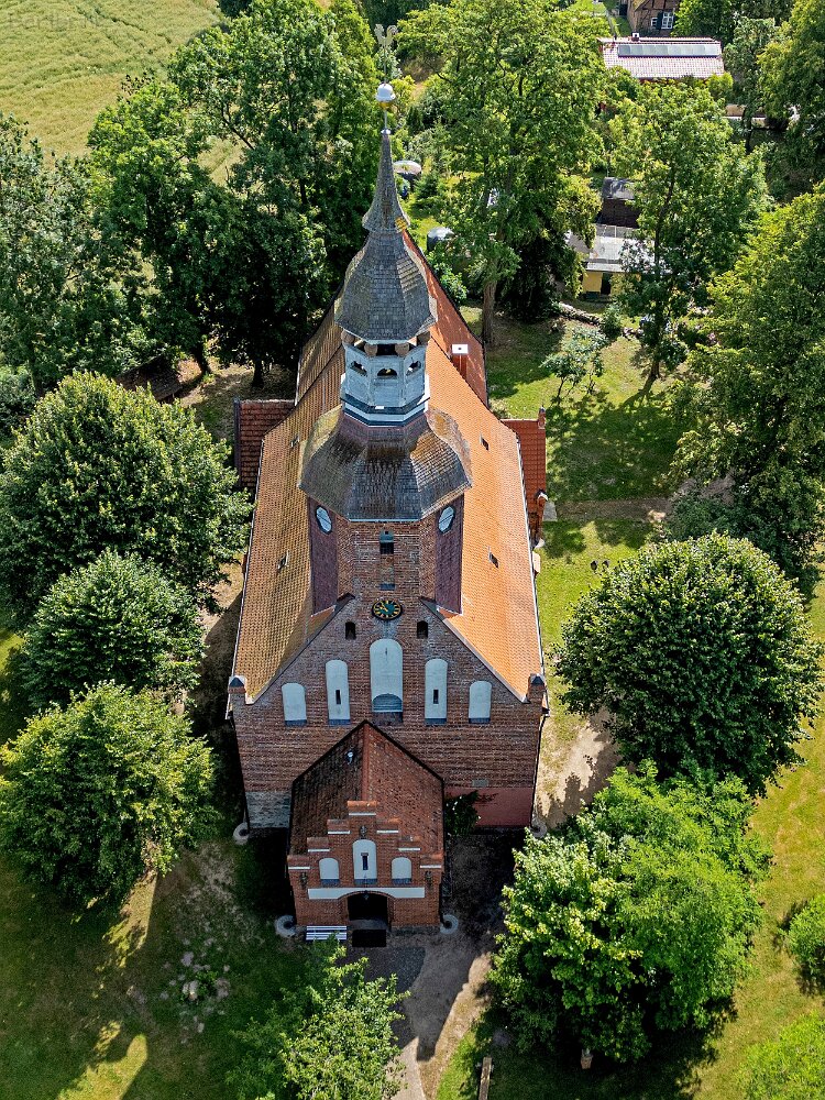 Die Feldsteinkirche Dargun auf Drohnenfotos.