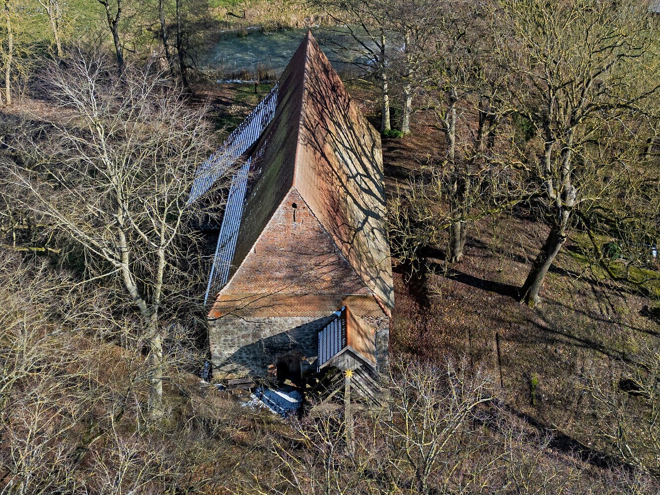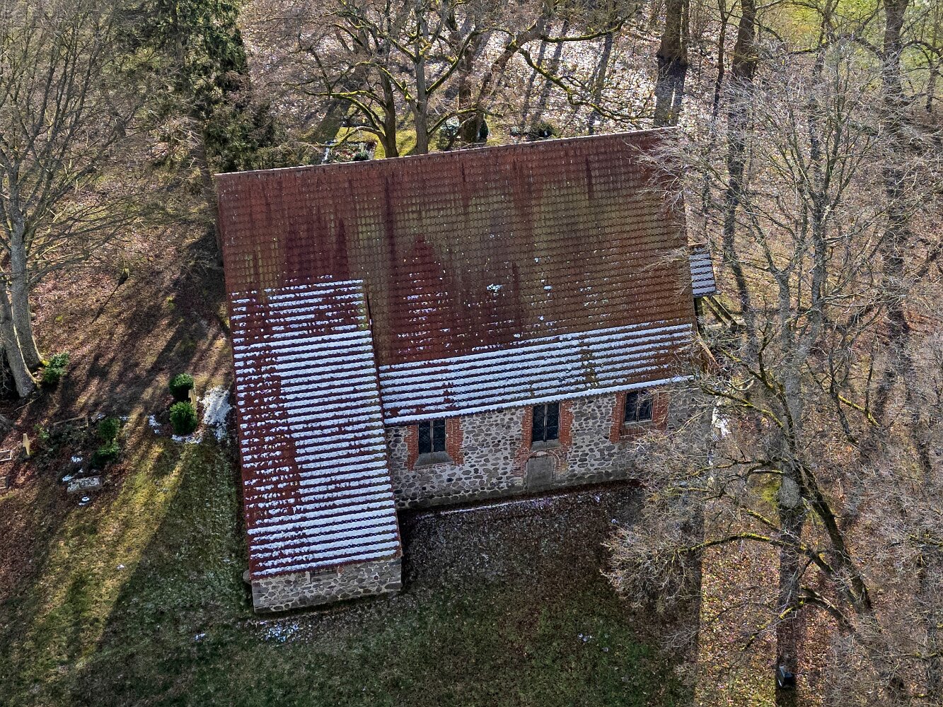 Drohnenaufnahmen der Feldsteinkirche Drechow