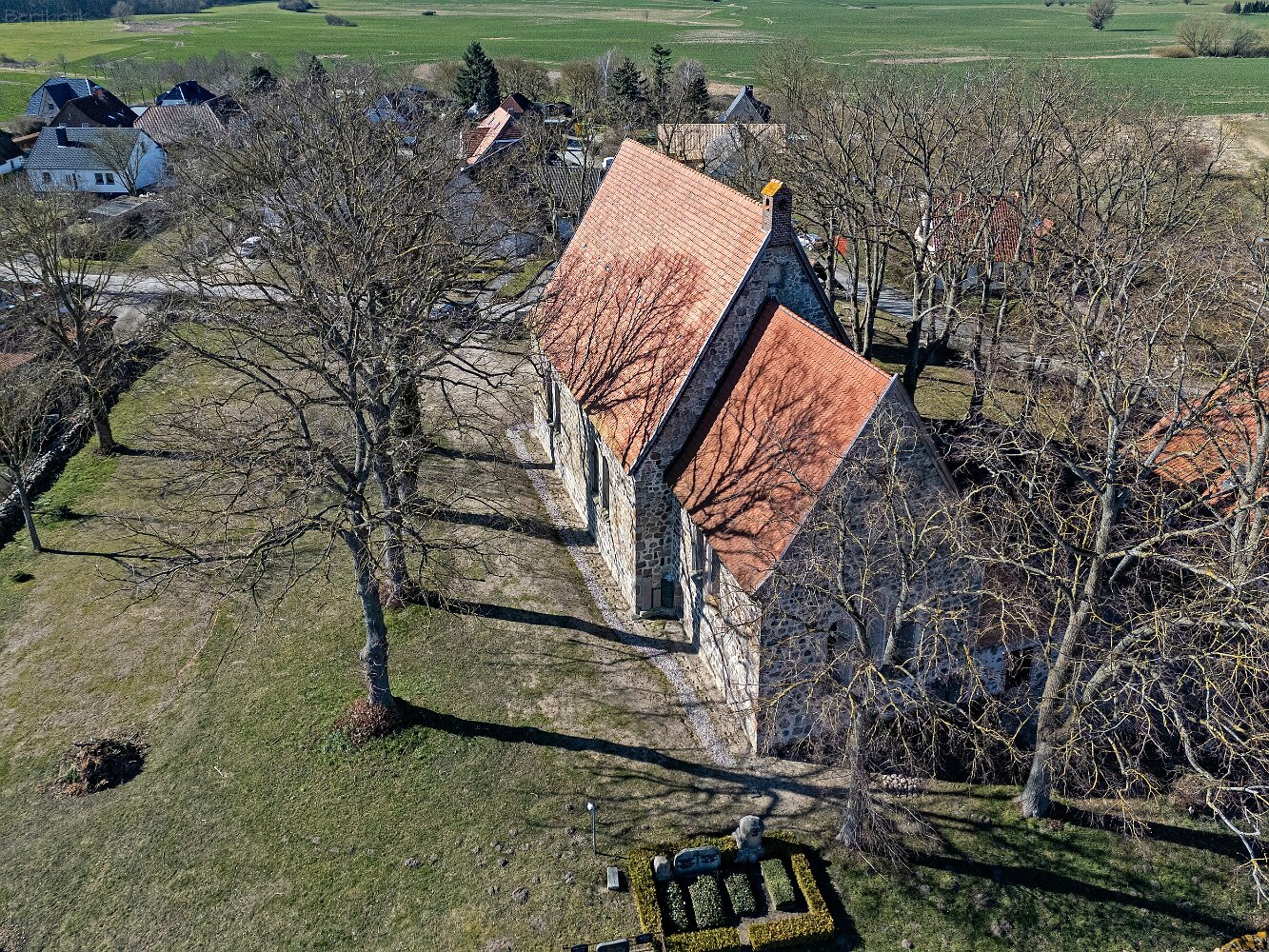 Drohnenaufnahmen der Feldsteinkirche Groß Wokern