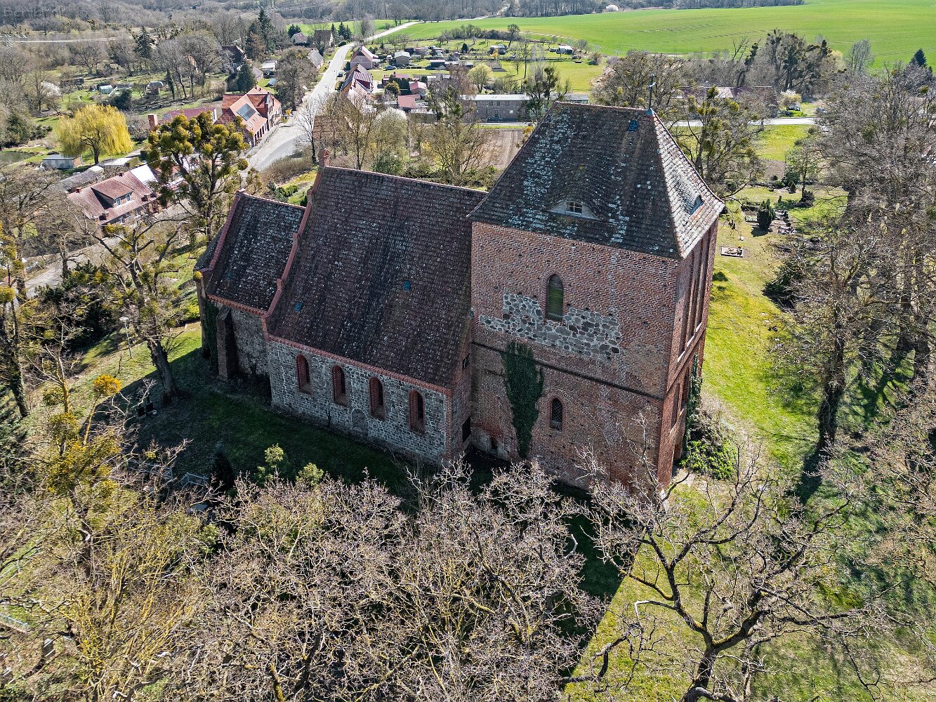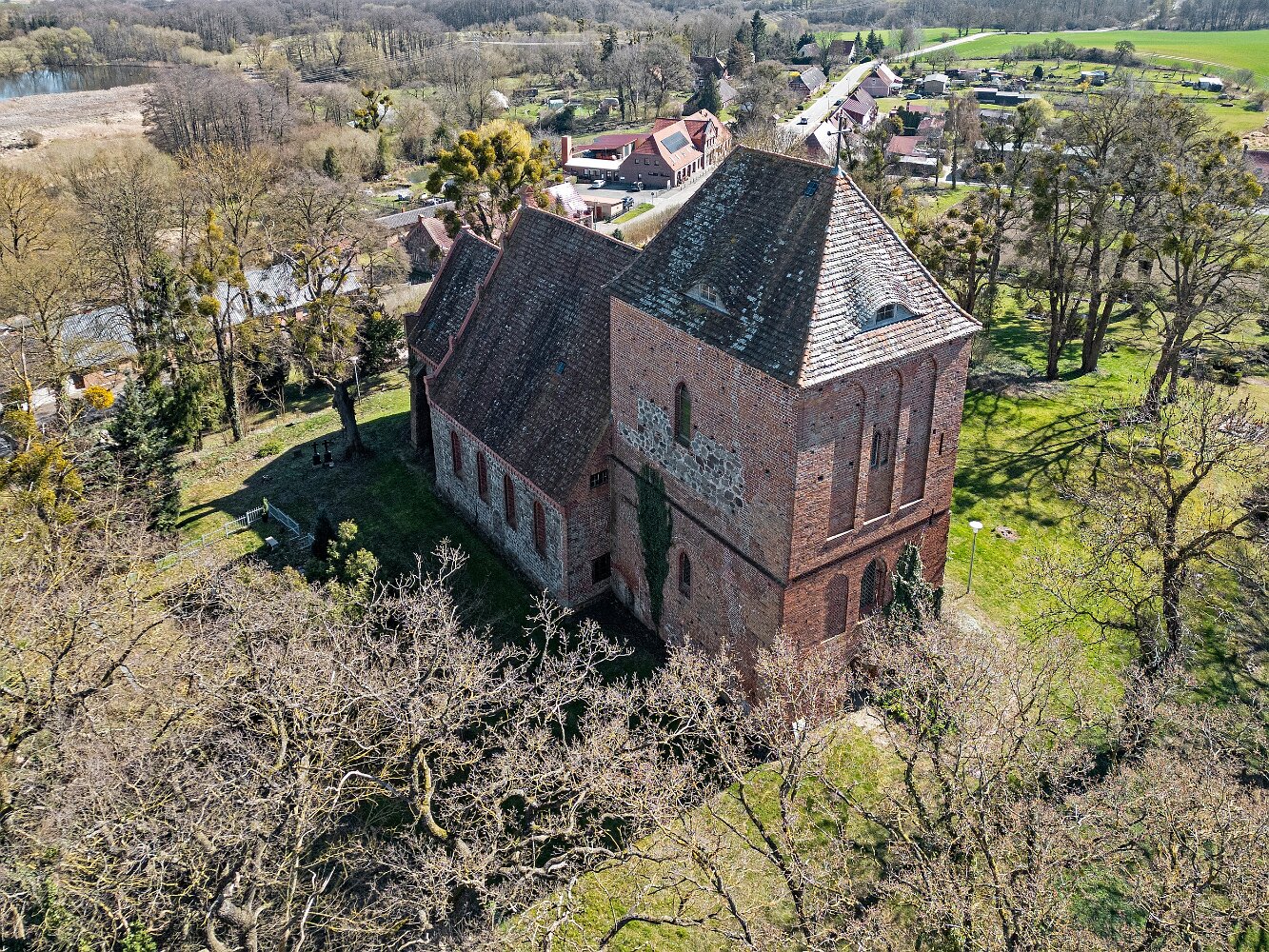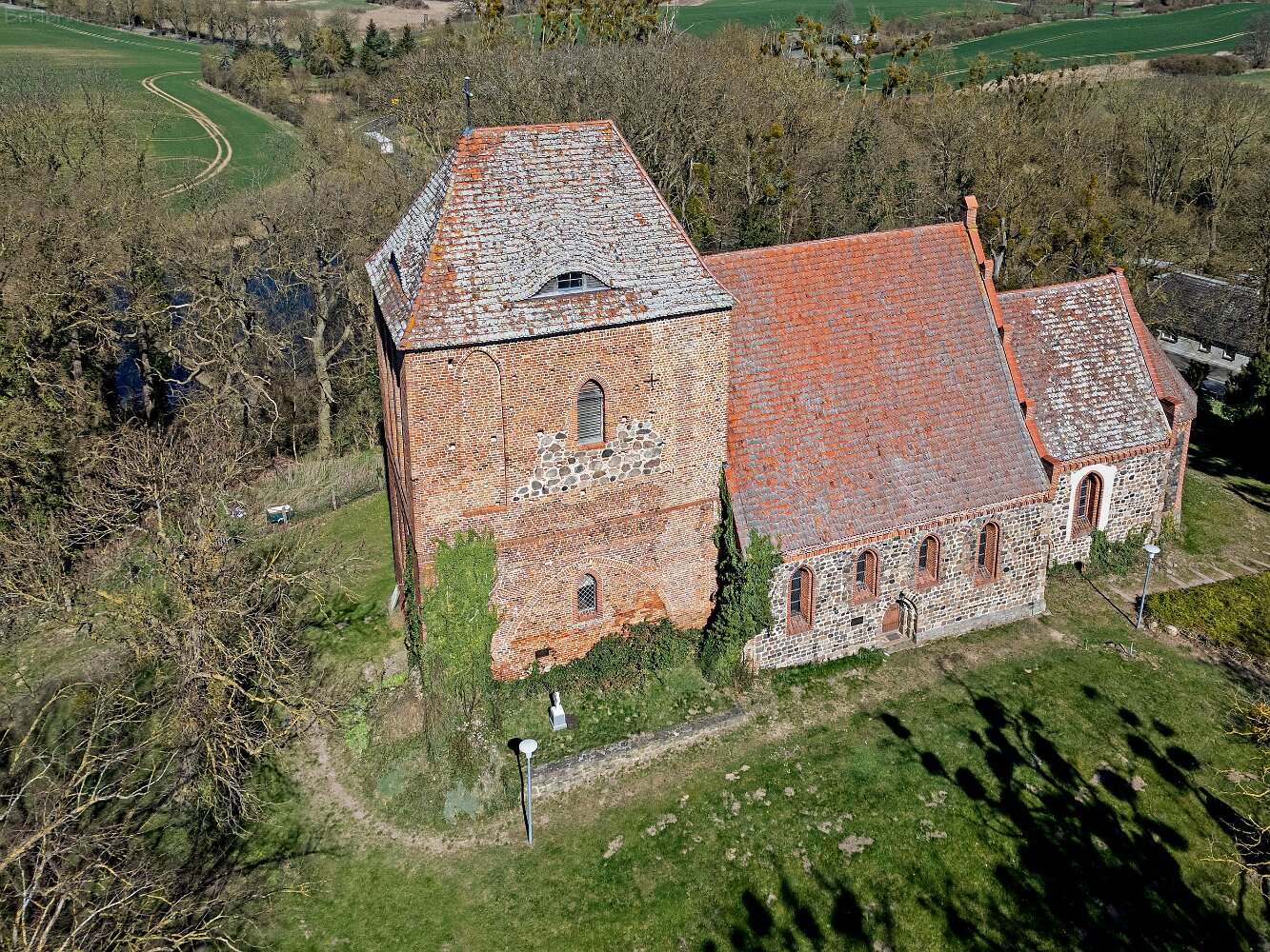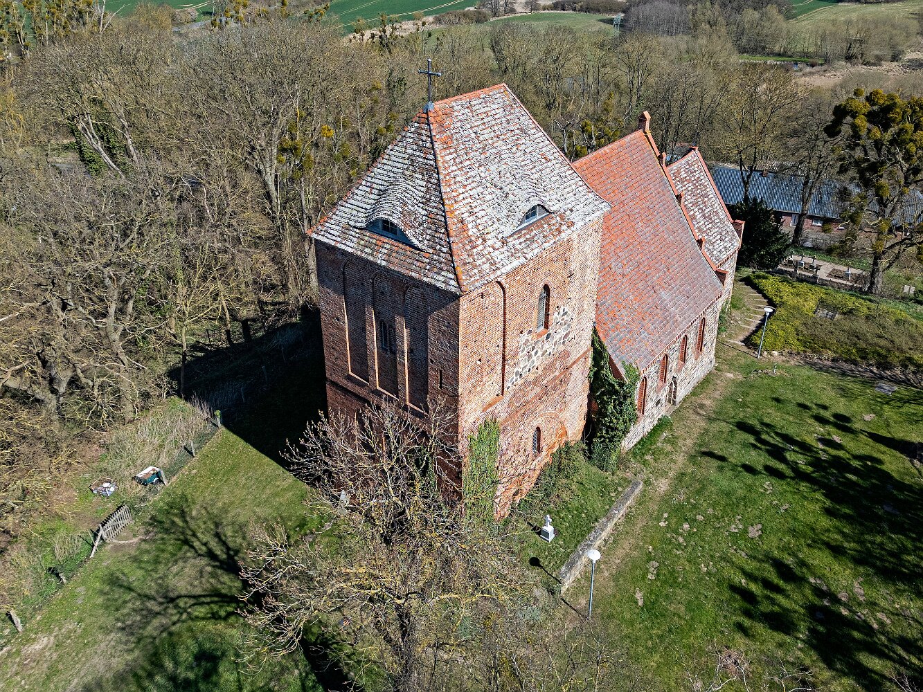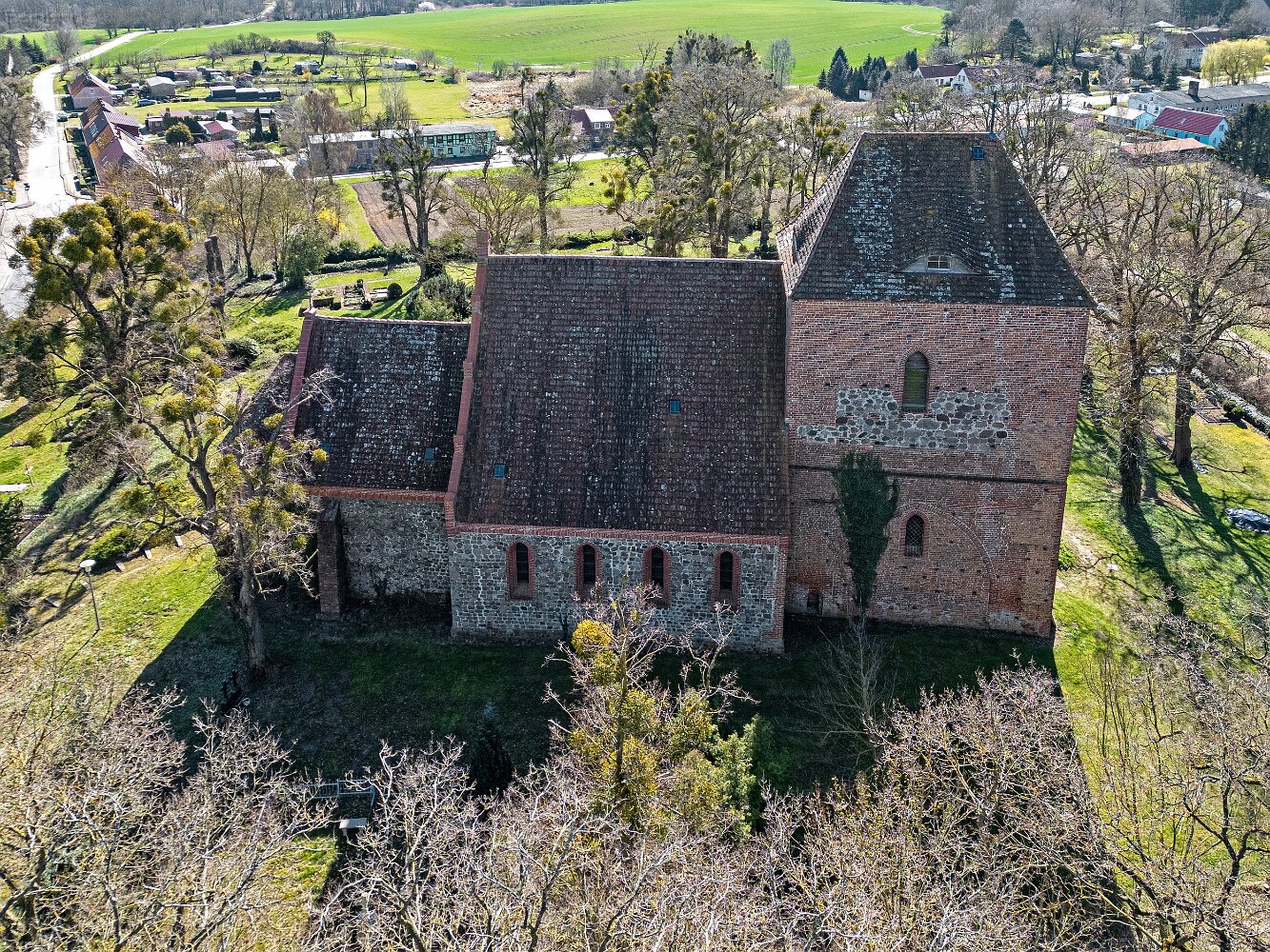 Drohnenaufnahmen der Feldsteinkirche in Kirch Grubenhagen