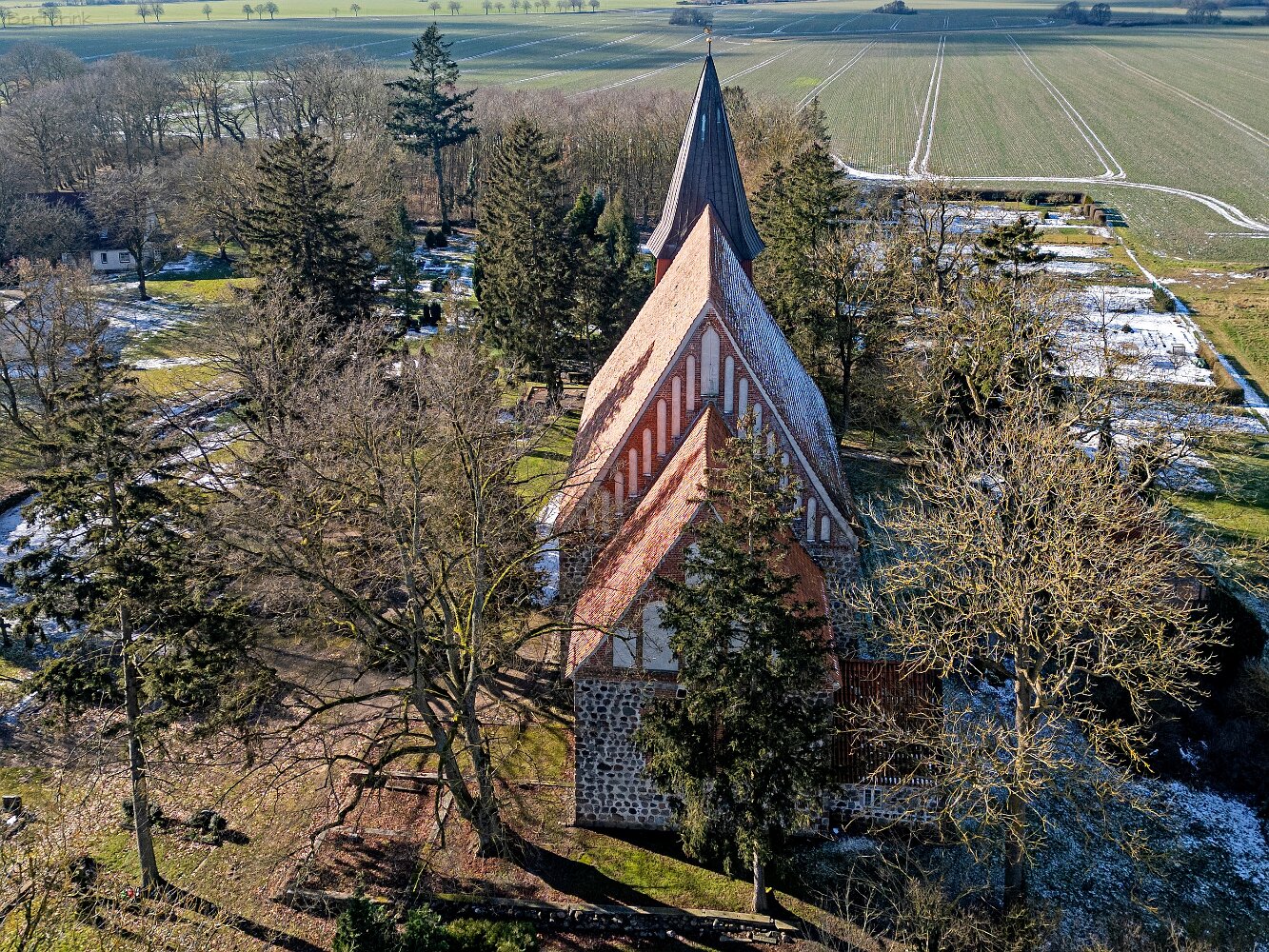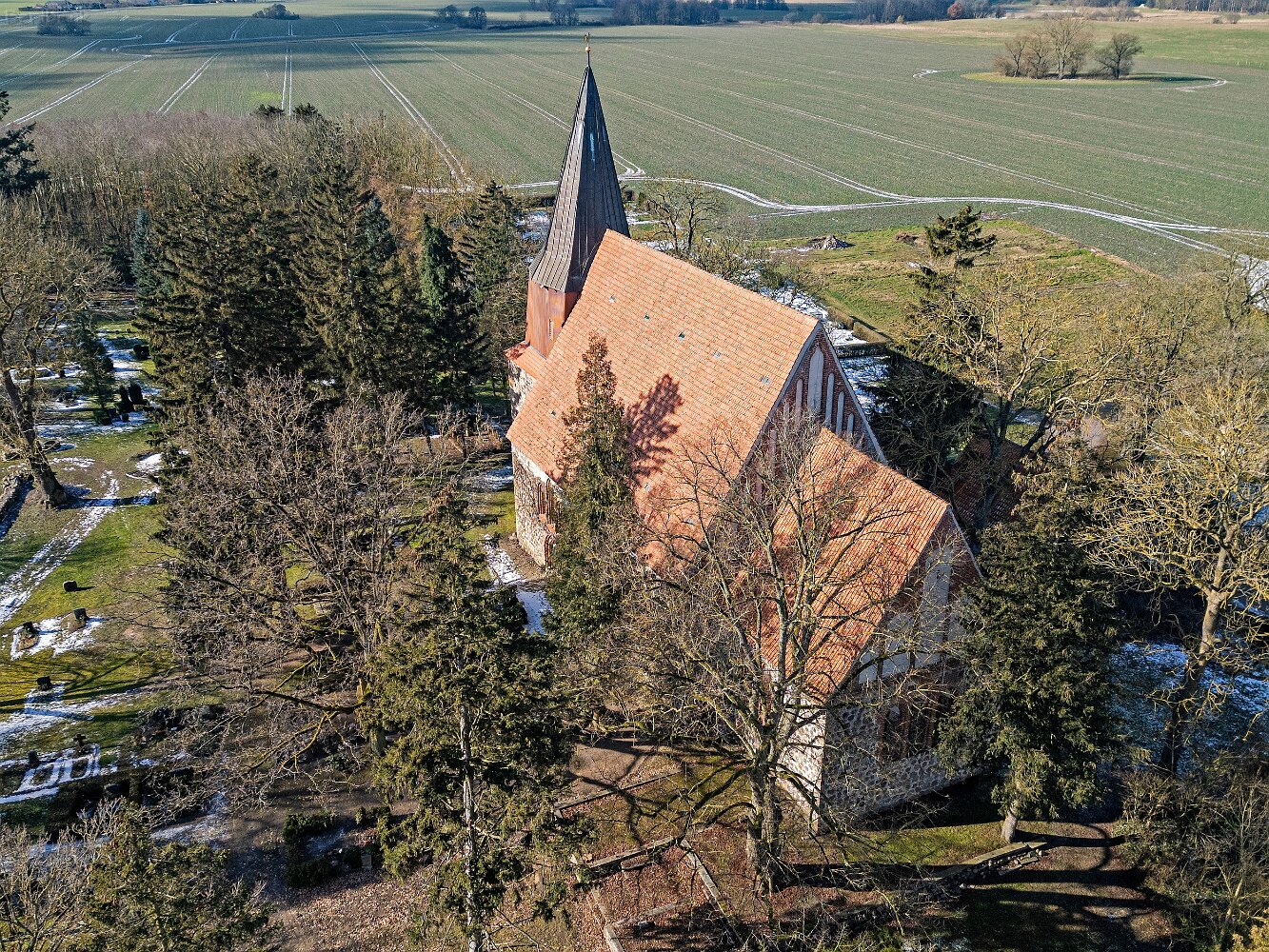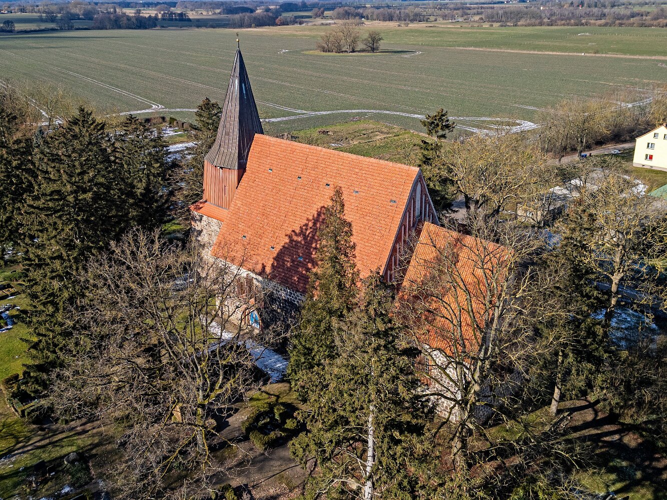 Drohnenaufnahmen der Feldsteinkirche in Kirch-Baggendorf