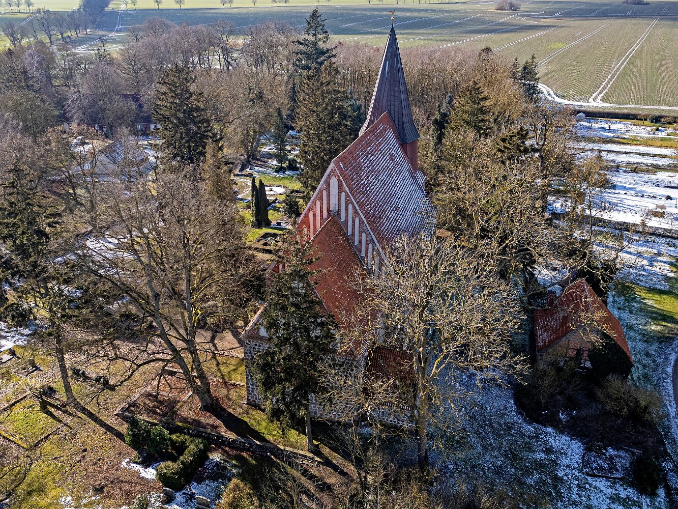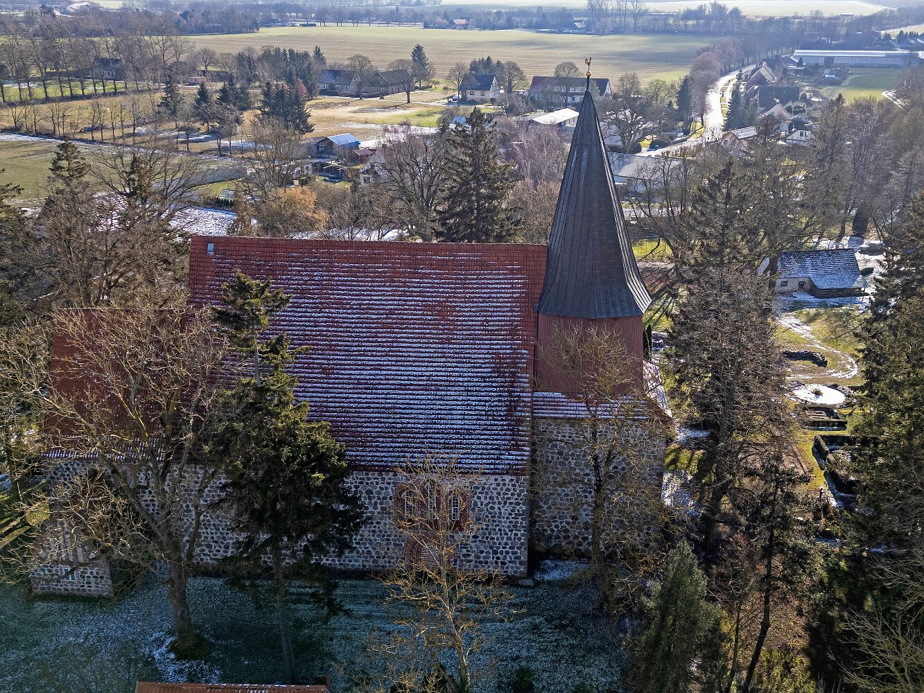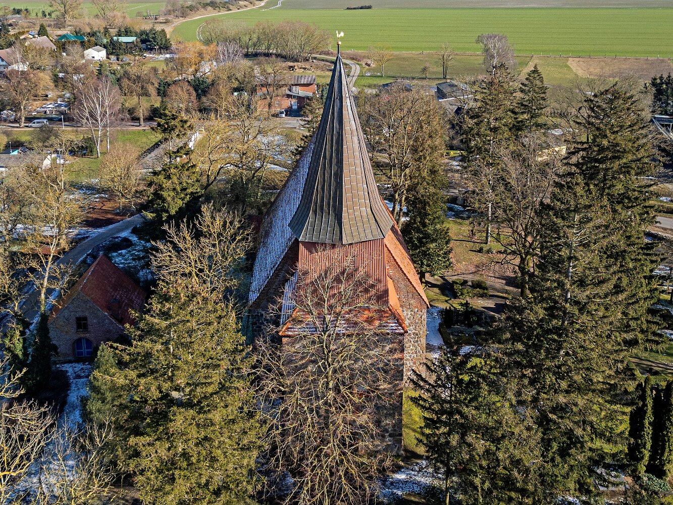 Drohnenaufnahmen der Feldsteinkirche in Kirch-Baggendorf