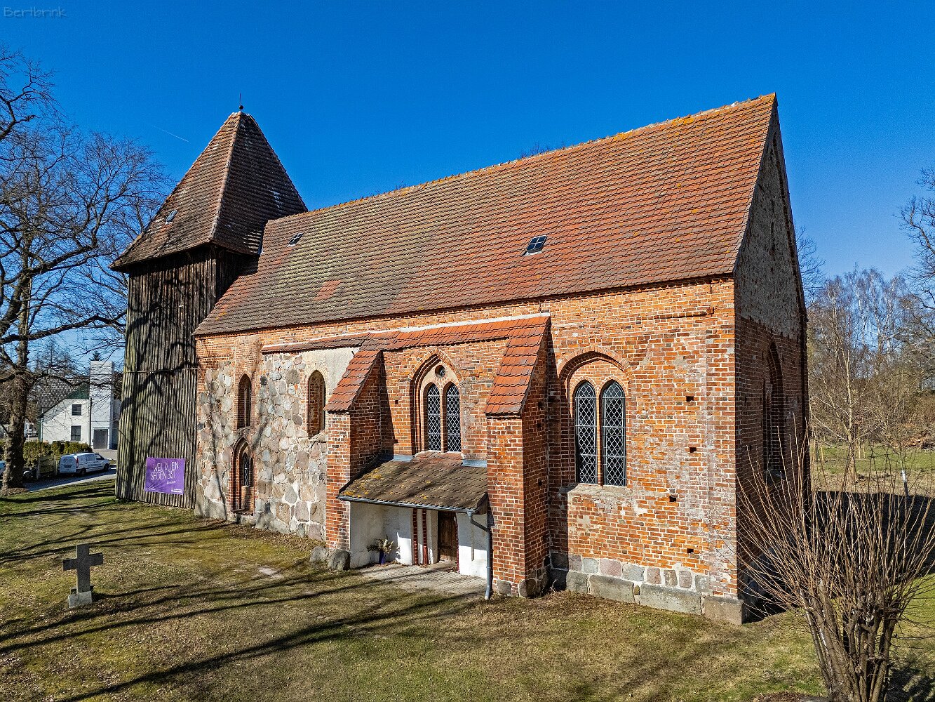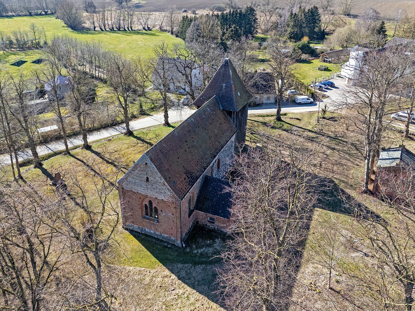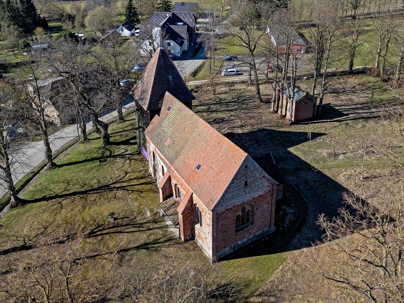 Drohnenaufnahmen der Feldsteinkirche in Kirch Mulsow