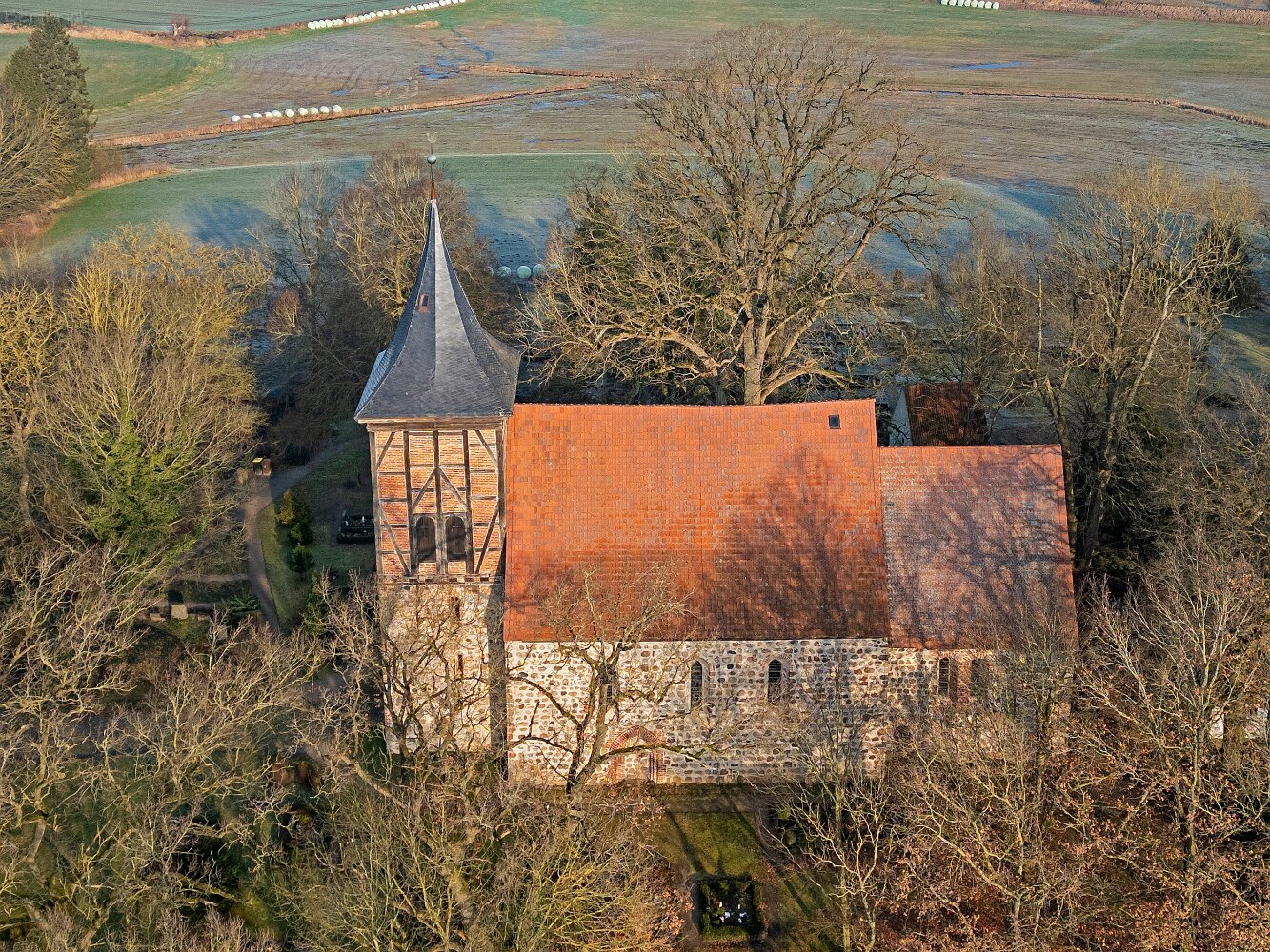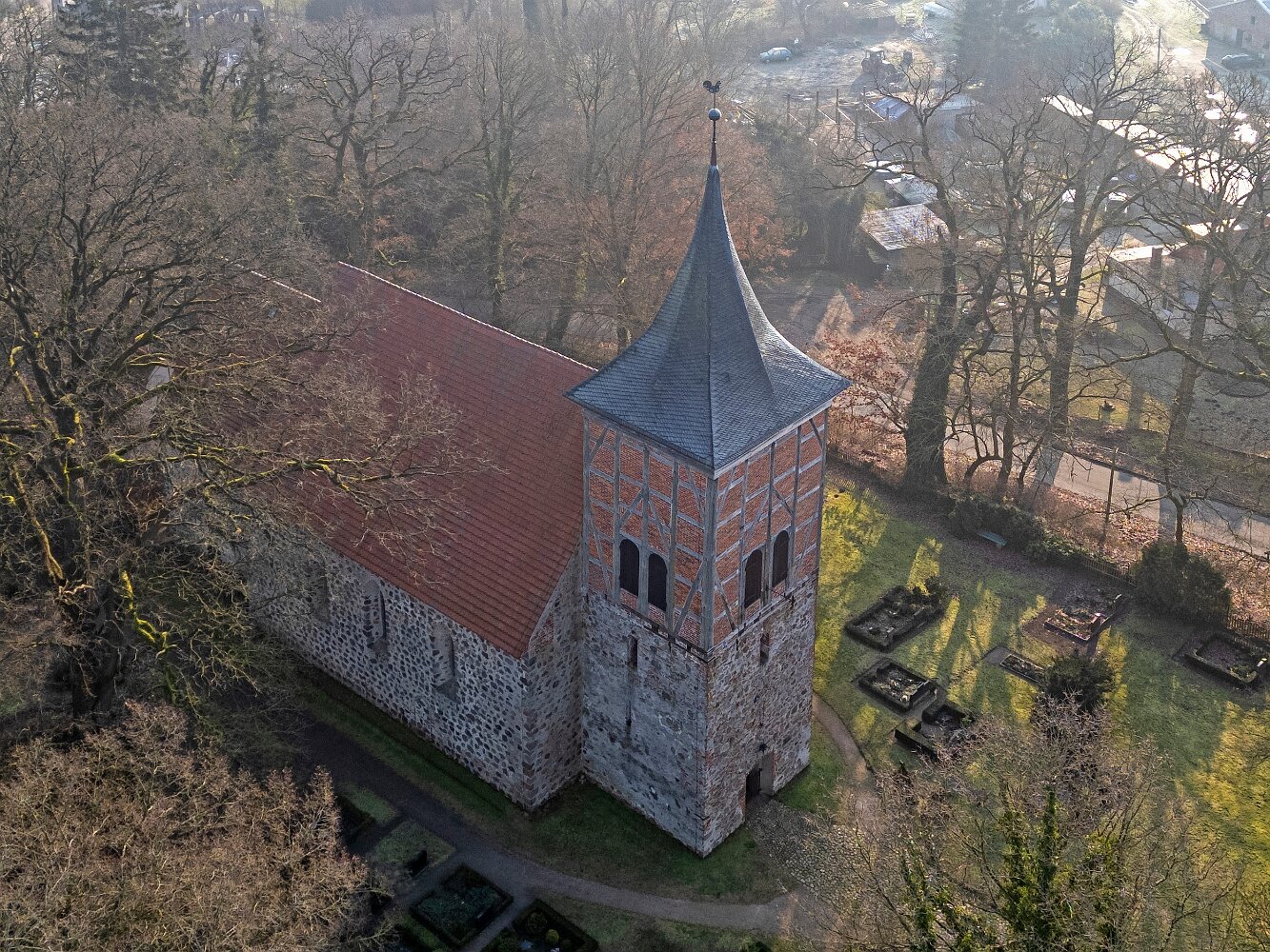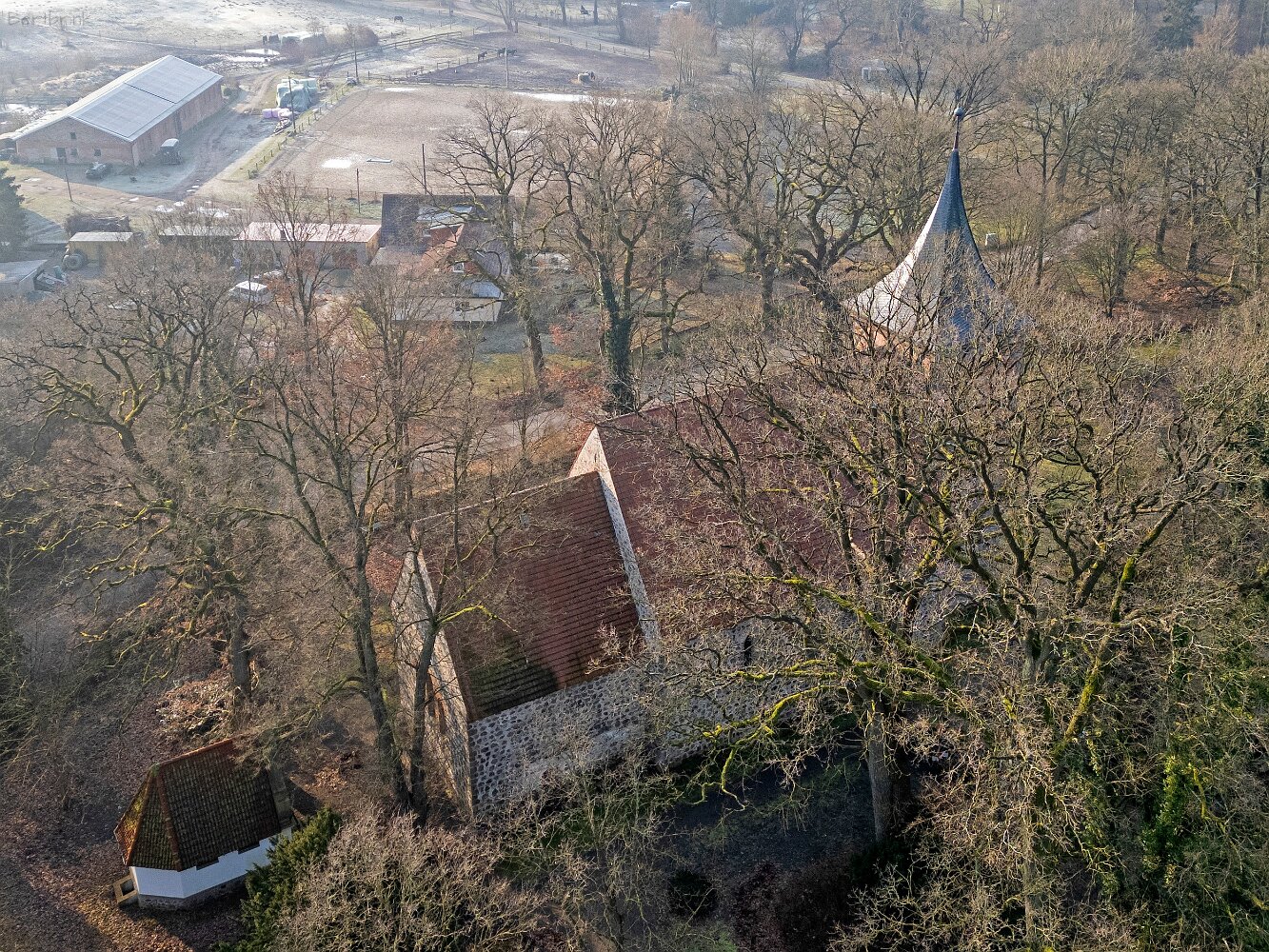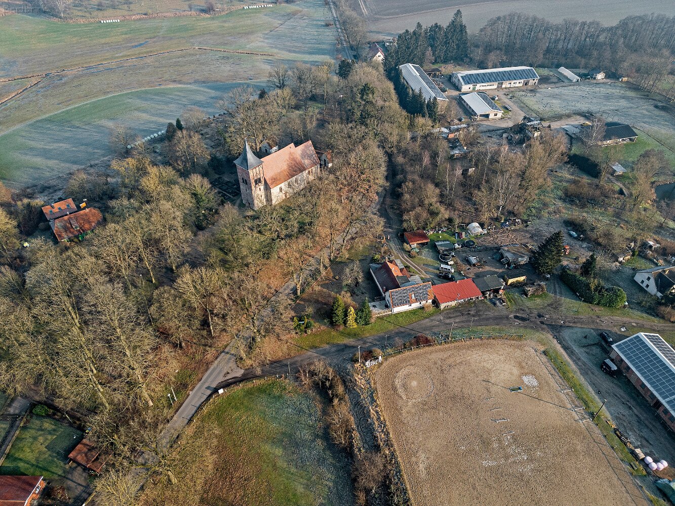 Drohnenaufnahmen der Feldsteinkirche in Kölzow.