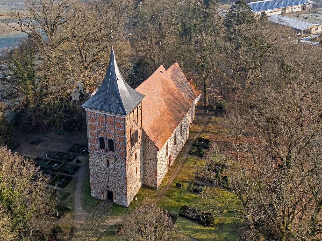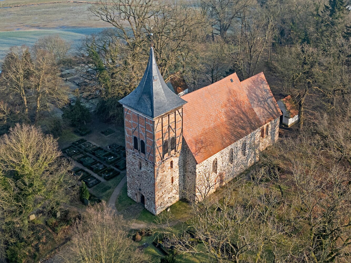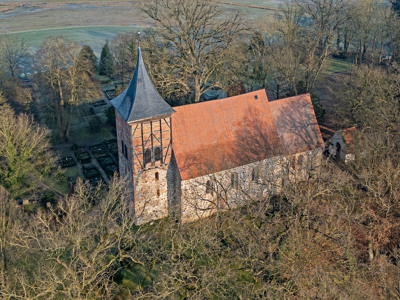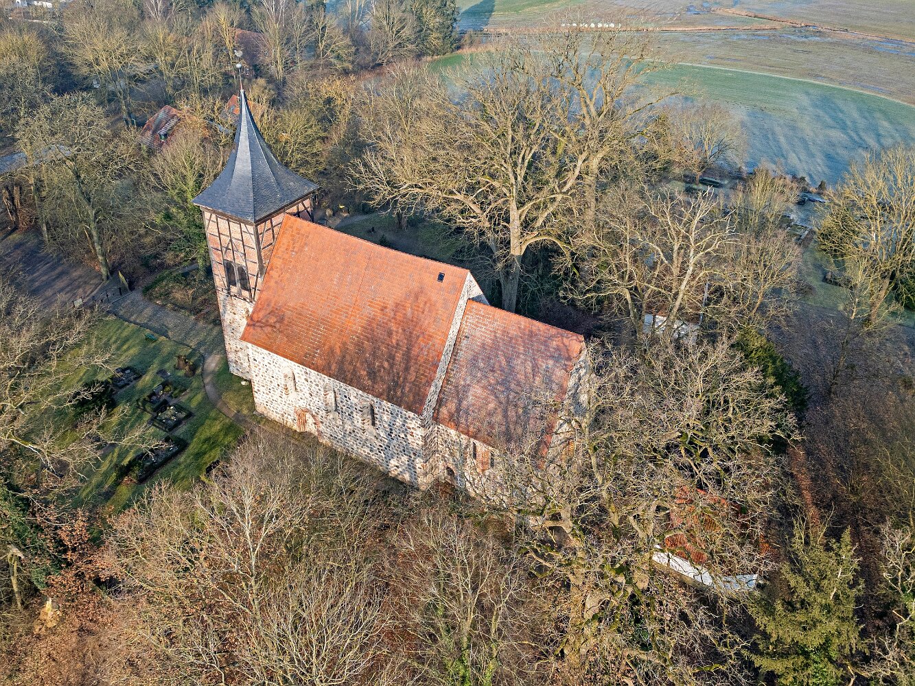 Drohnenaufnahmen der Feldsteinkirche in Kölzow.